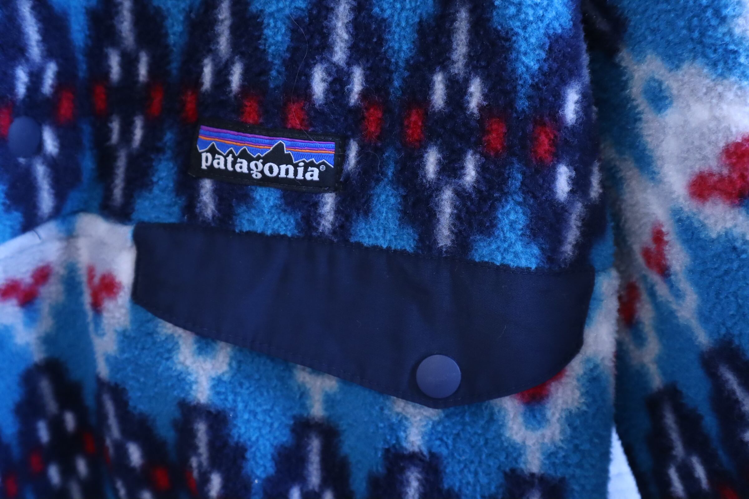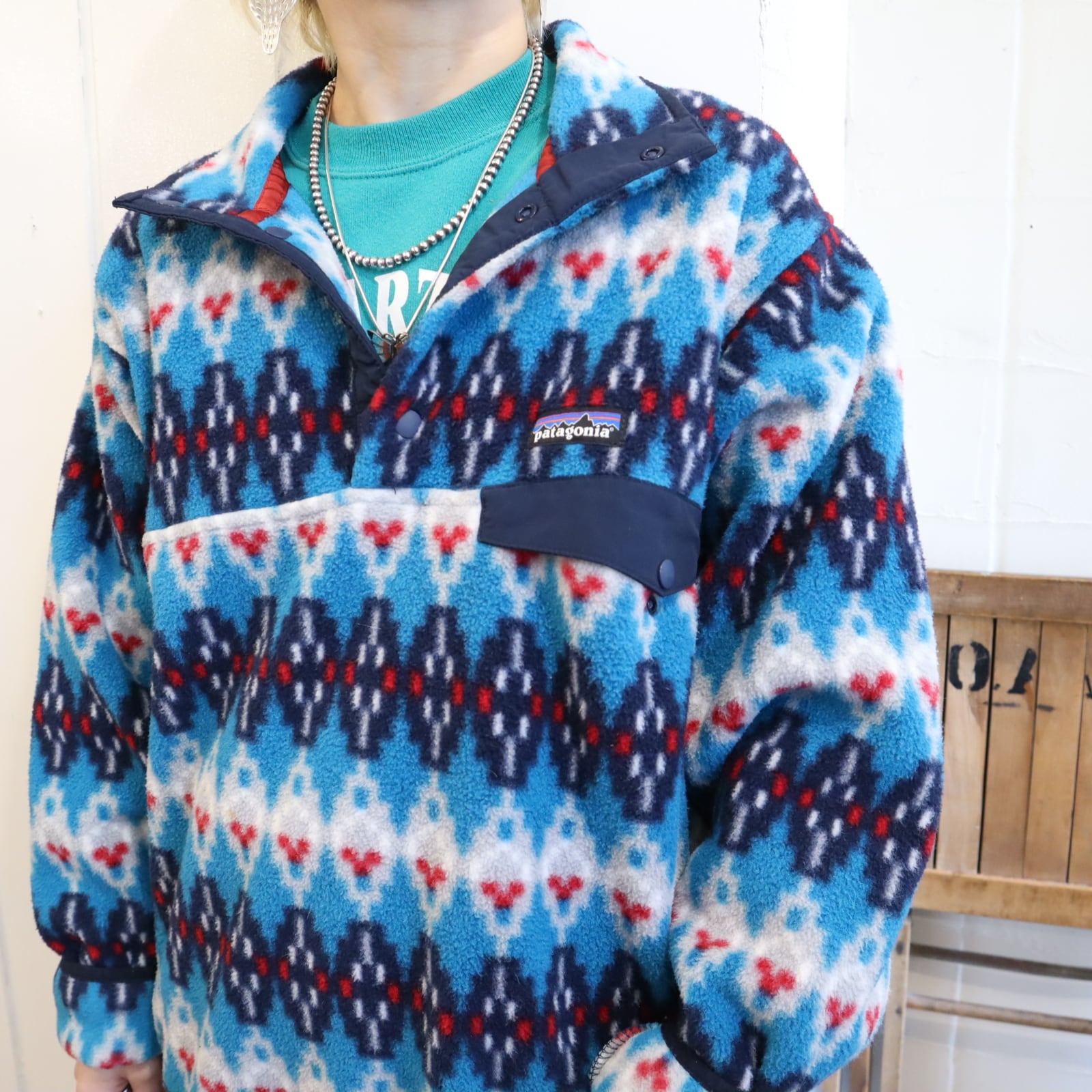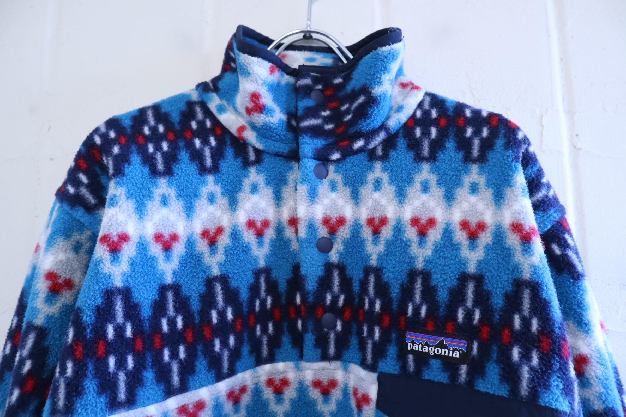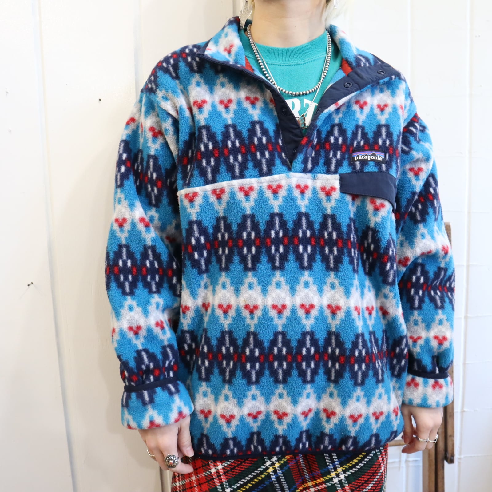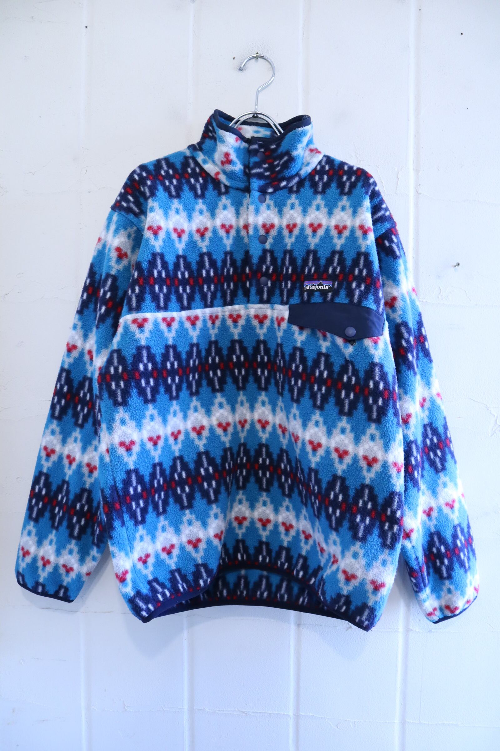 Patagonia blue×navy geometric pullover snap-t fleece [l-4874]