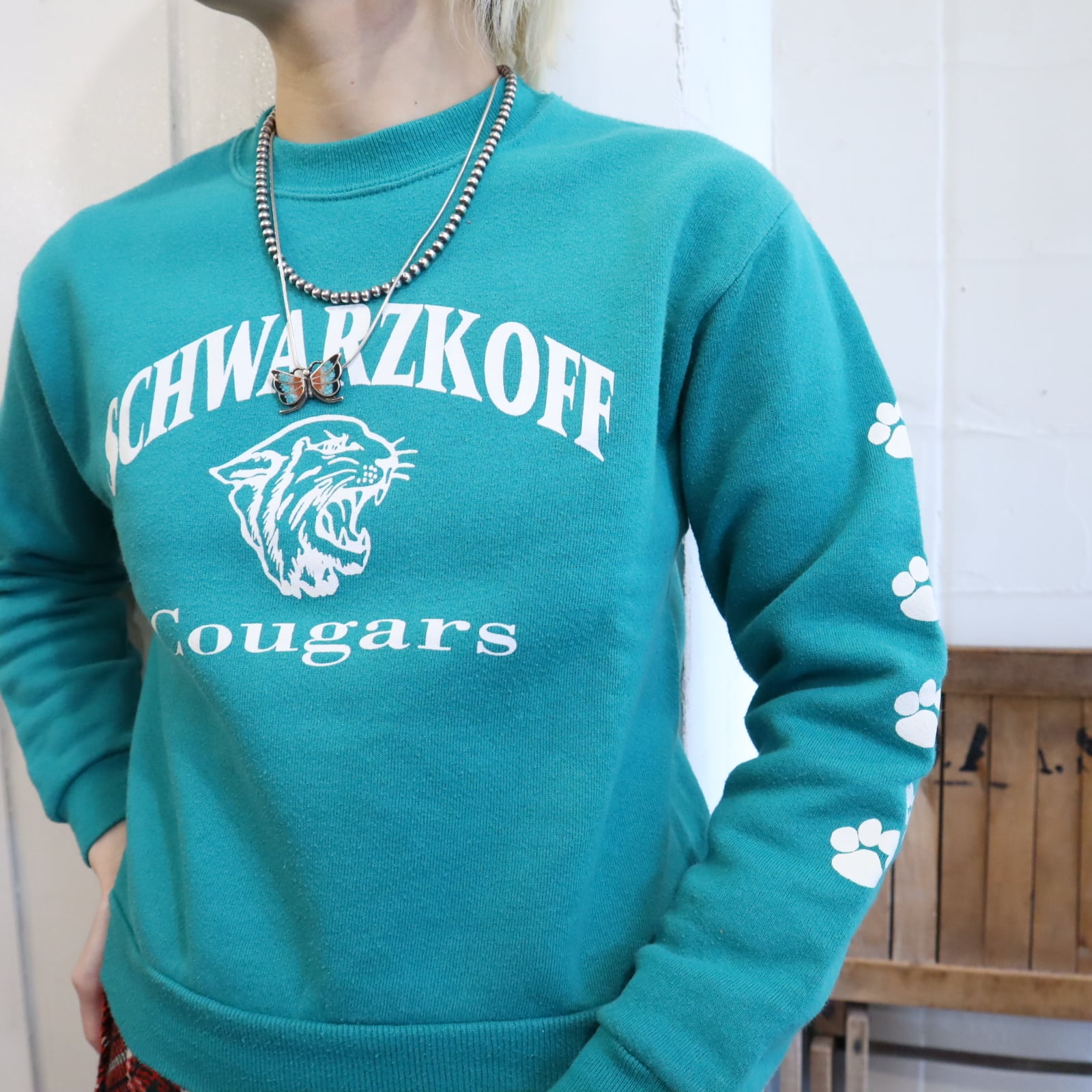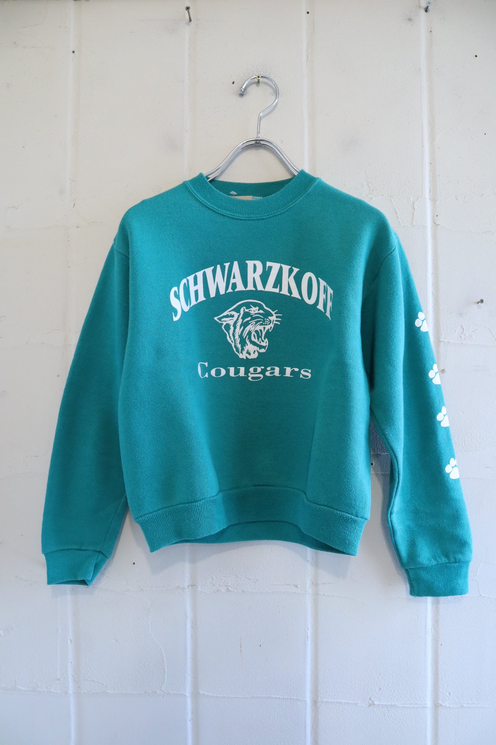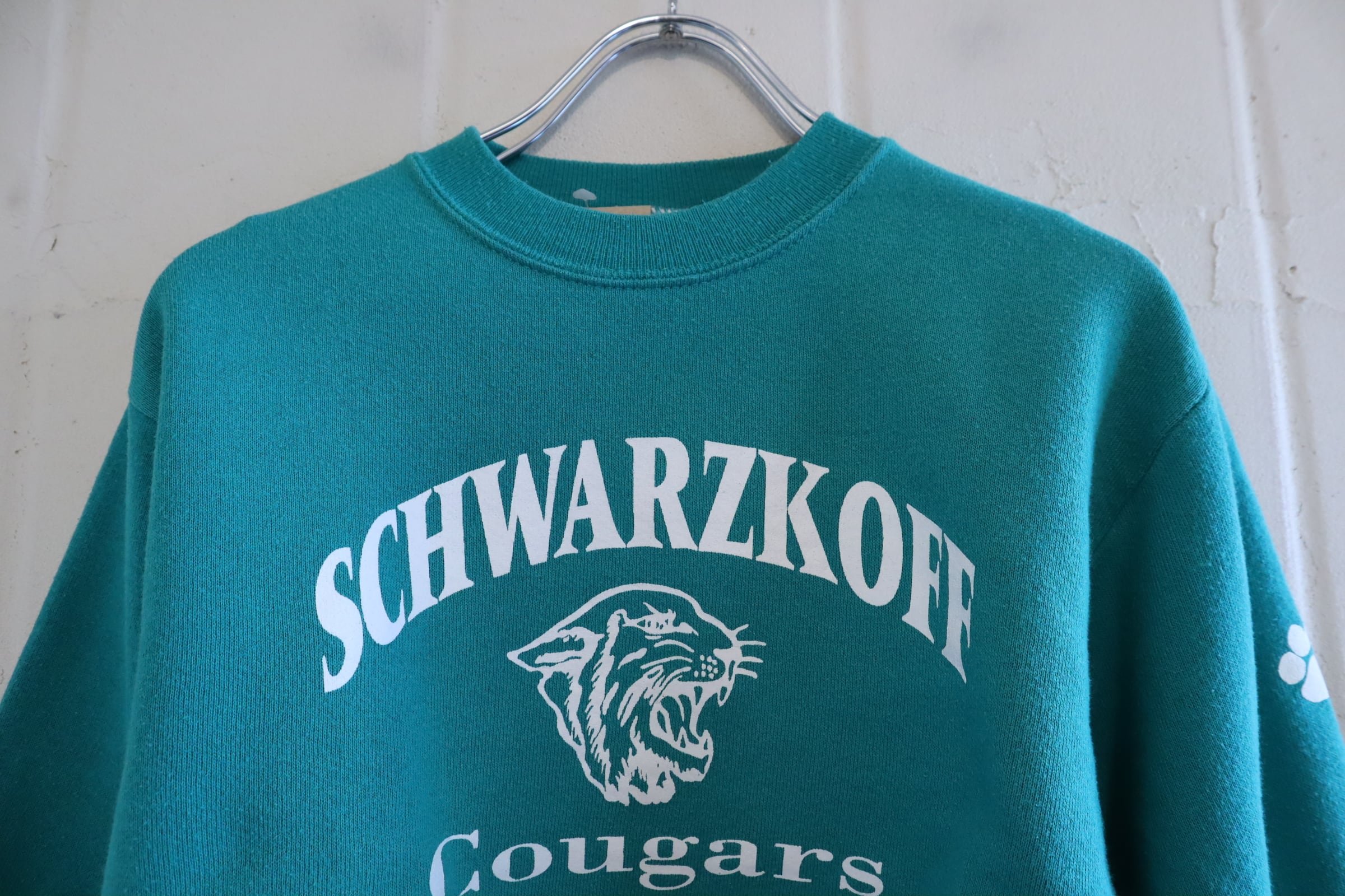 80-90s bluegreen×white puma print sweat [l-4875]