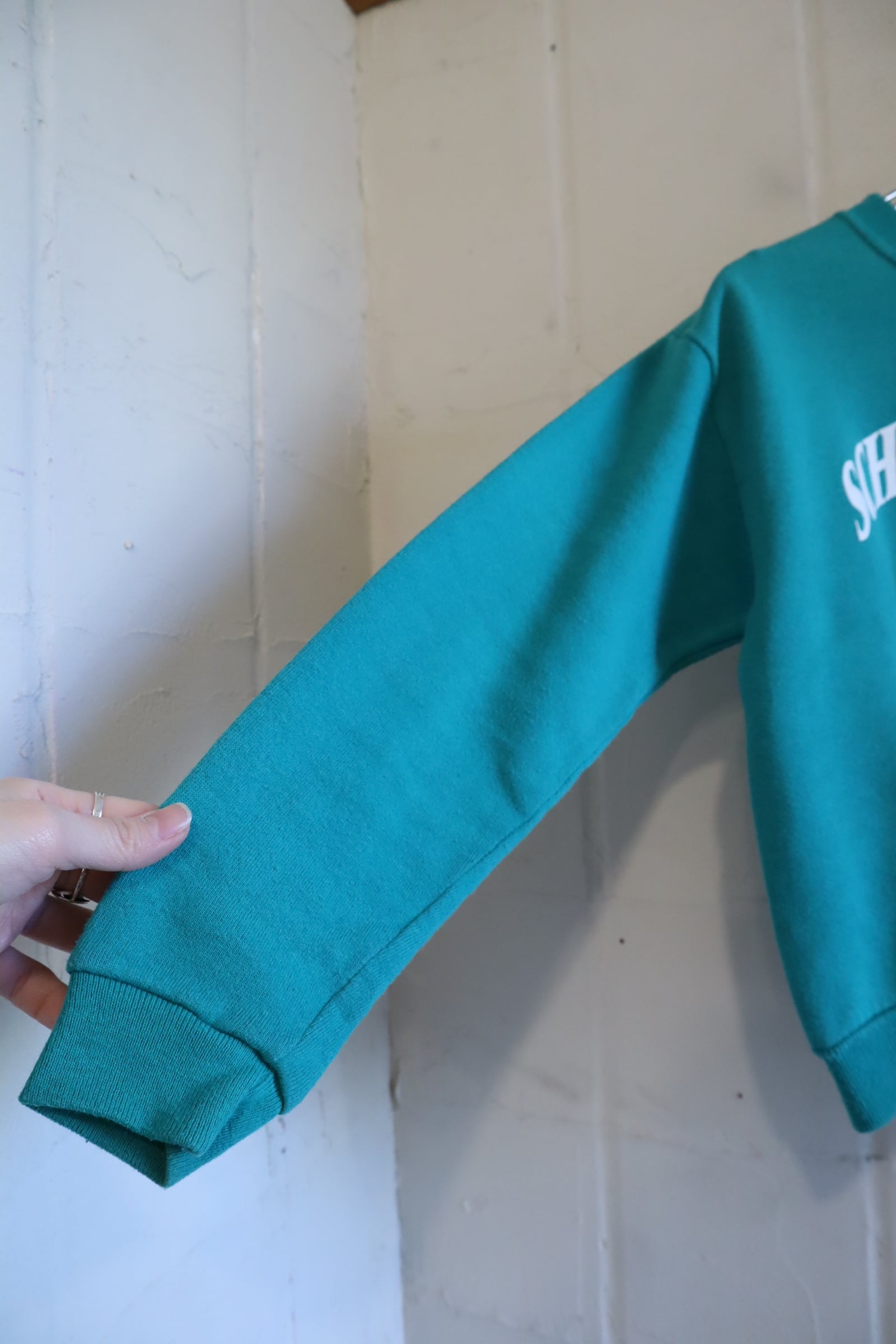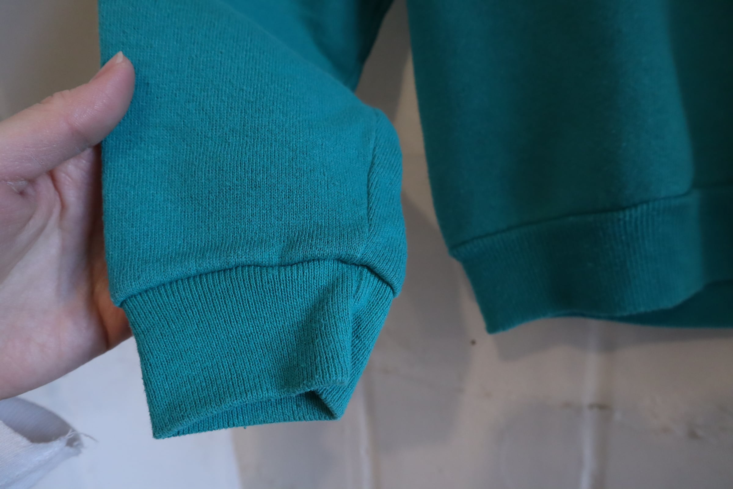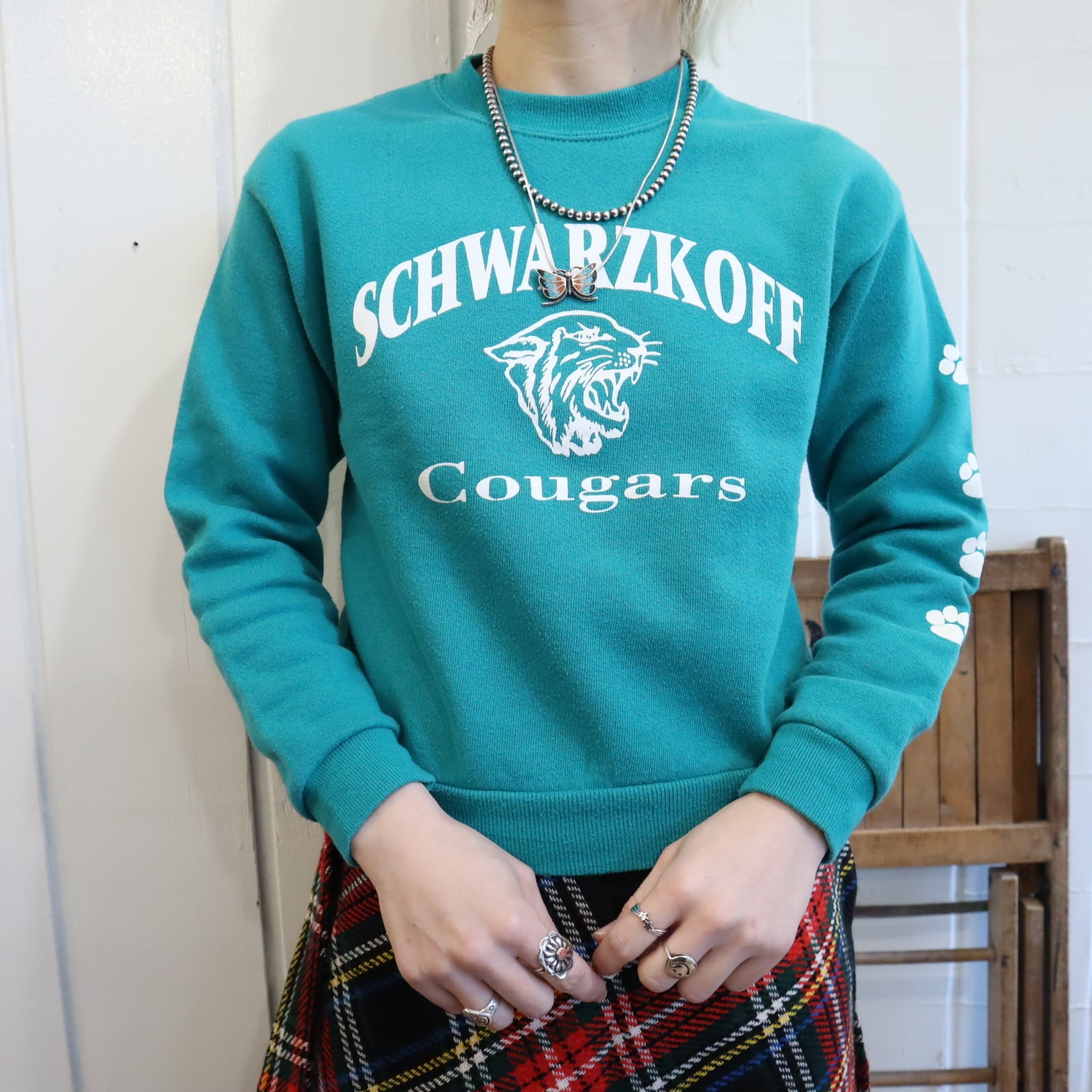 80-90s bluegreen×white puma print sweat [l-4875]