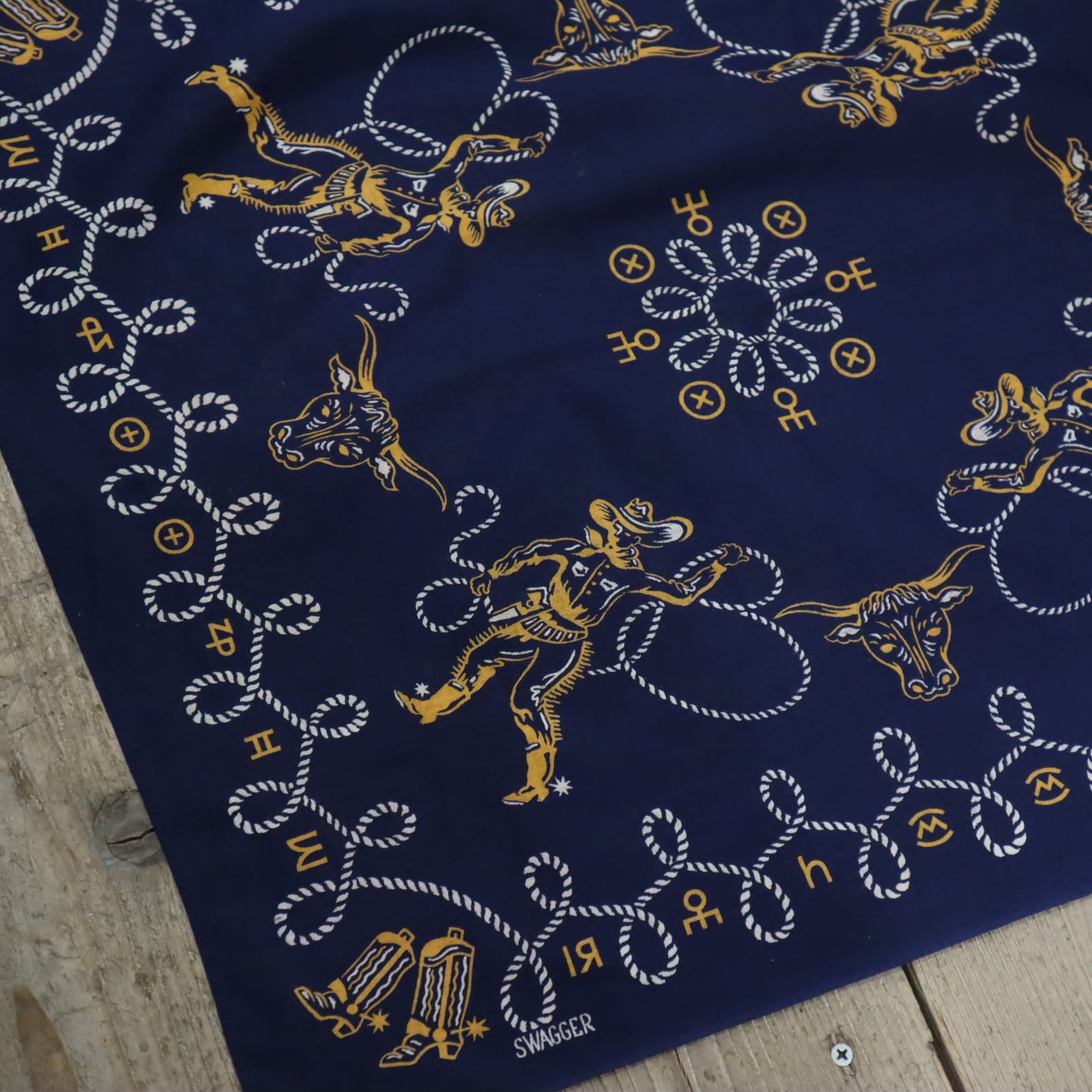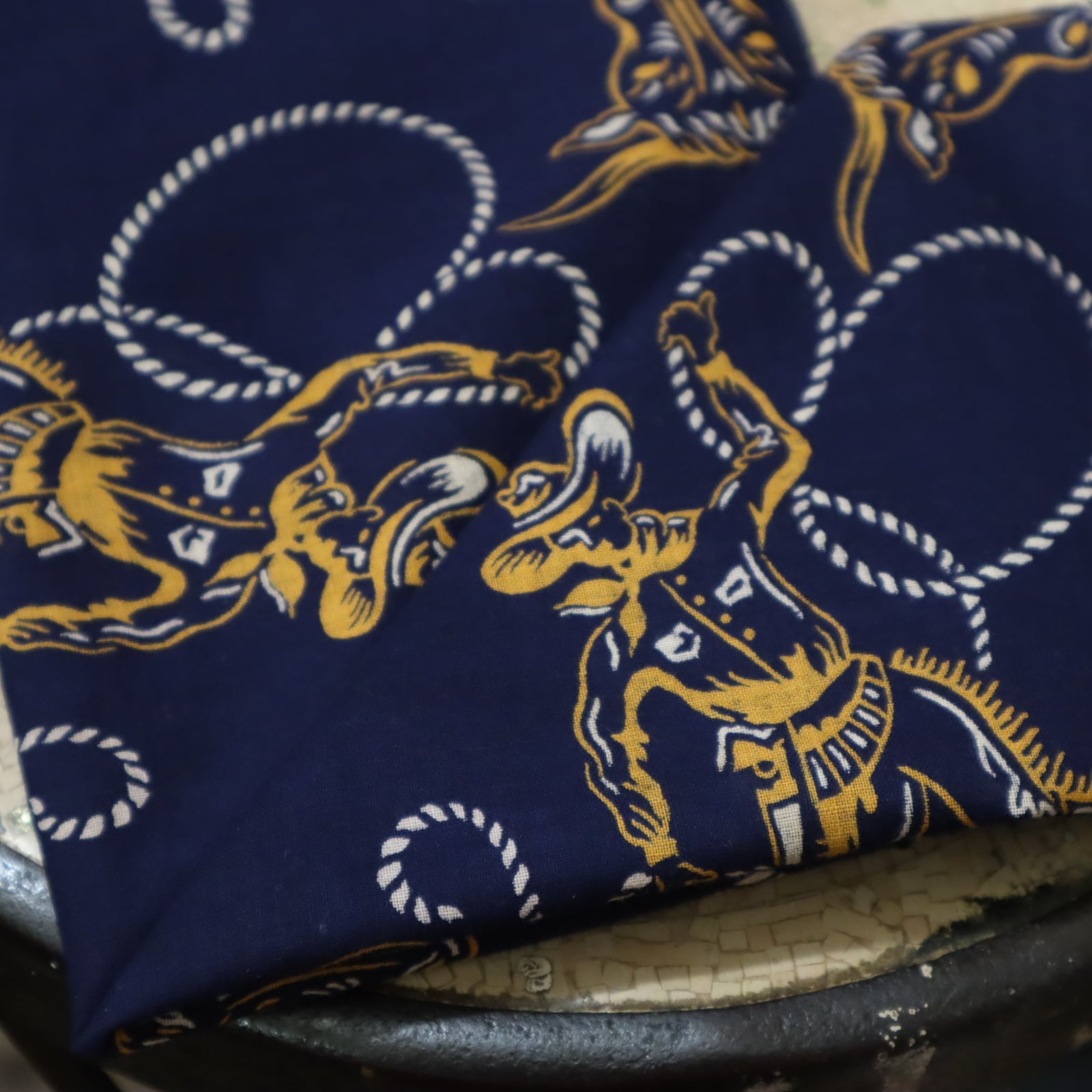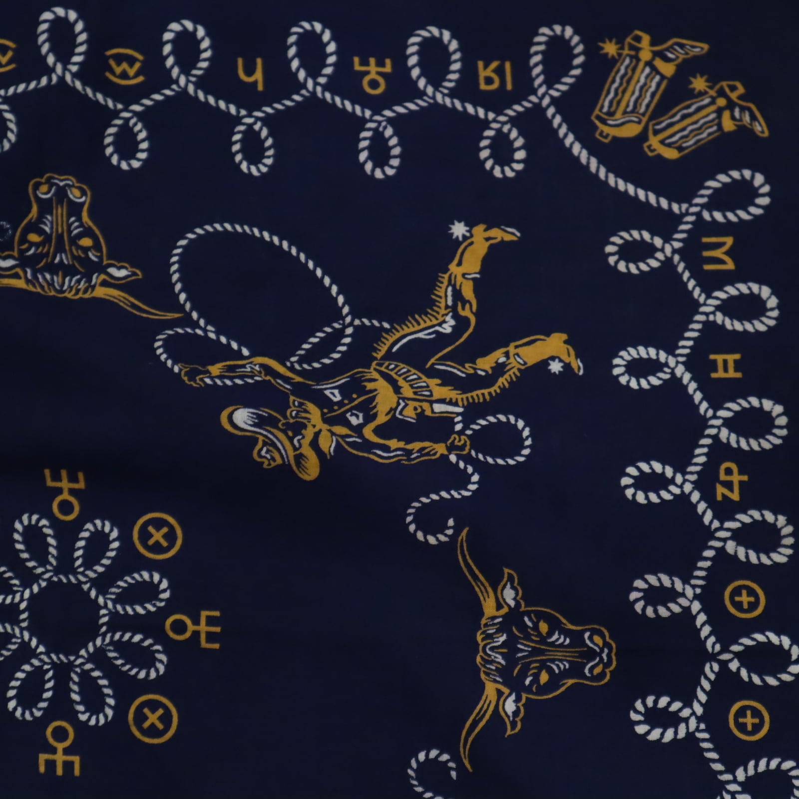 50s navy×white×mustard western pattern bandana [k-4877]