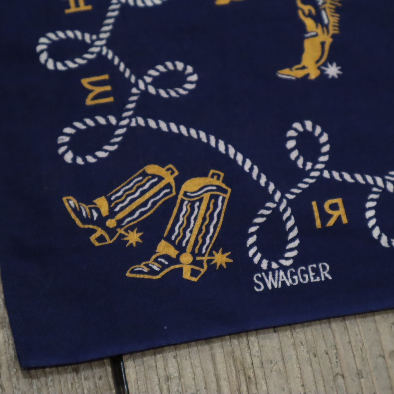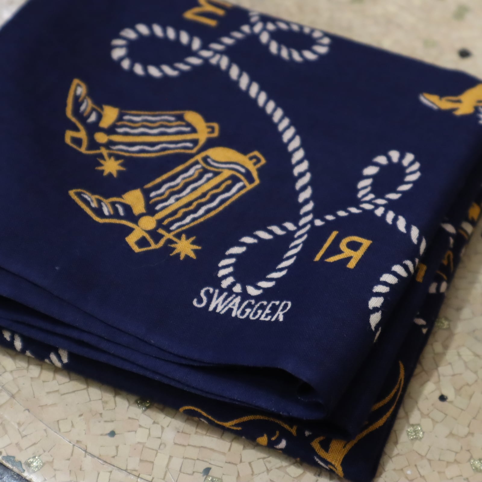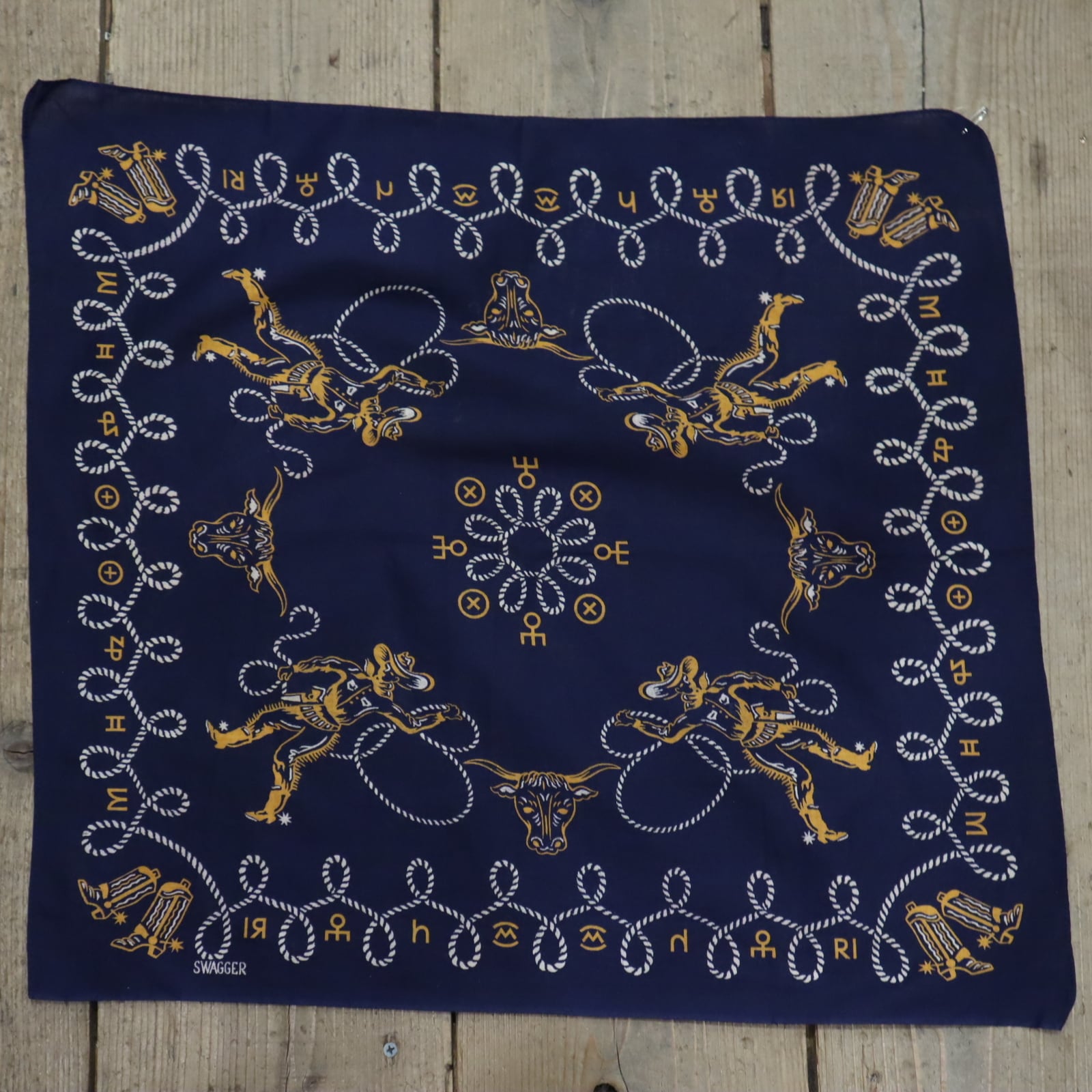 50s navy×white×mustard western pattern bandana [k-4877]