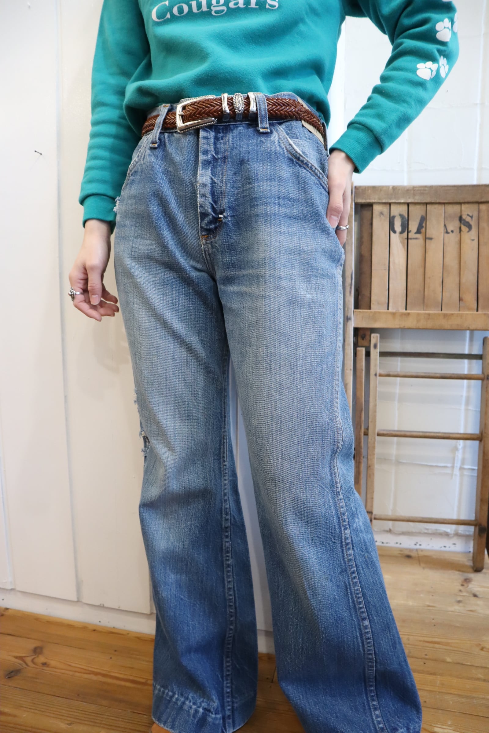 古着デニム特有のボロ感と色落ち具合が最高なデニムパンツ。