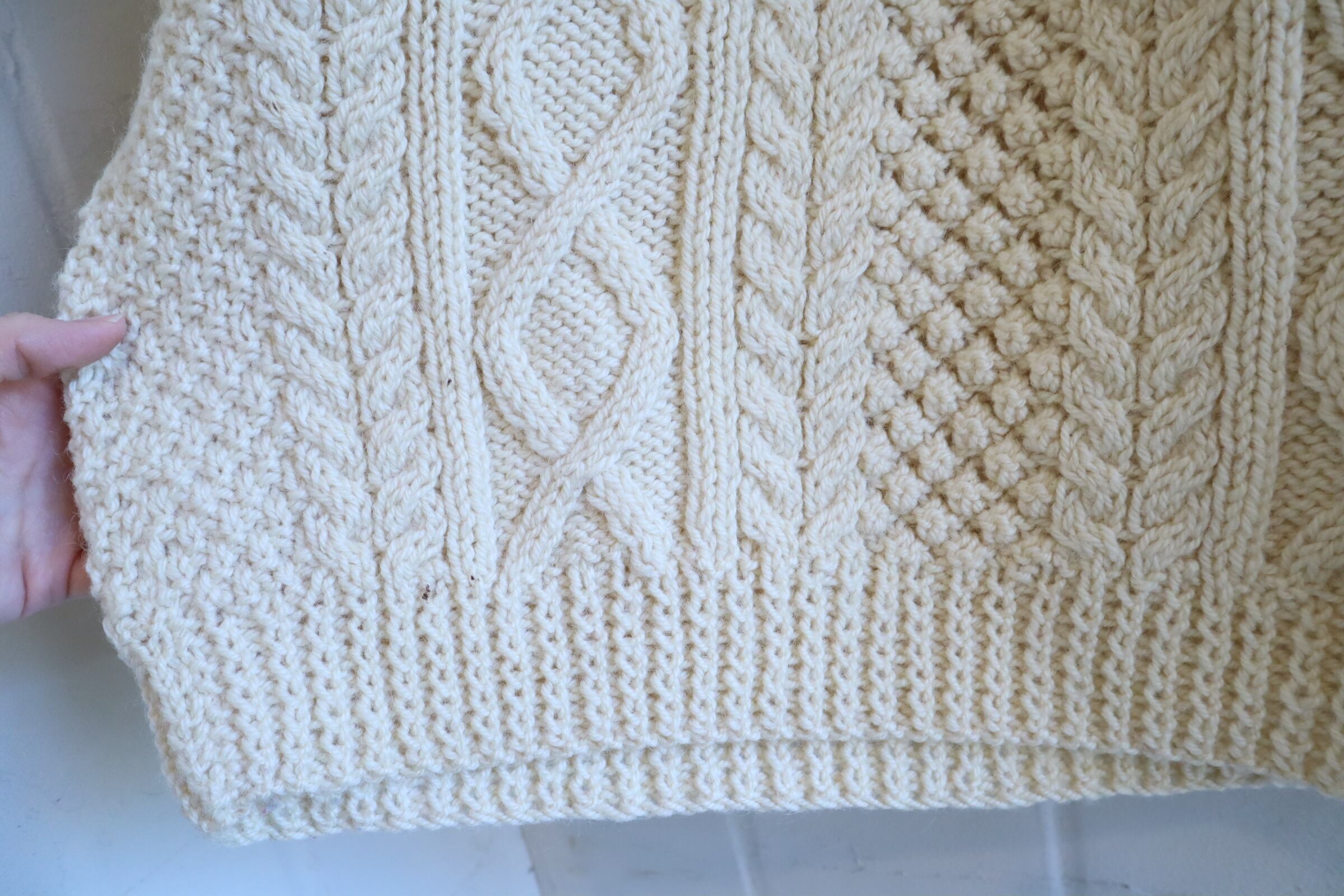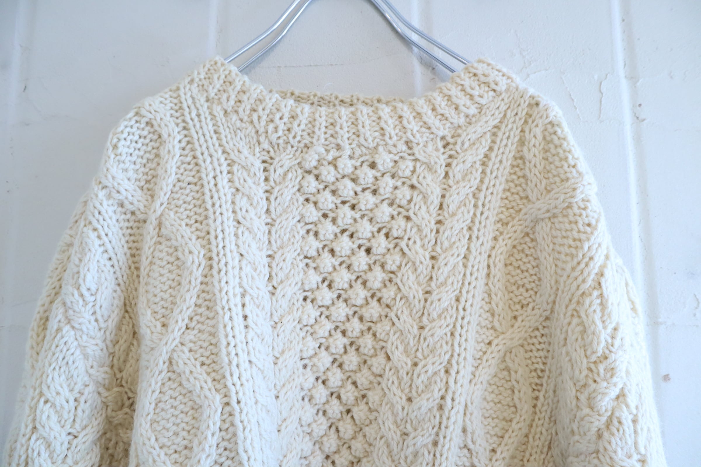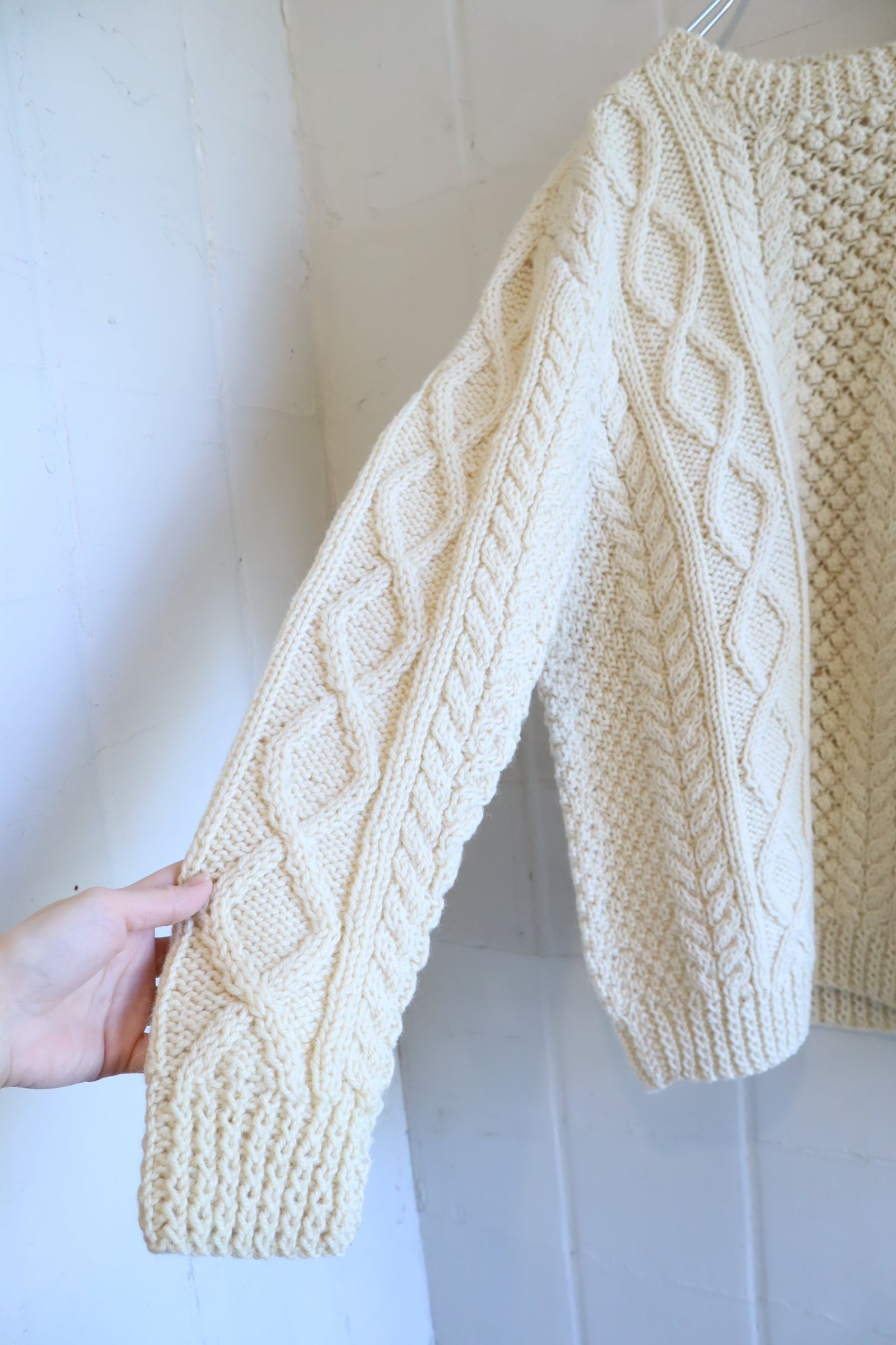ivory fisherman knit pullover [l-4887]