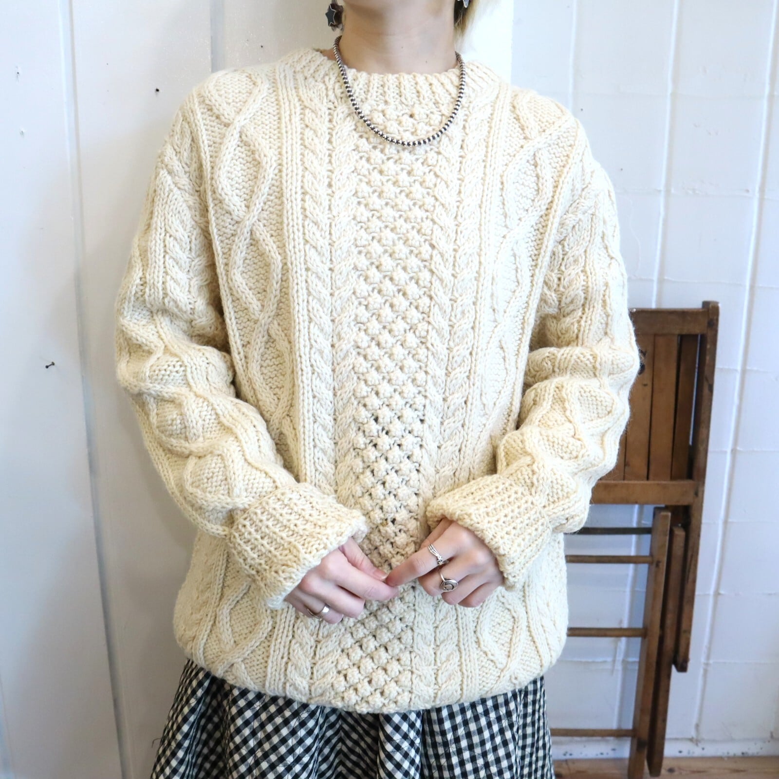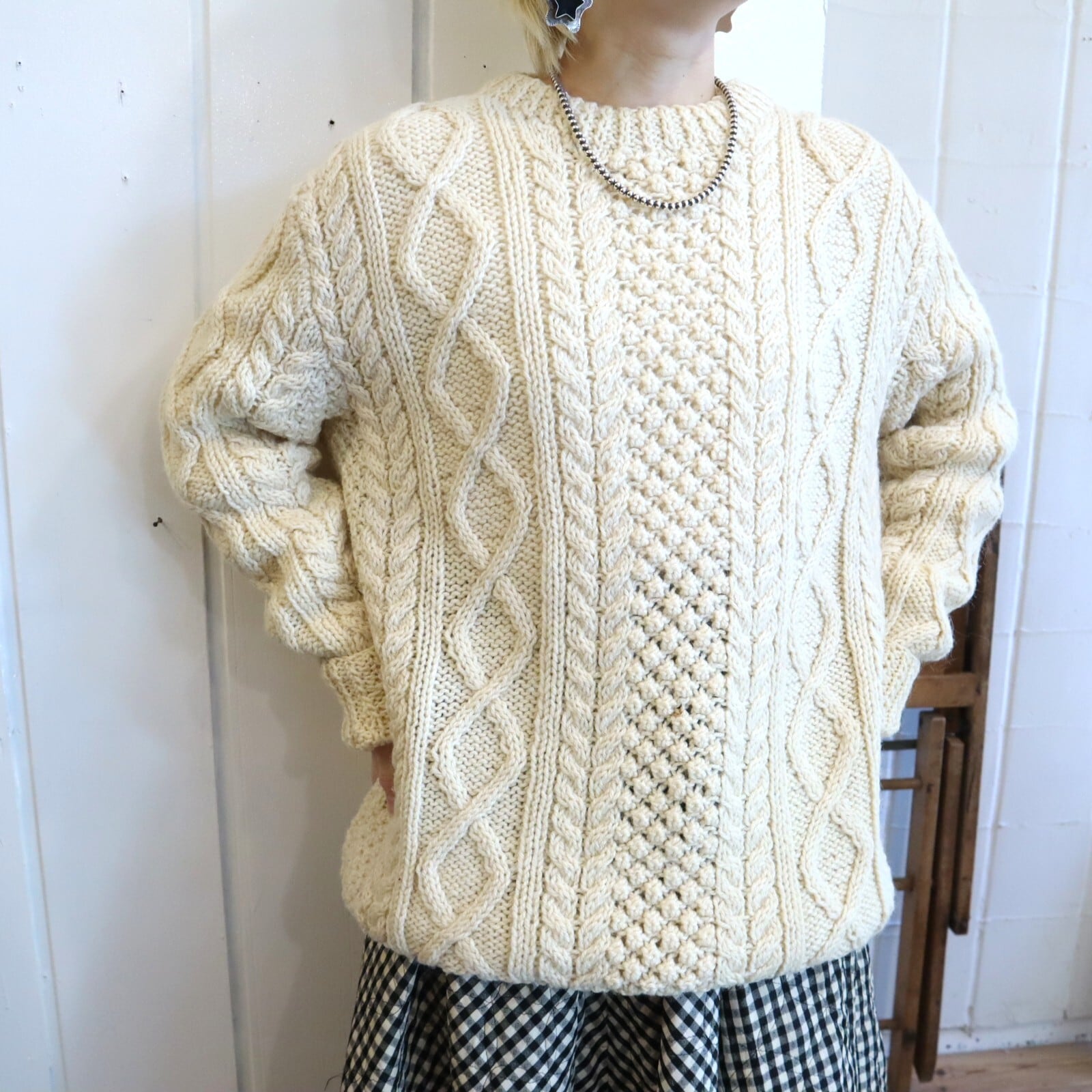 様々な編み柄が入っていてとても可愛いフィッシャーマンニットプルオーバー*