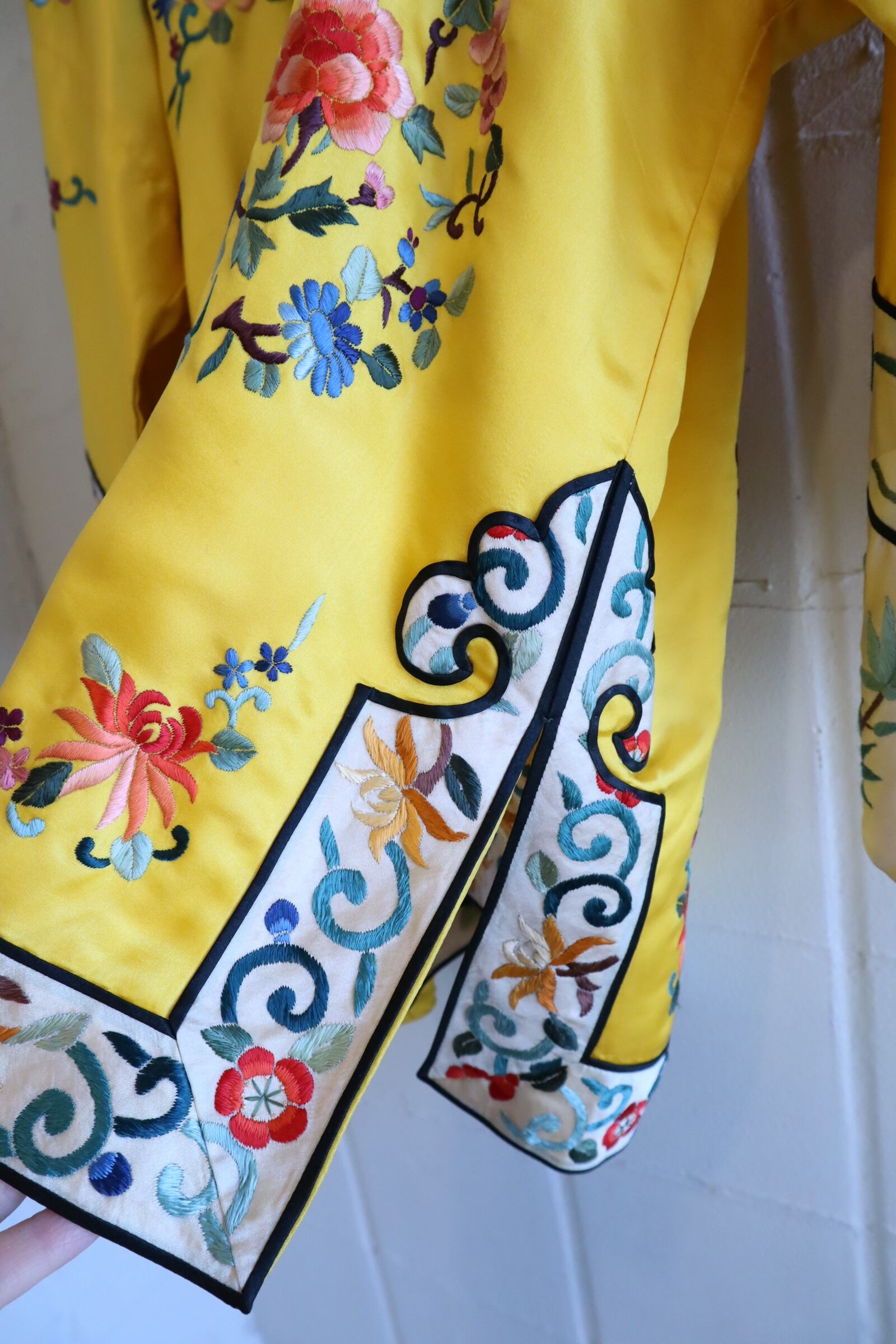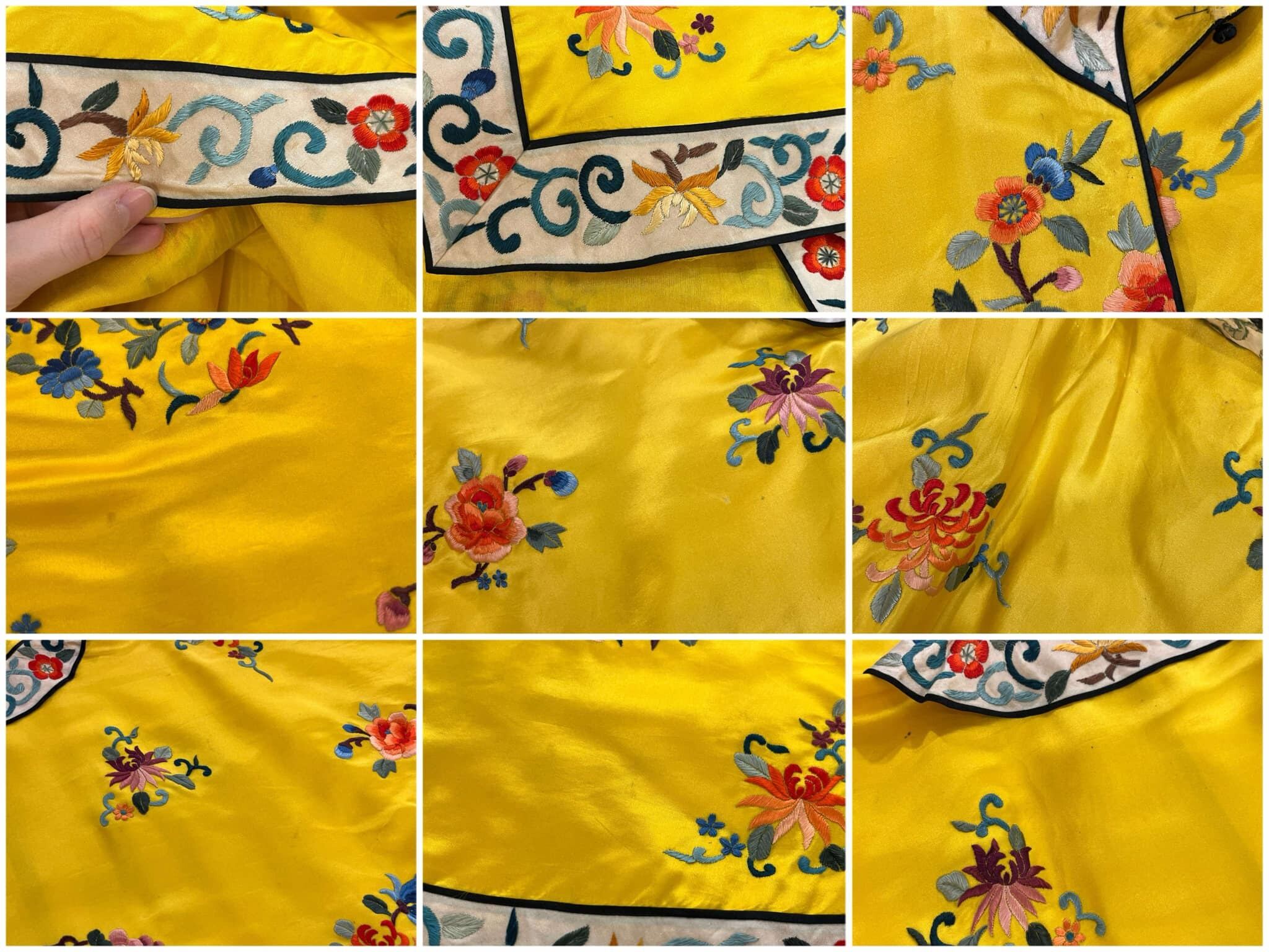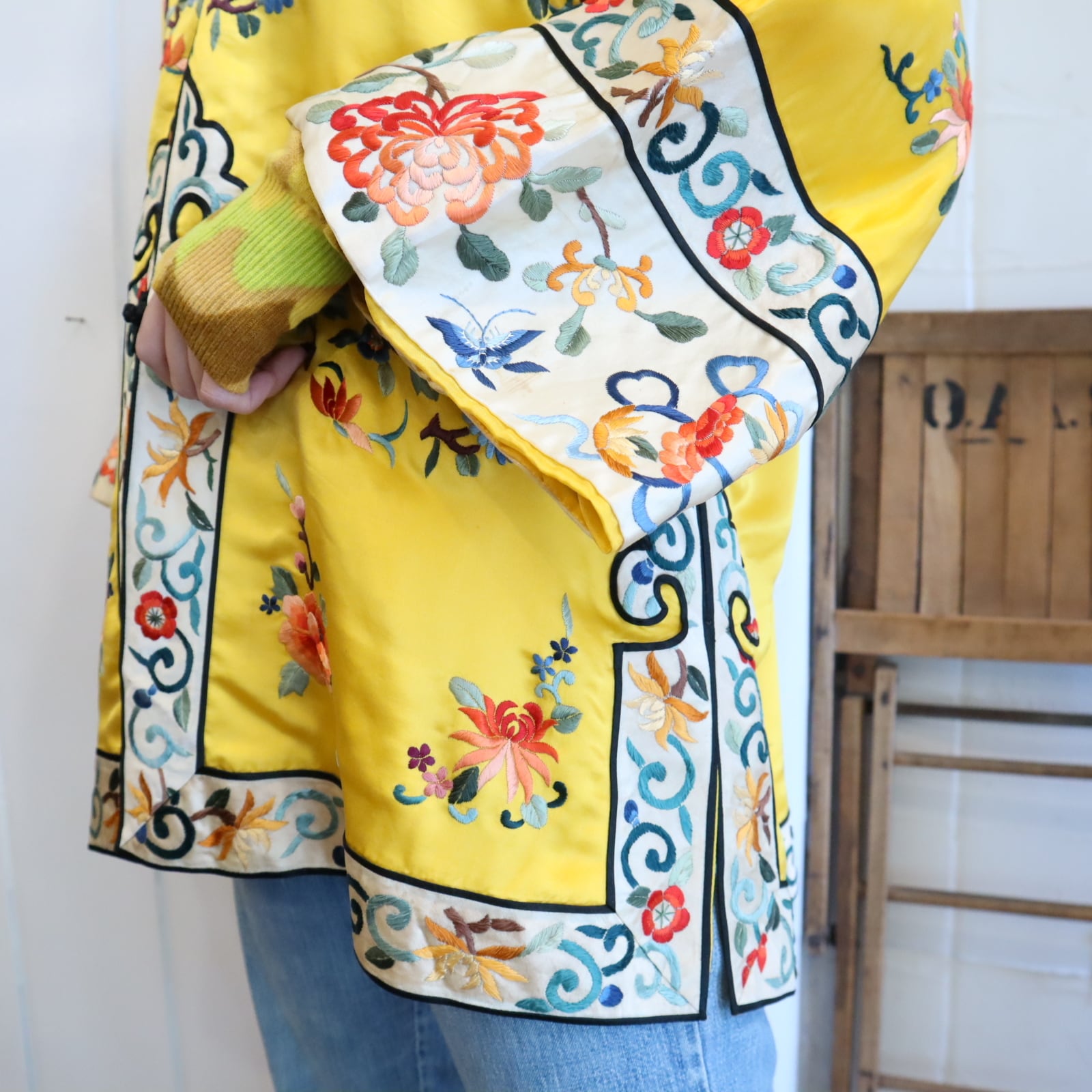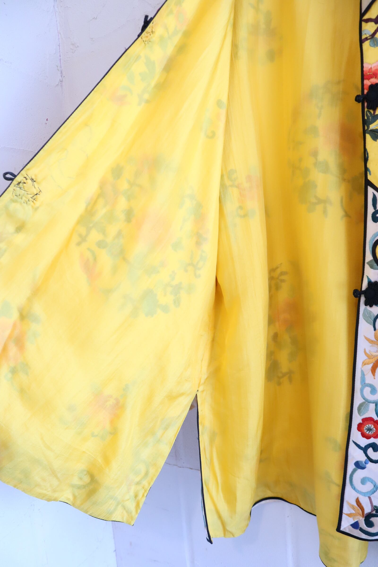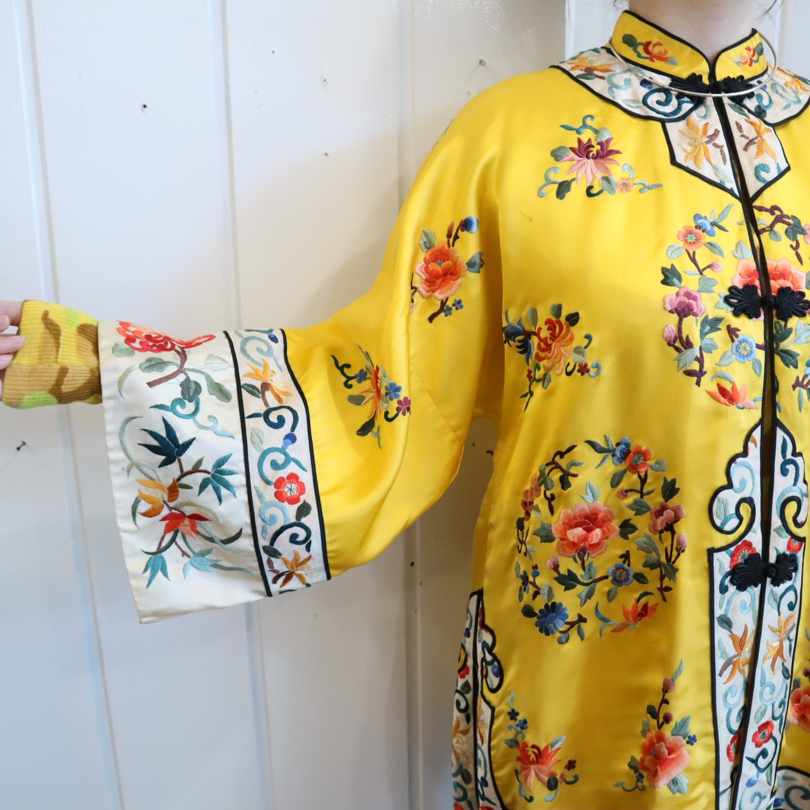 70s yellow×colorful embroidery China shirt jacket [l-4889]