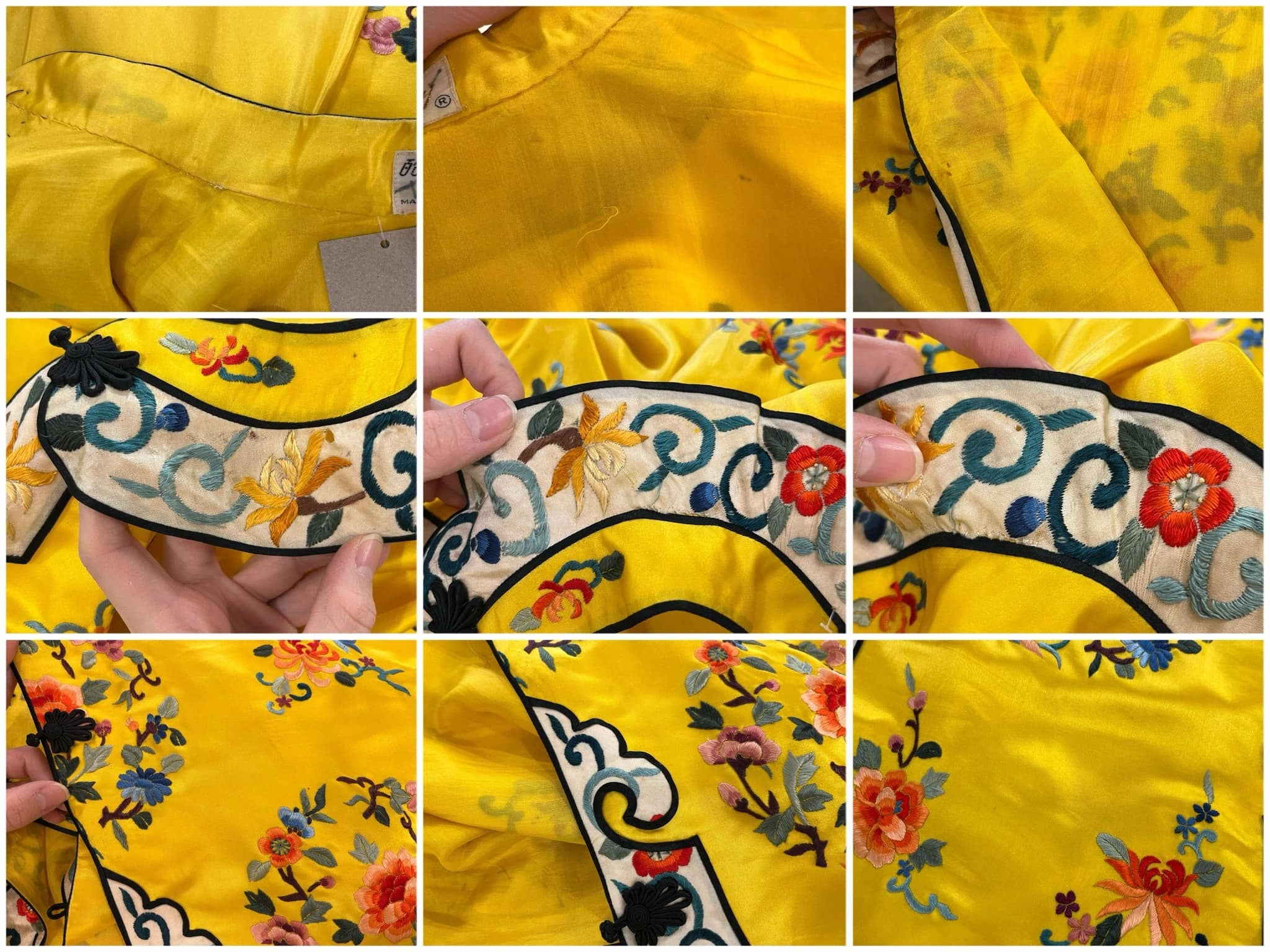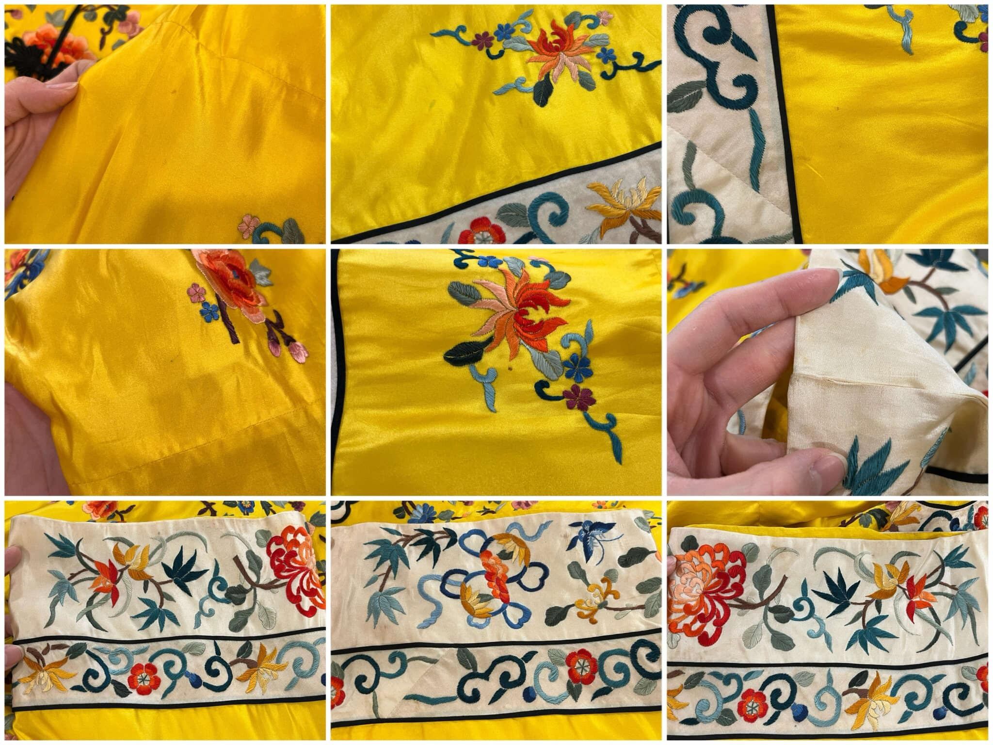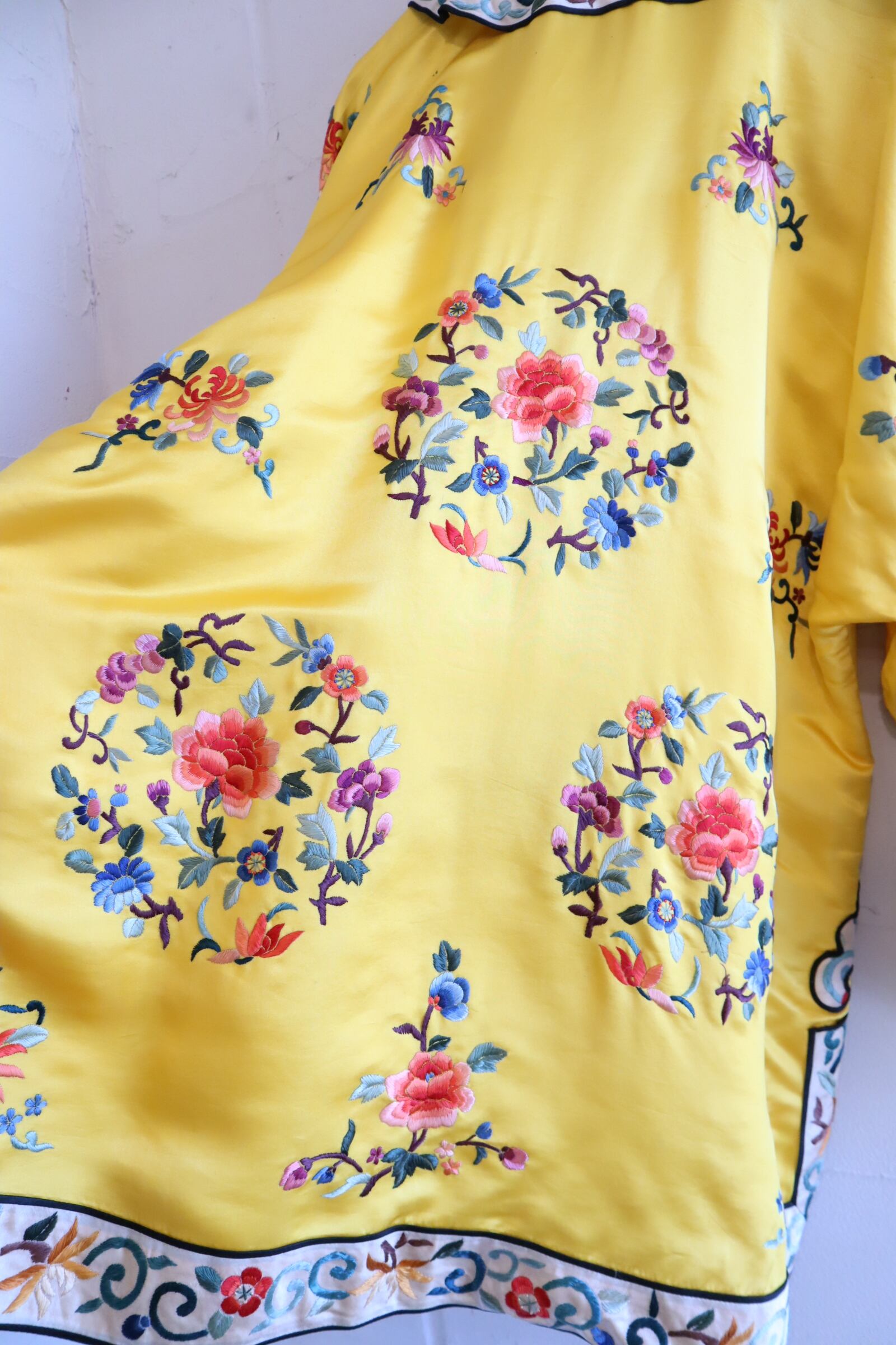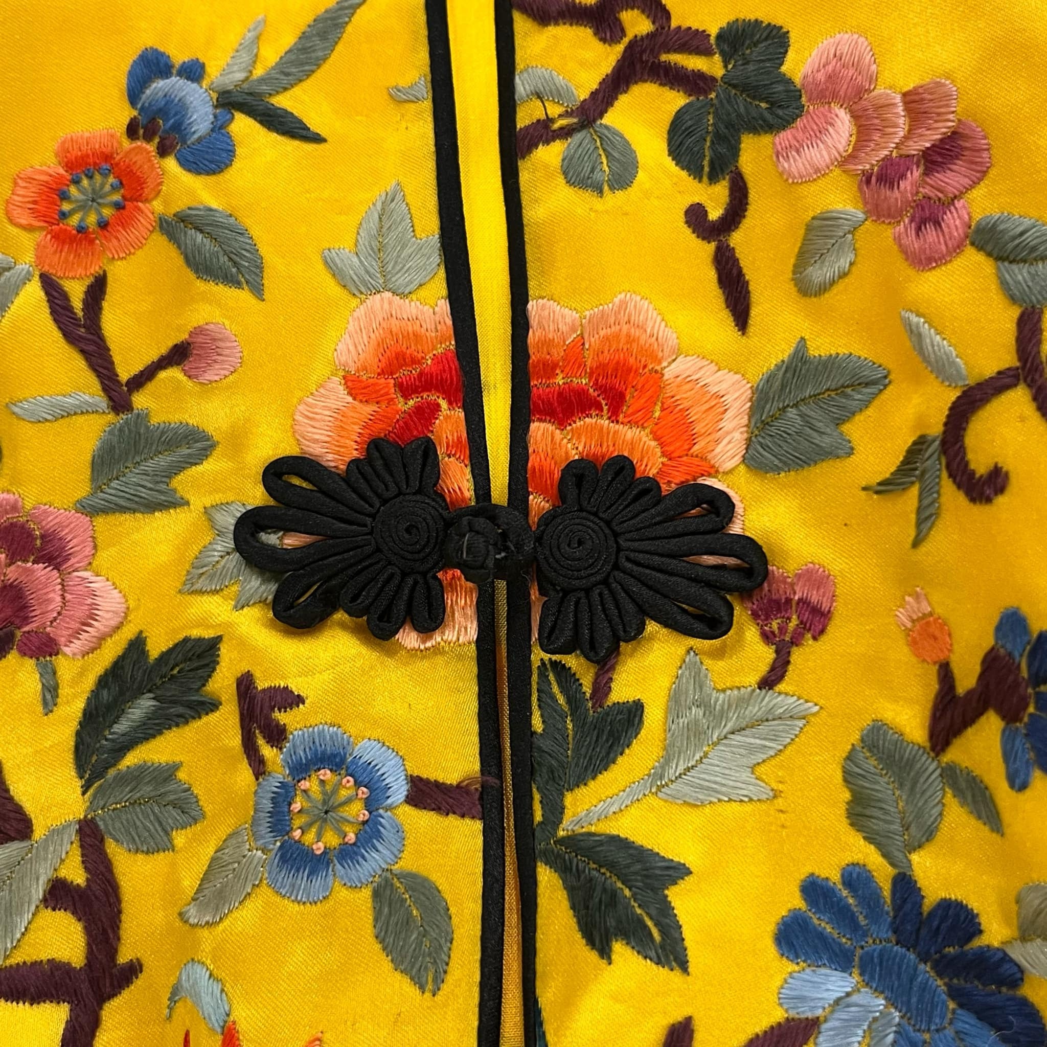 70s yellow×colorful embroidery China shirt jacket [l-4889]