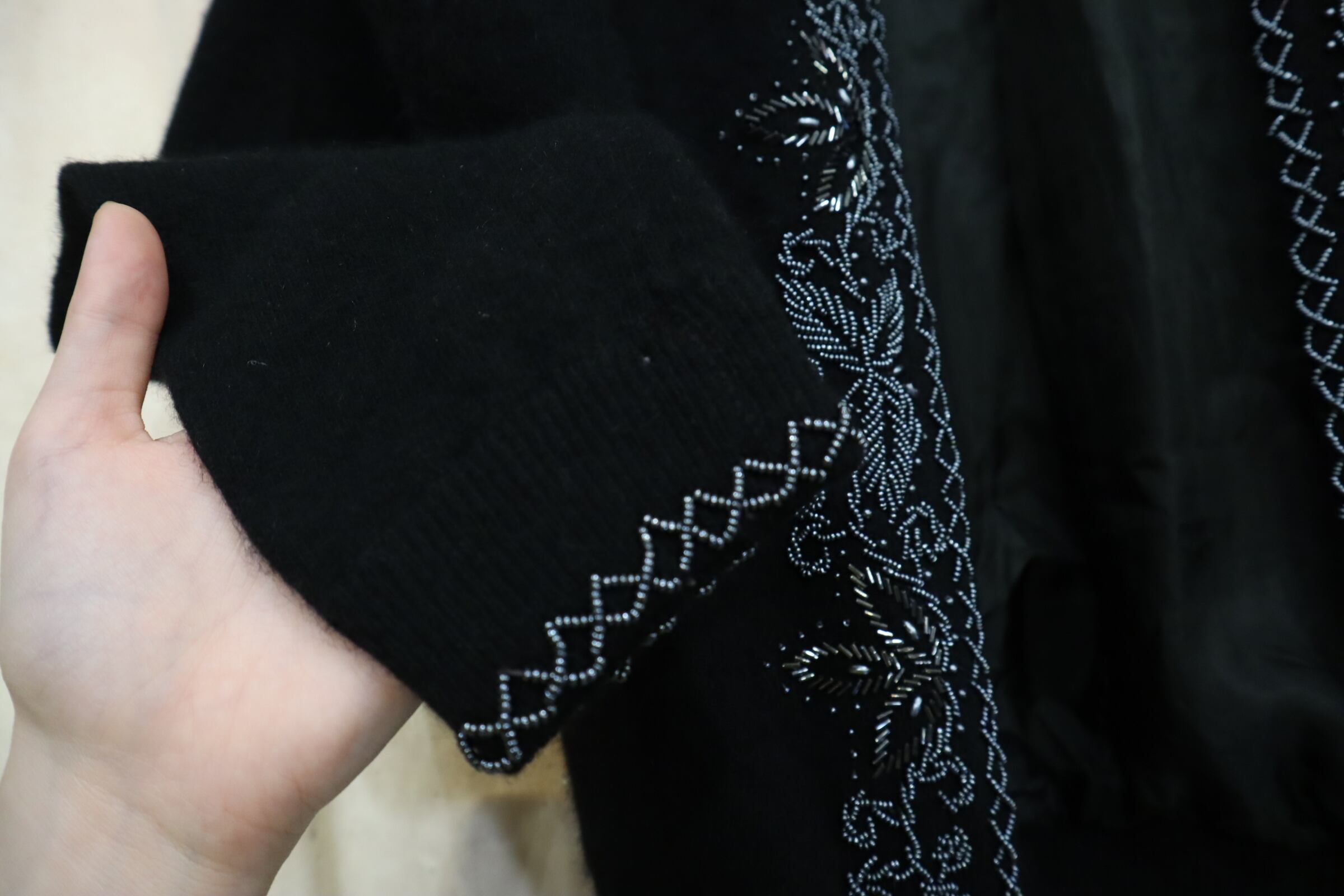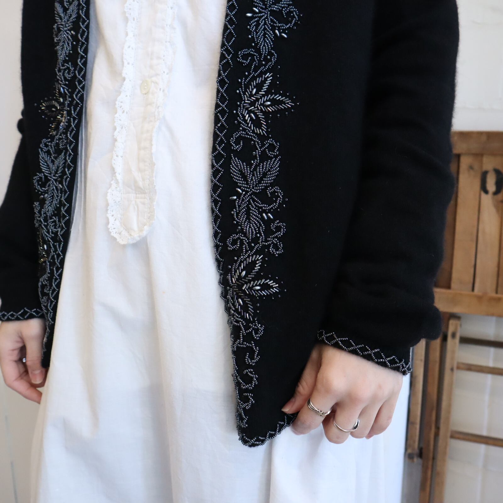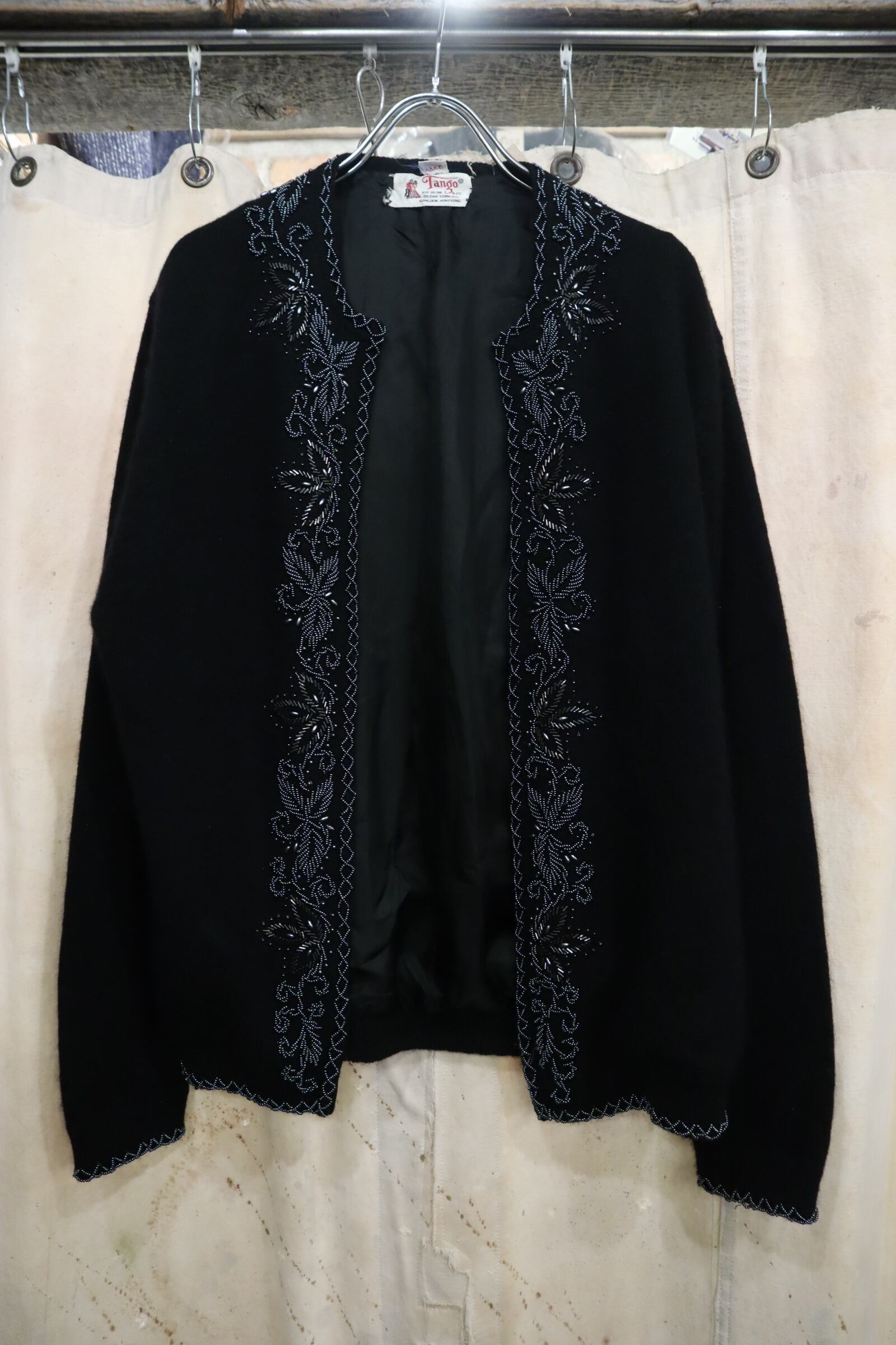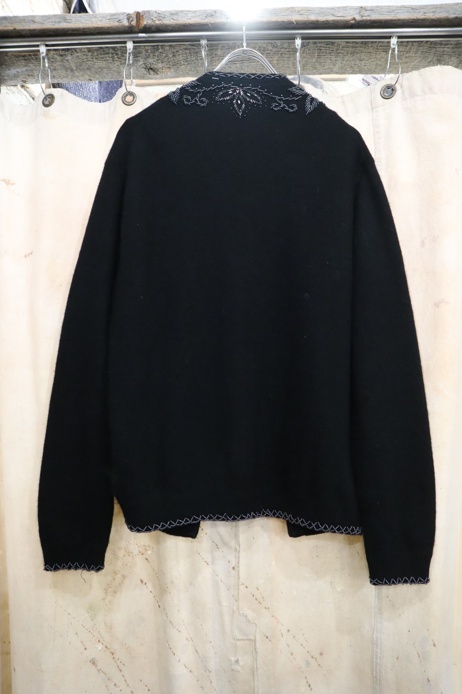 50-60s black×blacksilver beads knit cardigan [l-4891]
