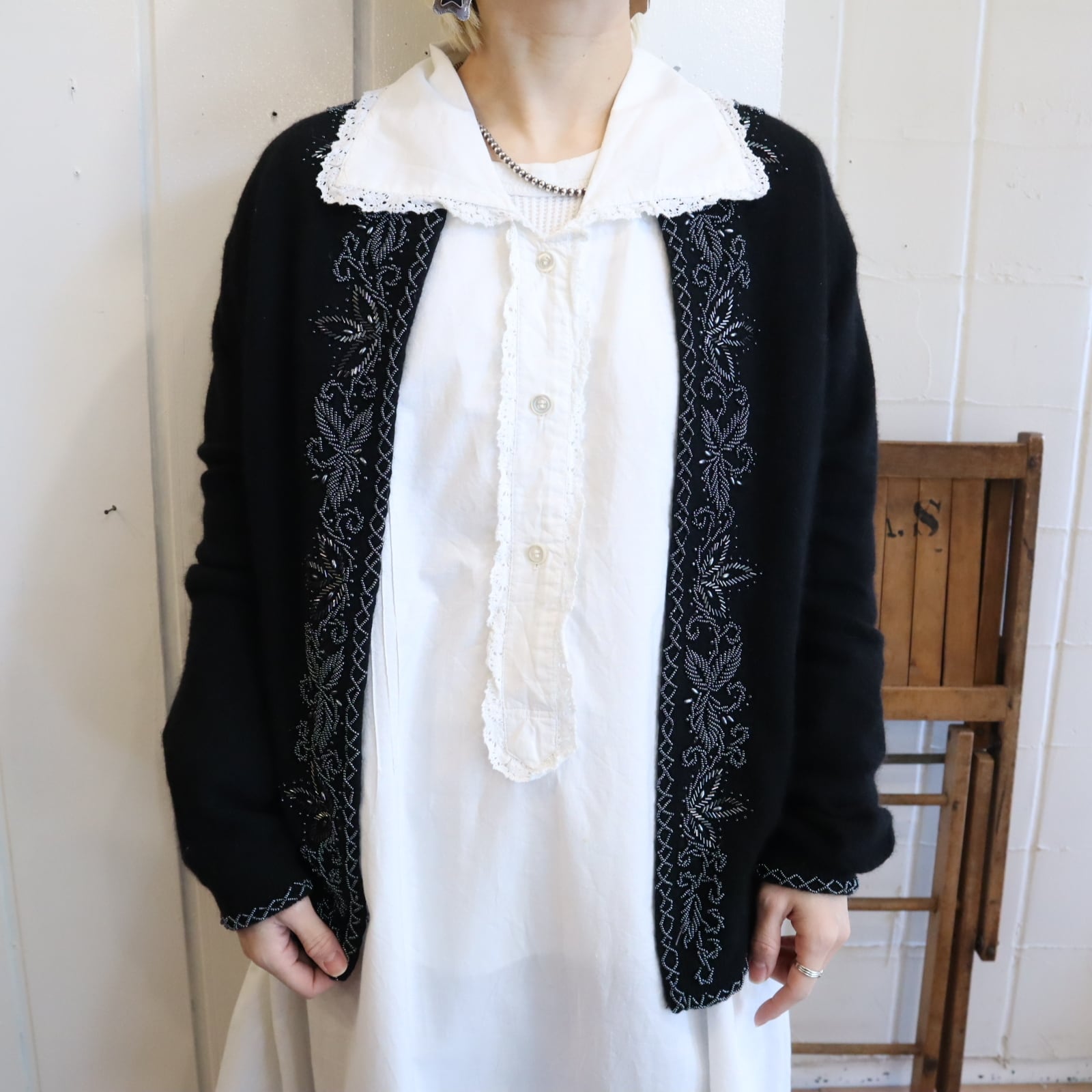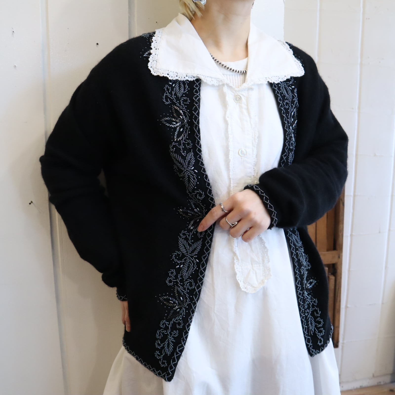 一部ビーズにホツレがございますが、古着の味として着て頂けるかと思います。