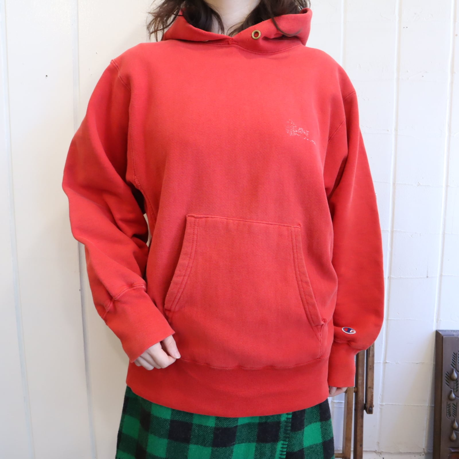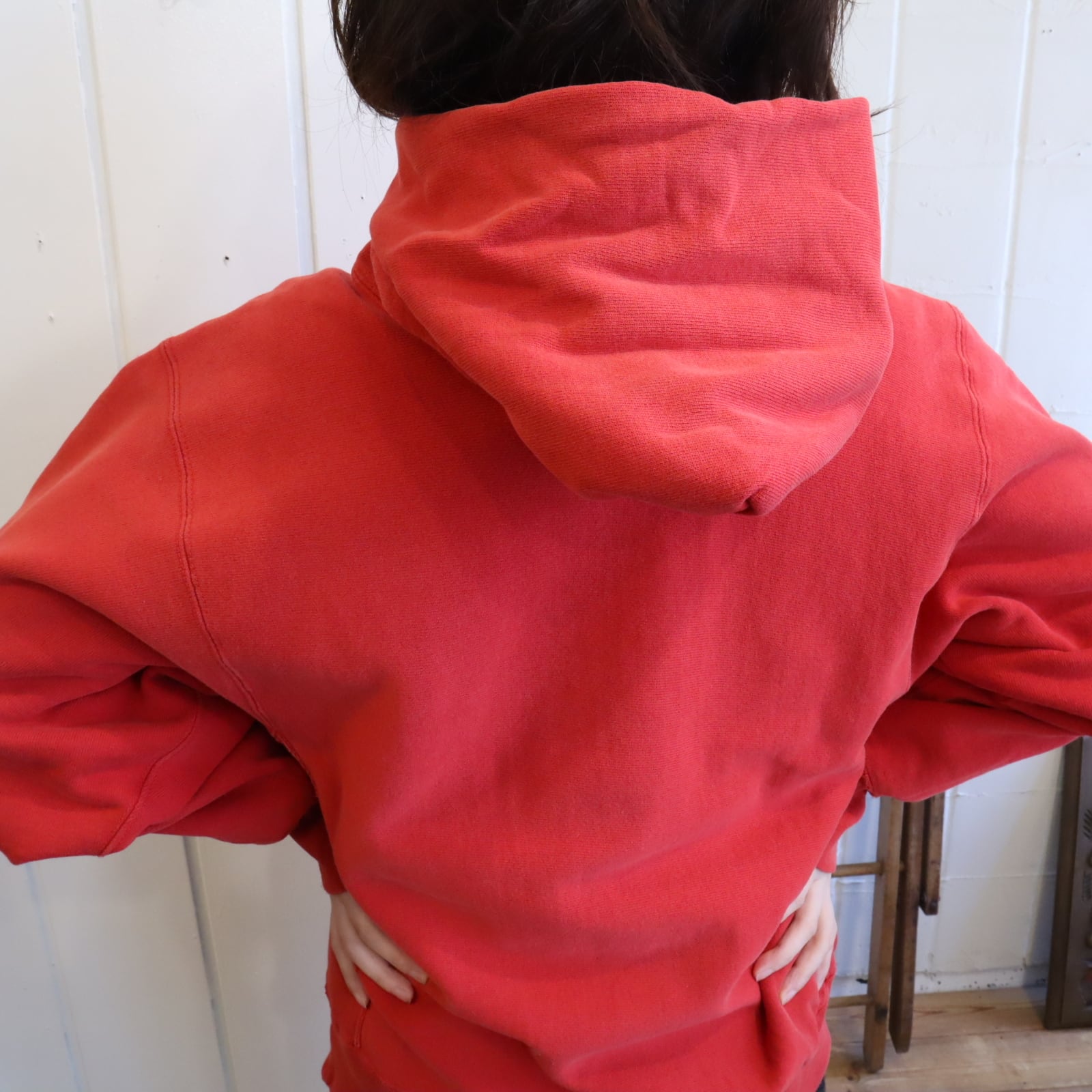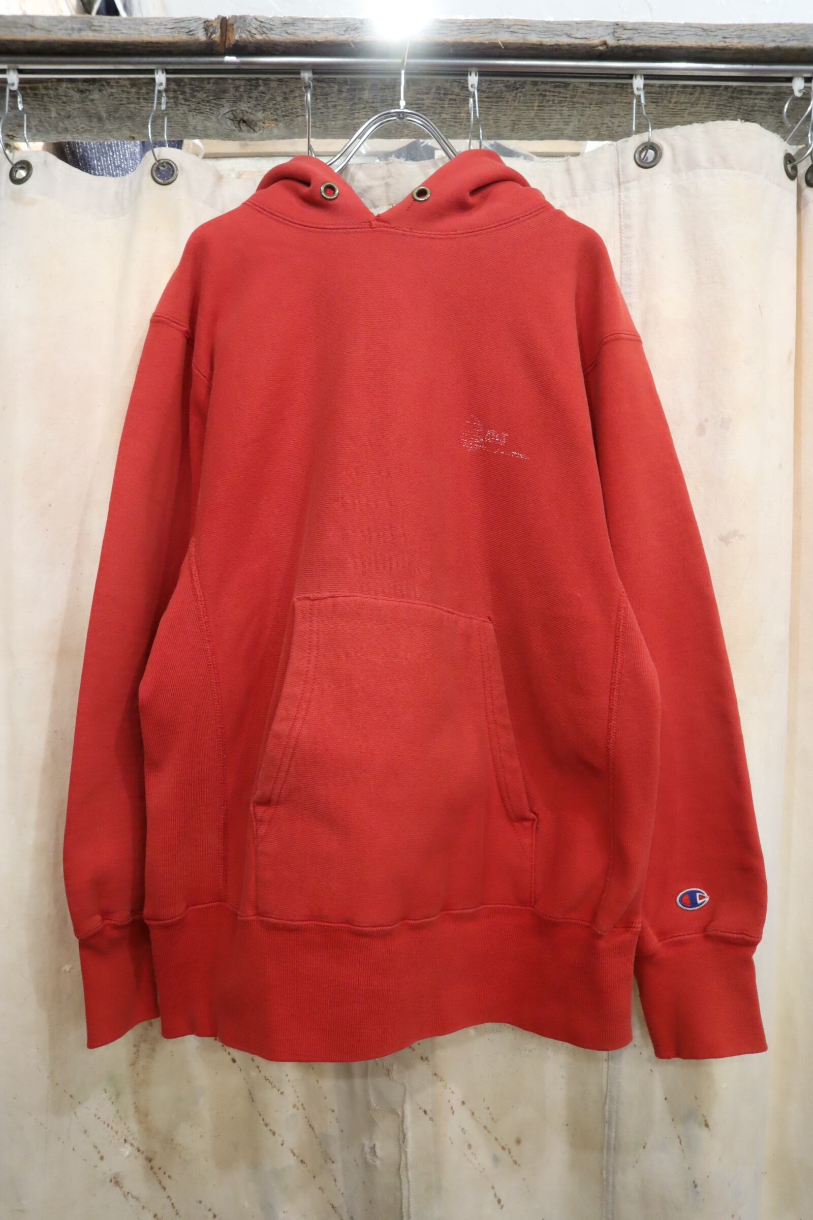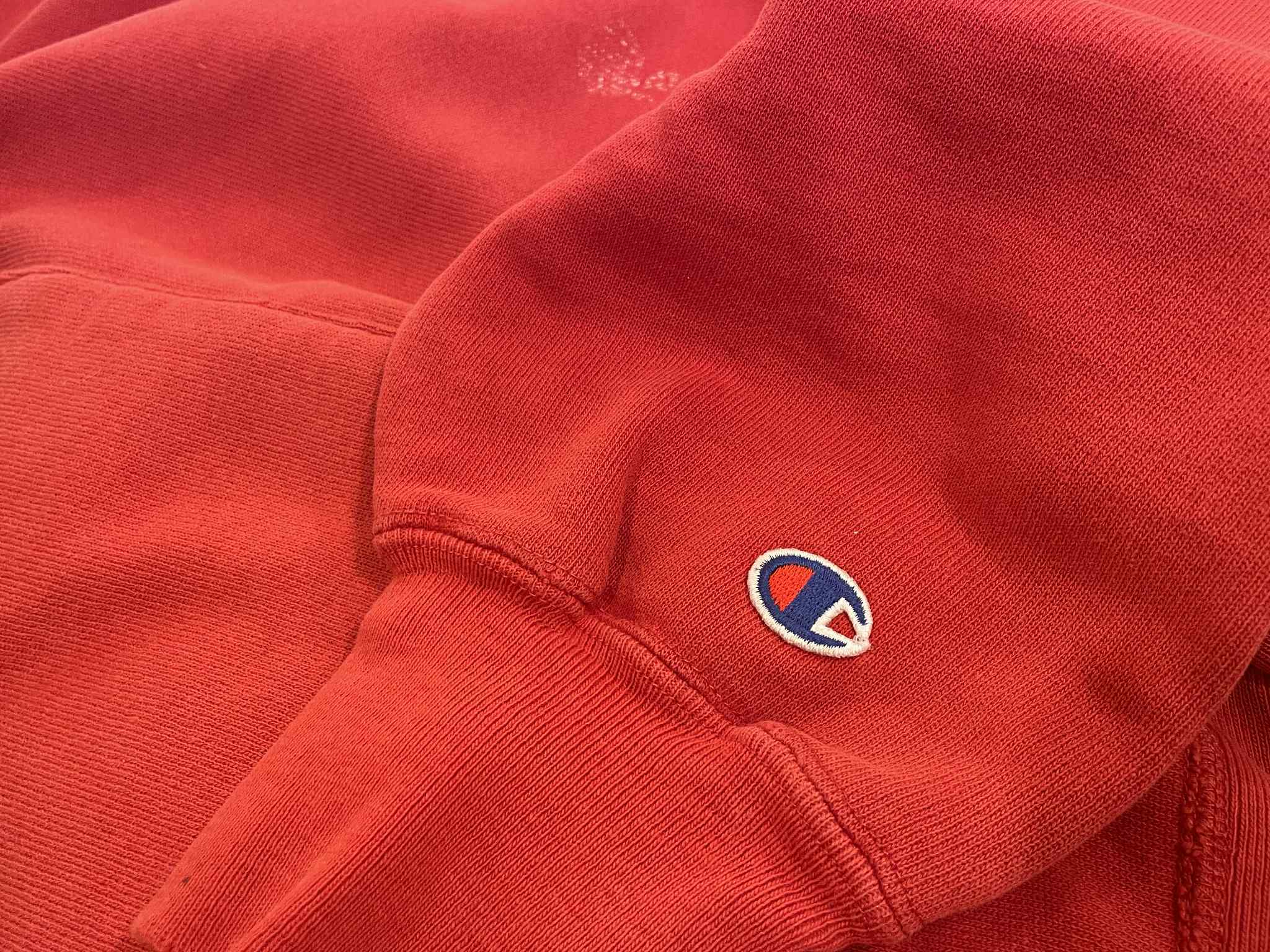 80s champion red reverse weave hoodie sweat [l-4900]