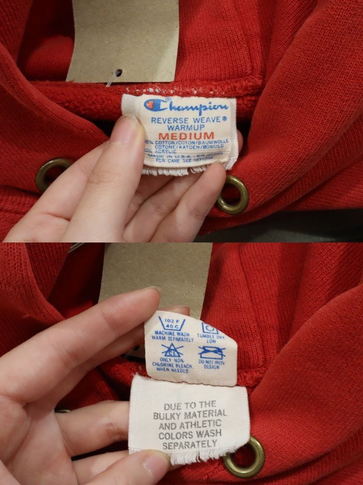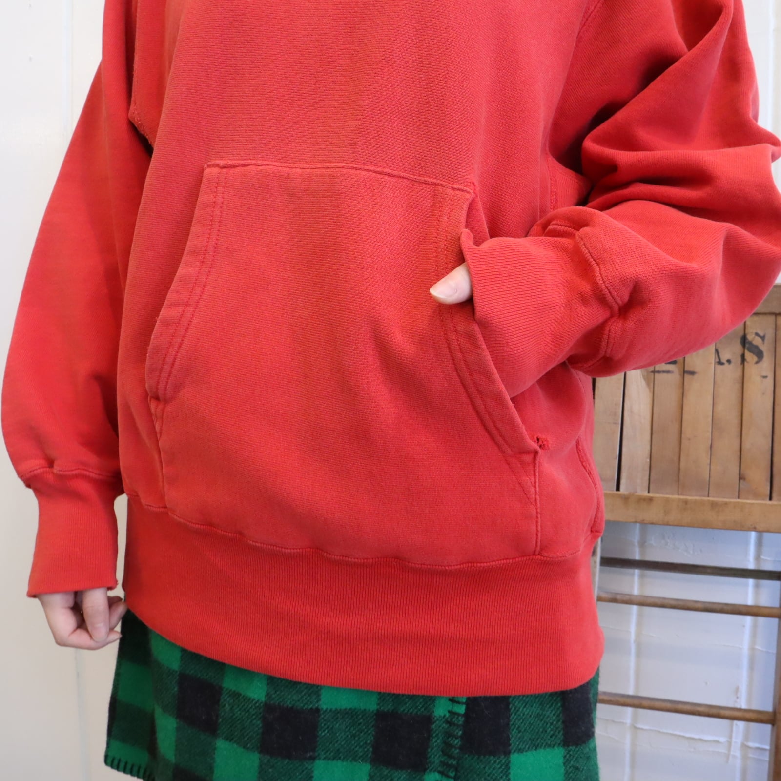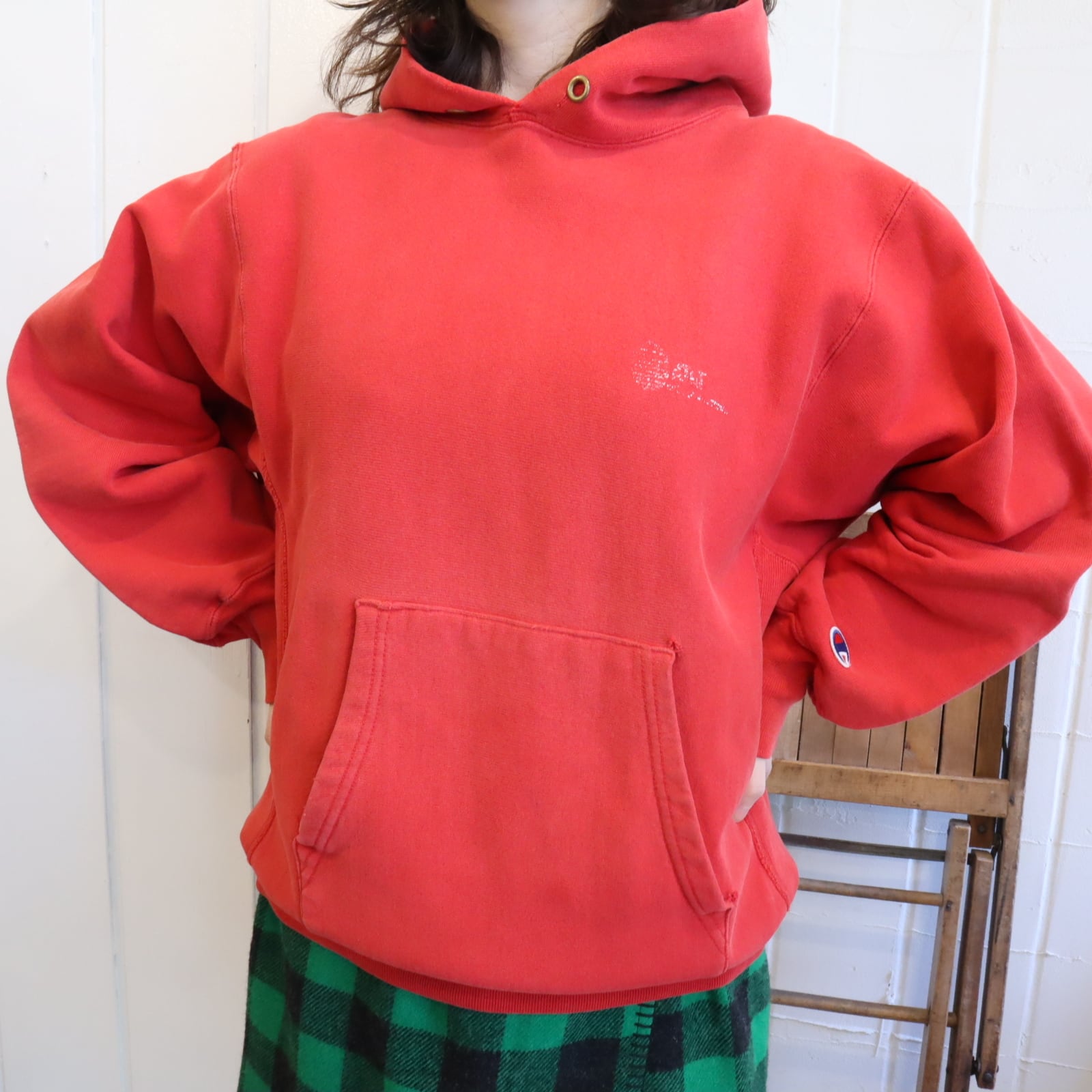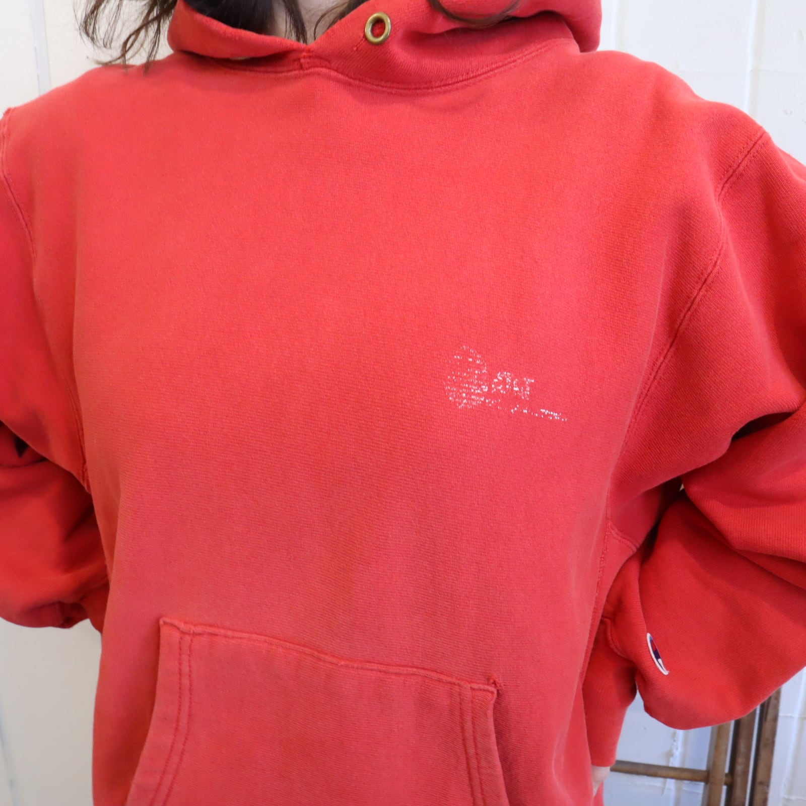 80s champion red reverse weave hoodie sweat [l-4900]
