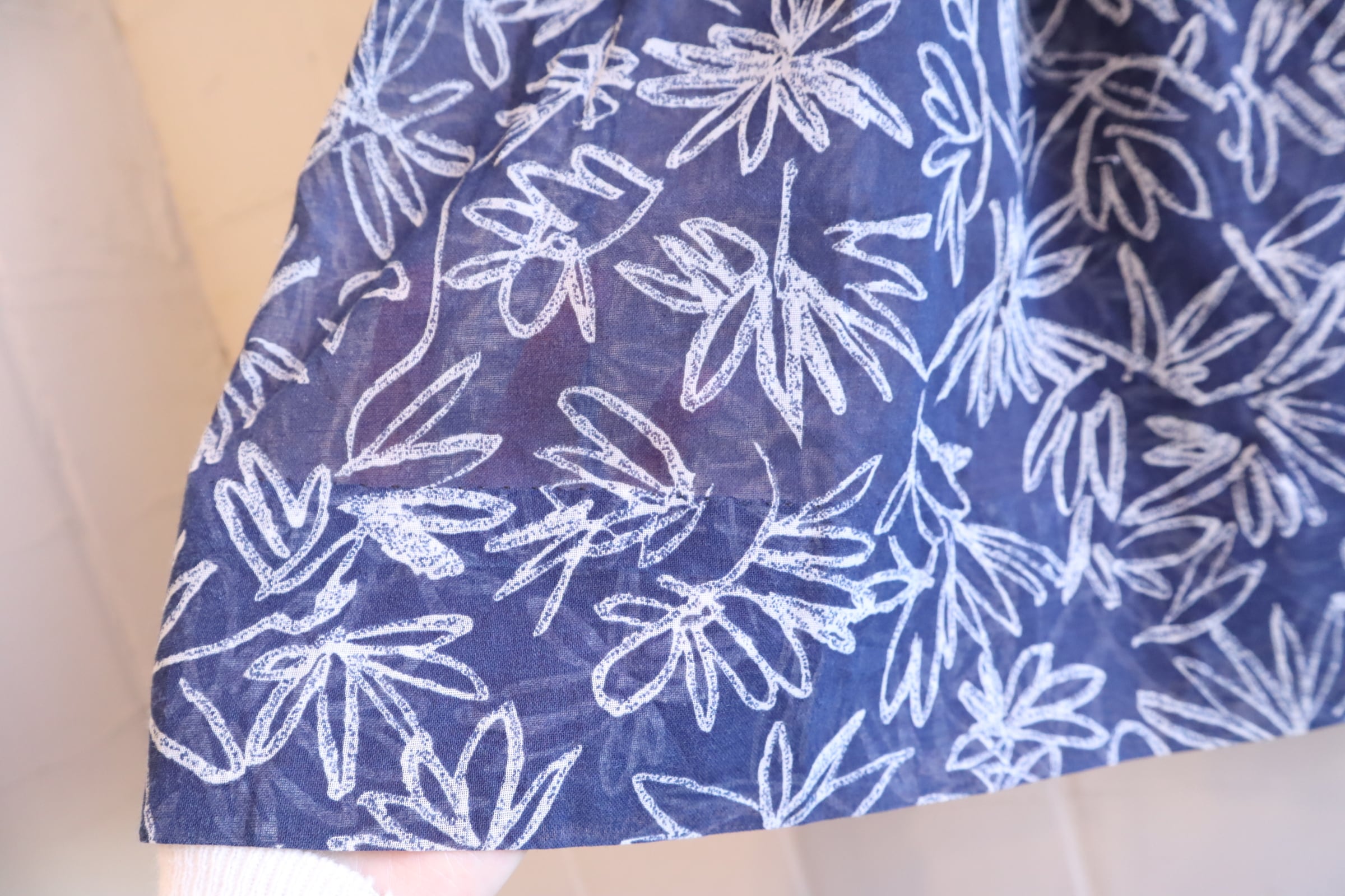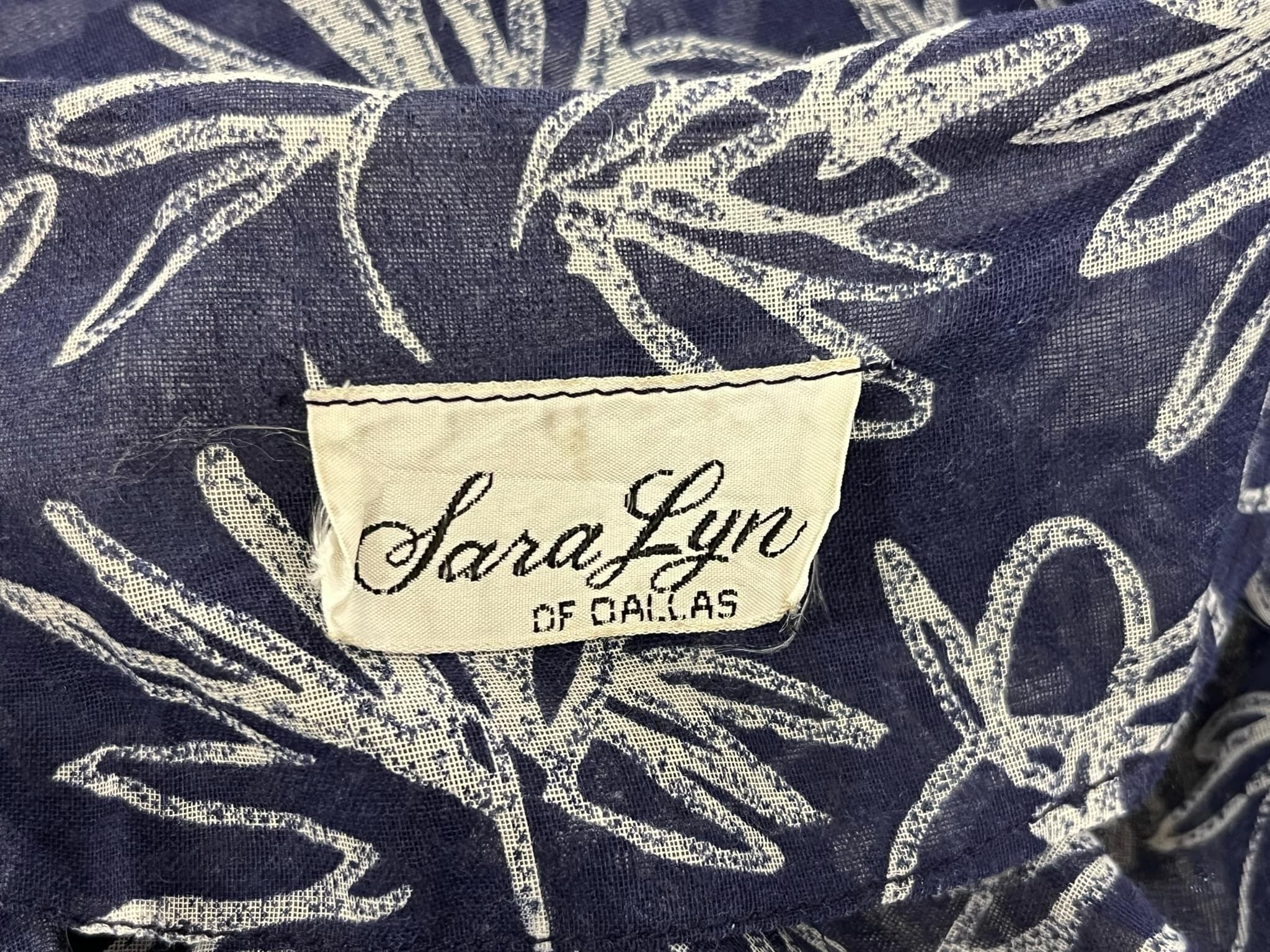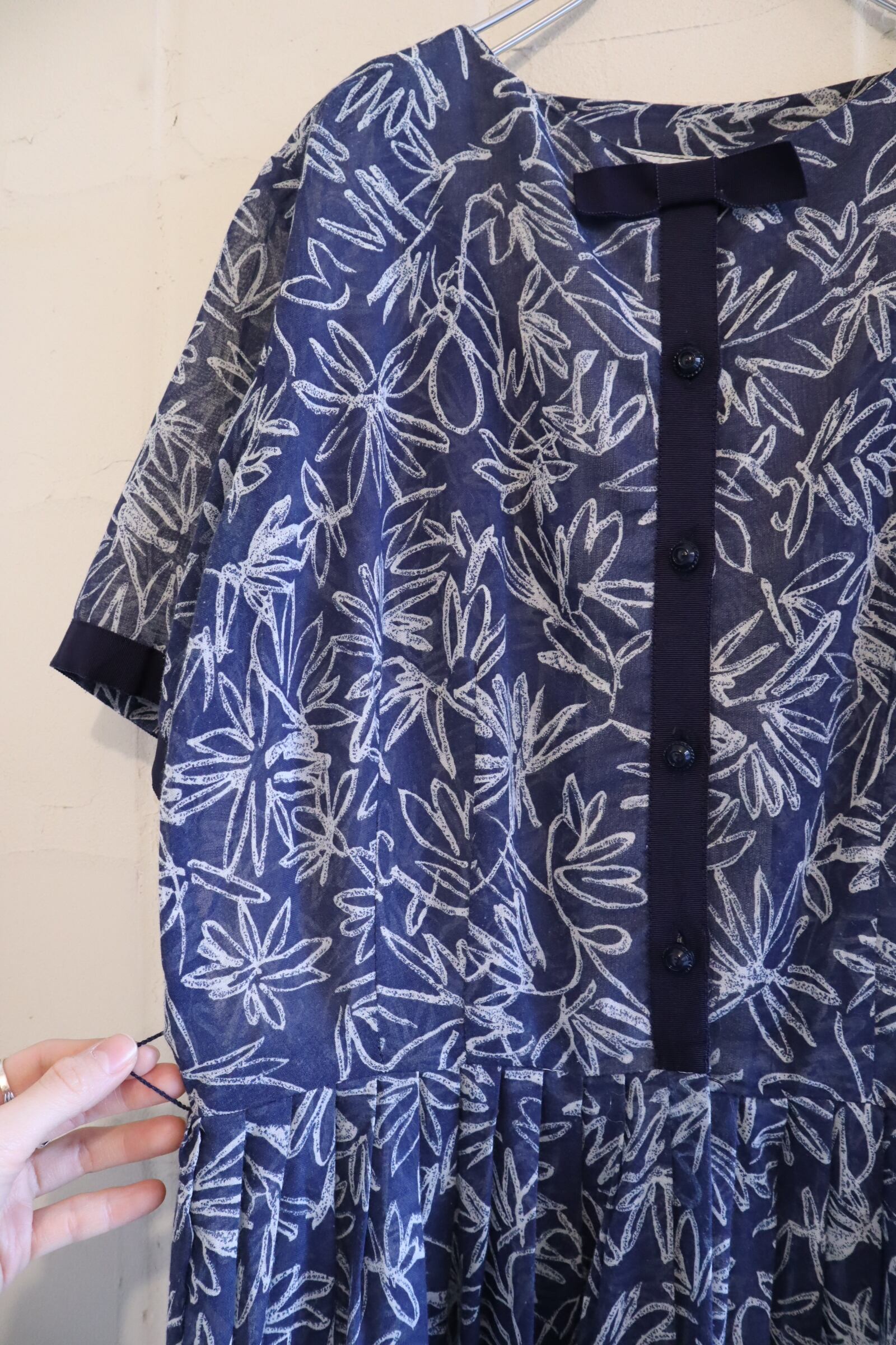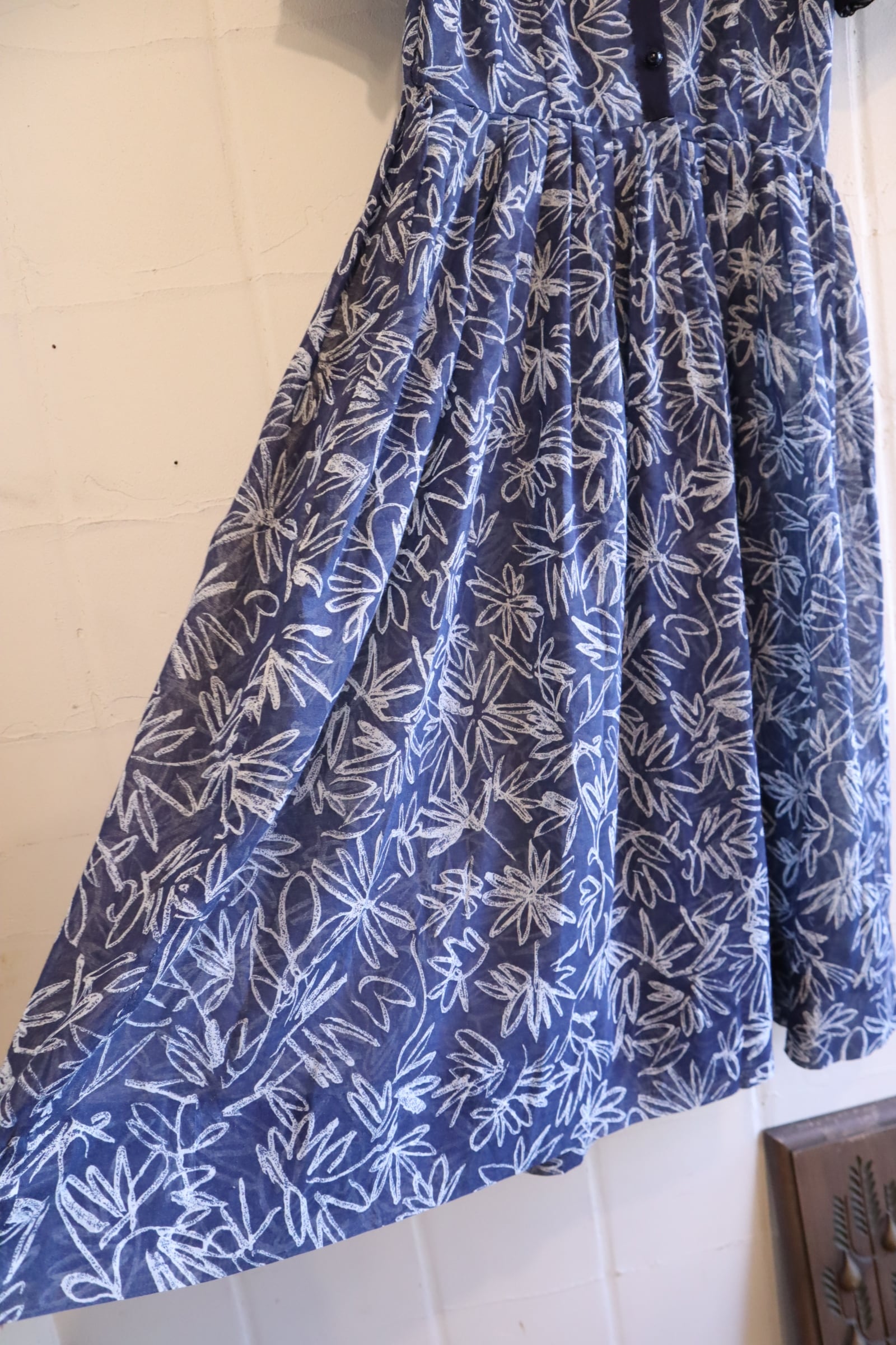 50s-60s navy×white flower print see-through dress [l-4901]