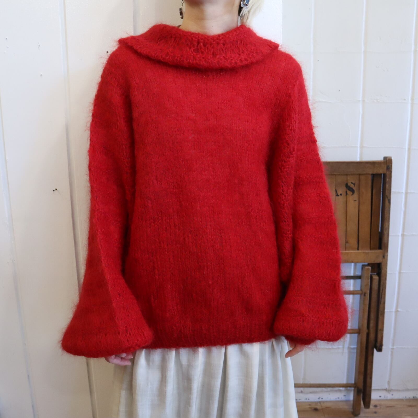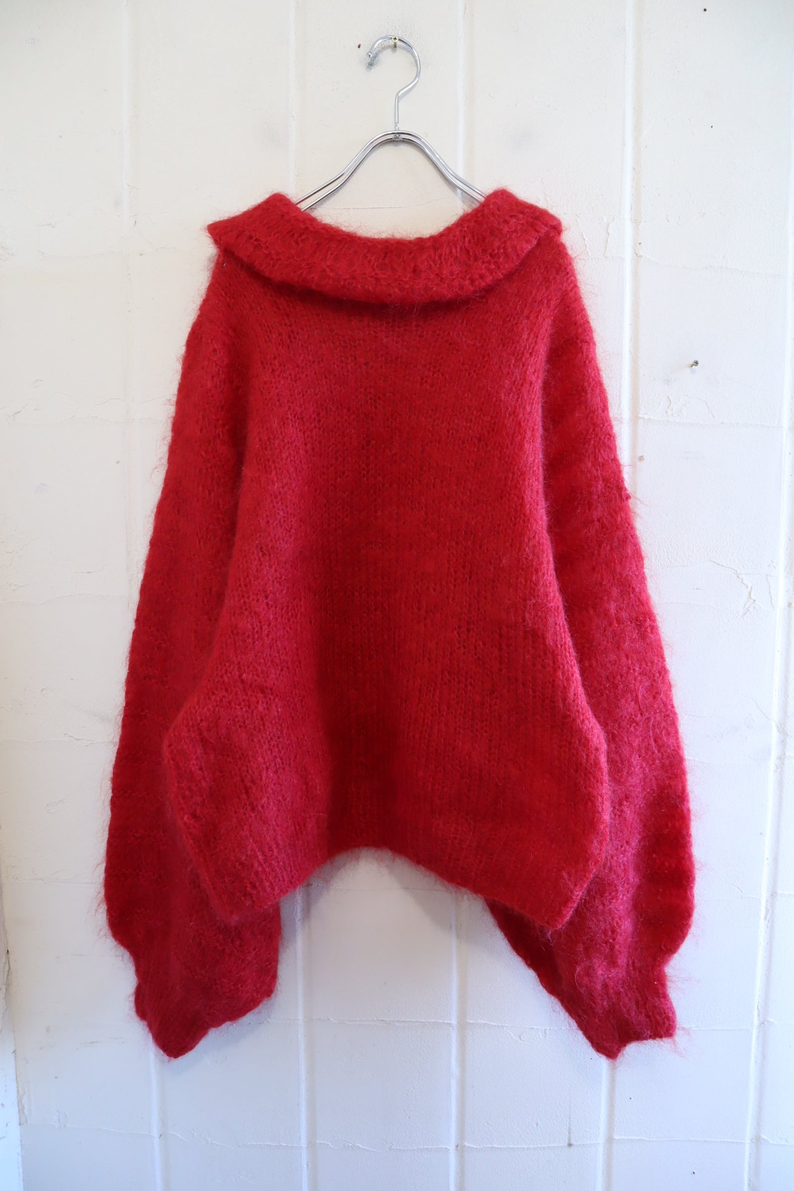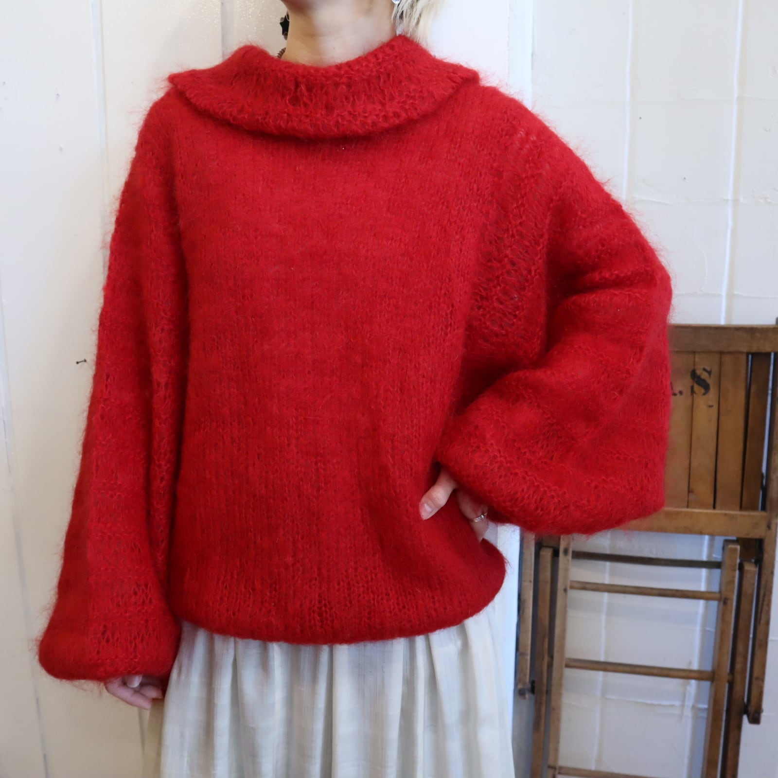 red balloon sleeve mohair knit pullover [l-4909]