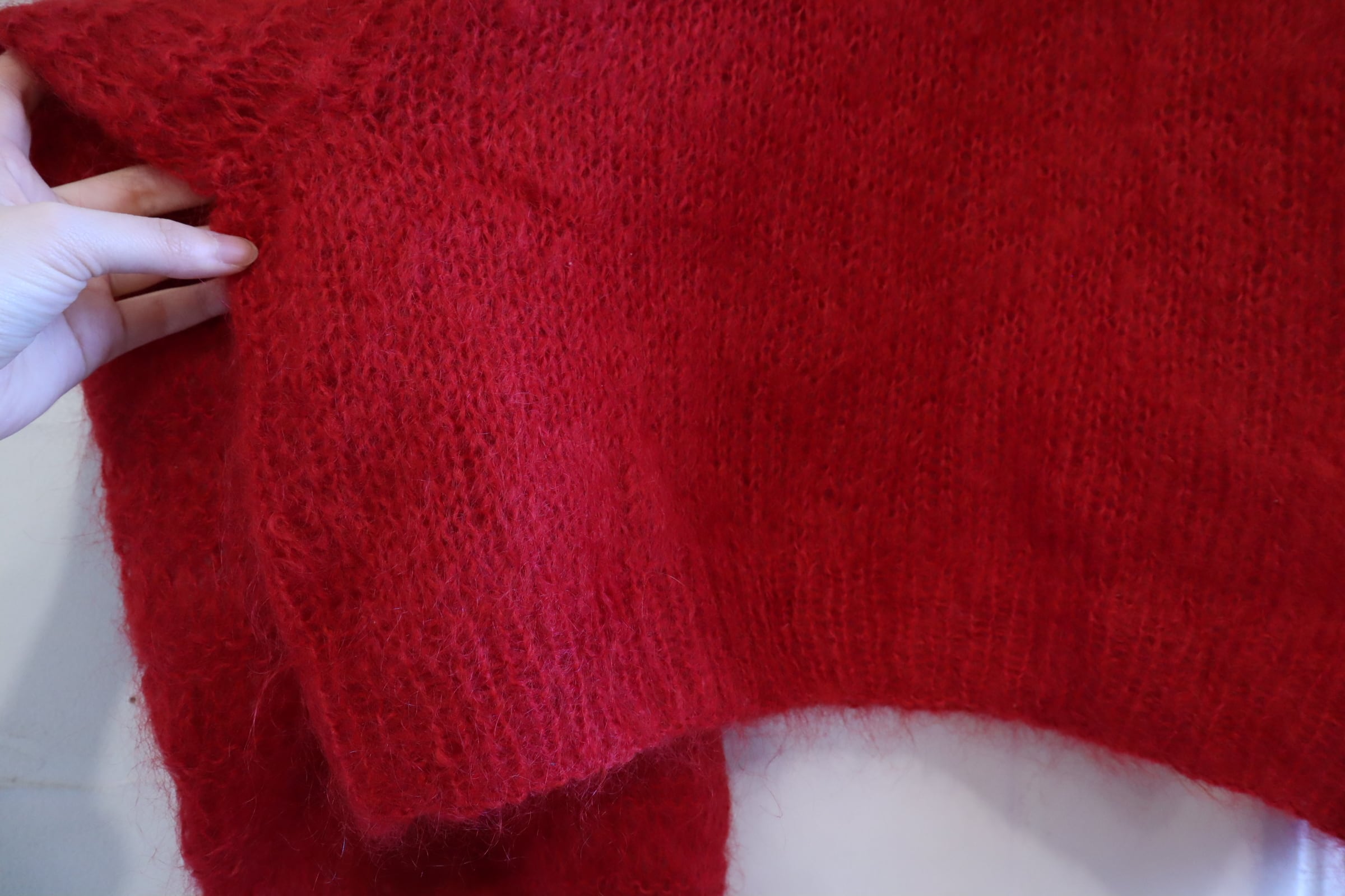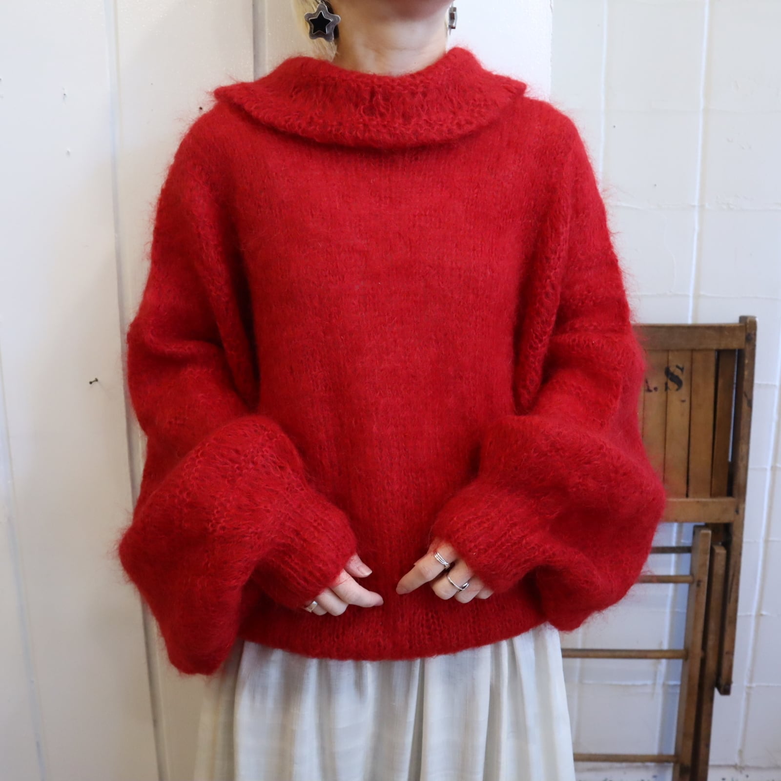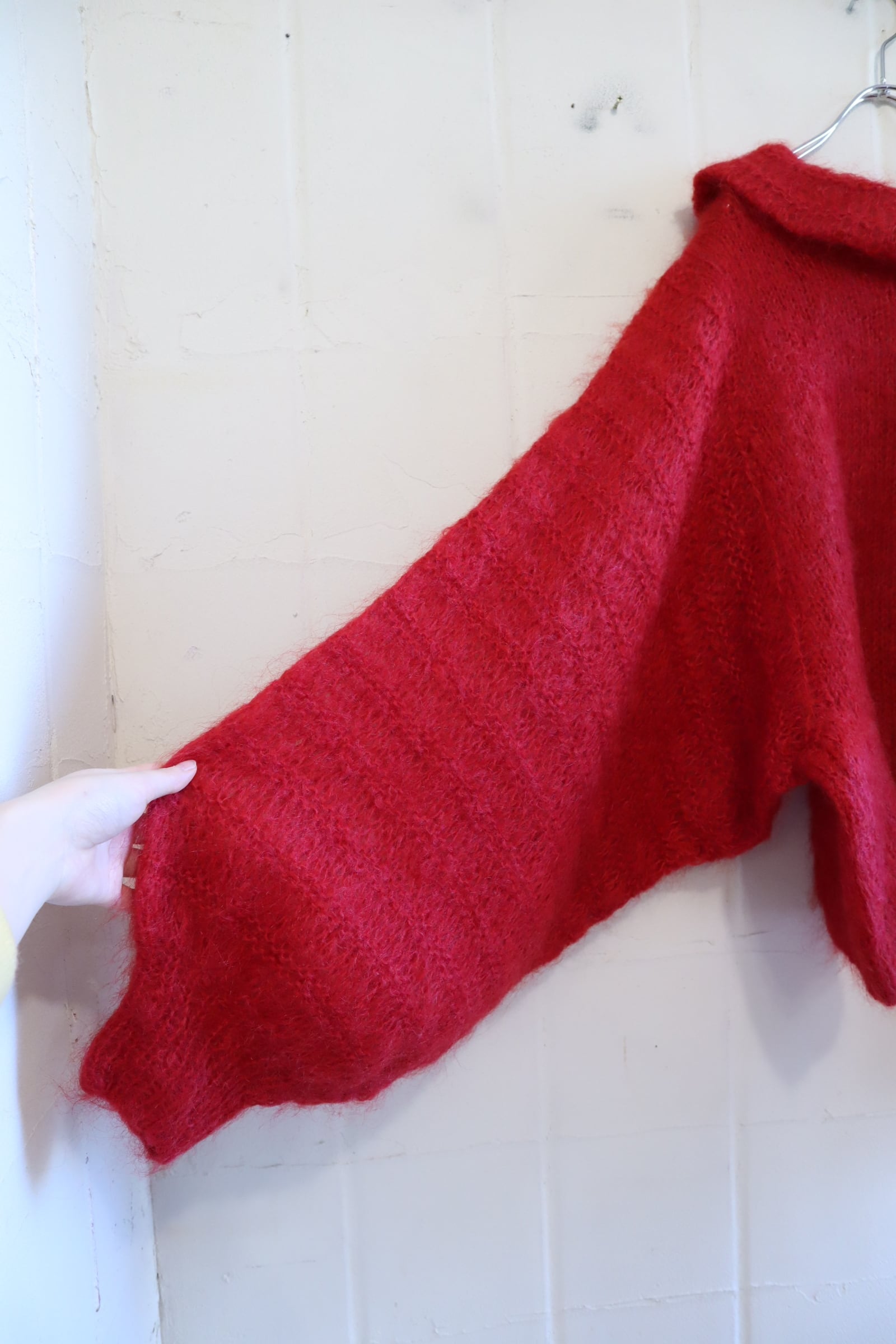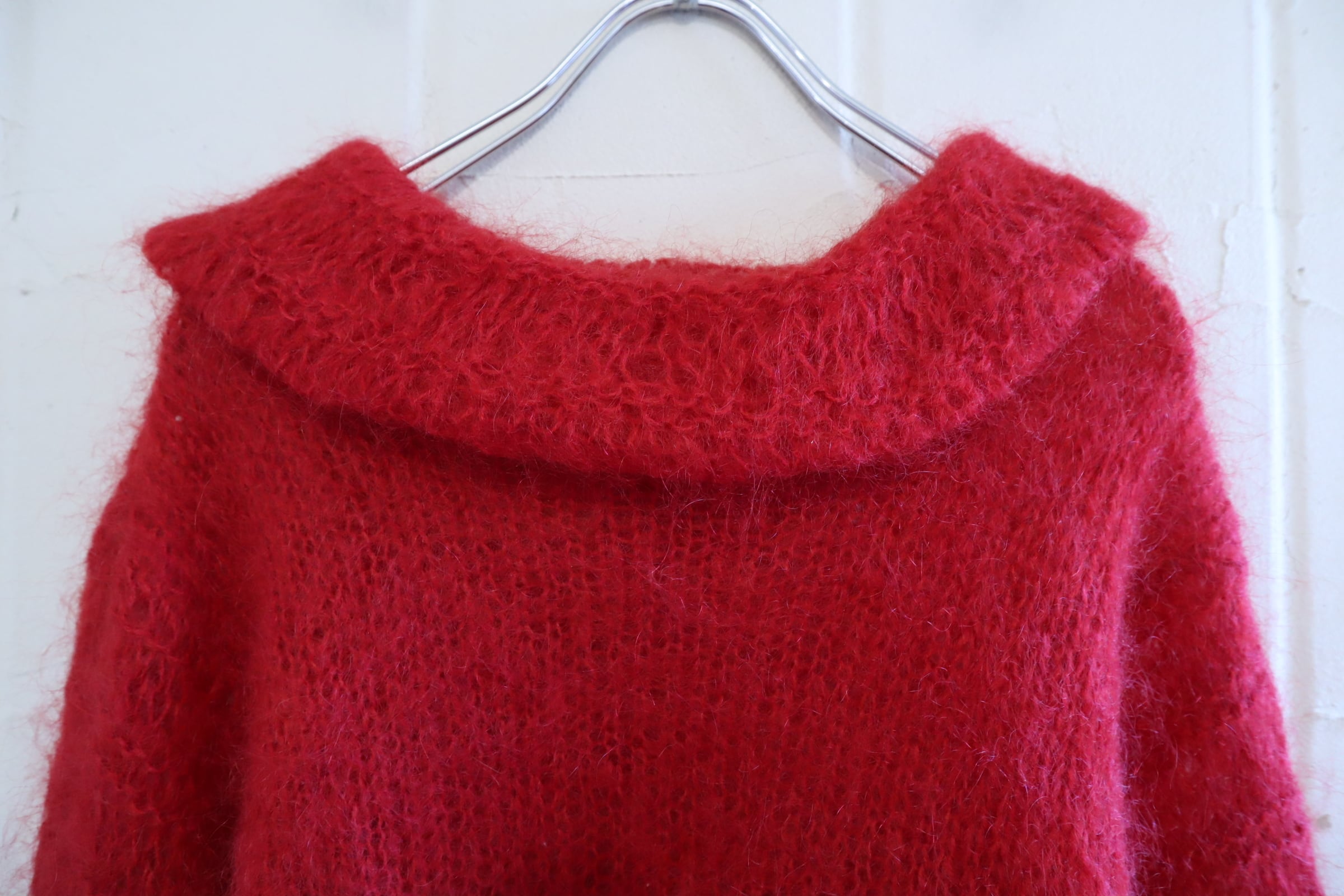 red balloon sleeve mohair knit pullover [l-4909]