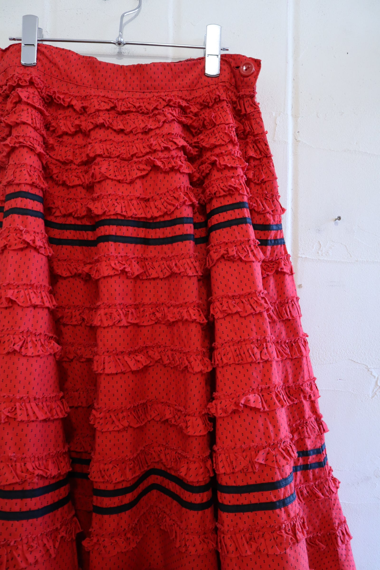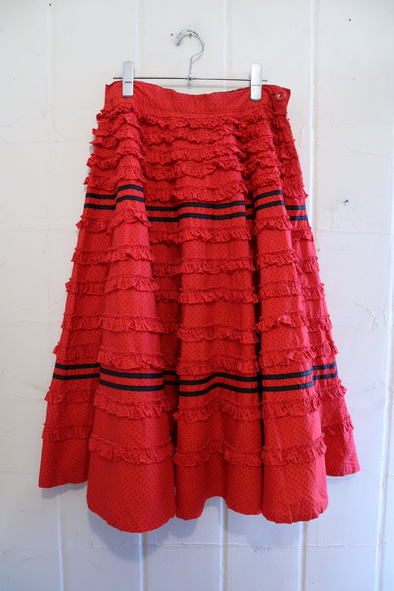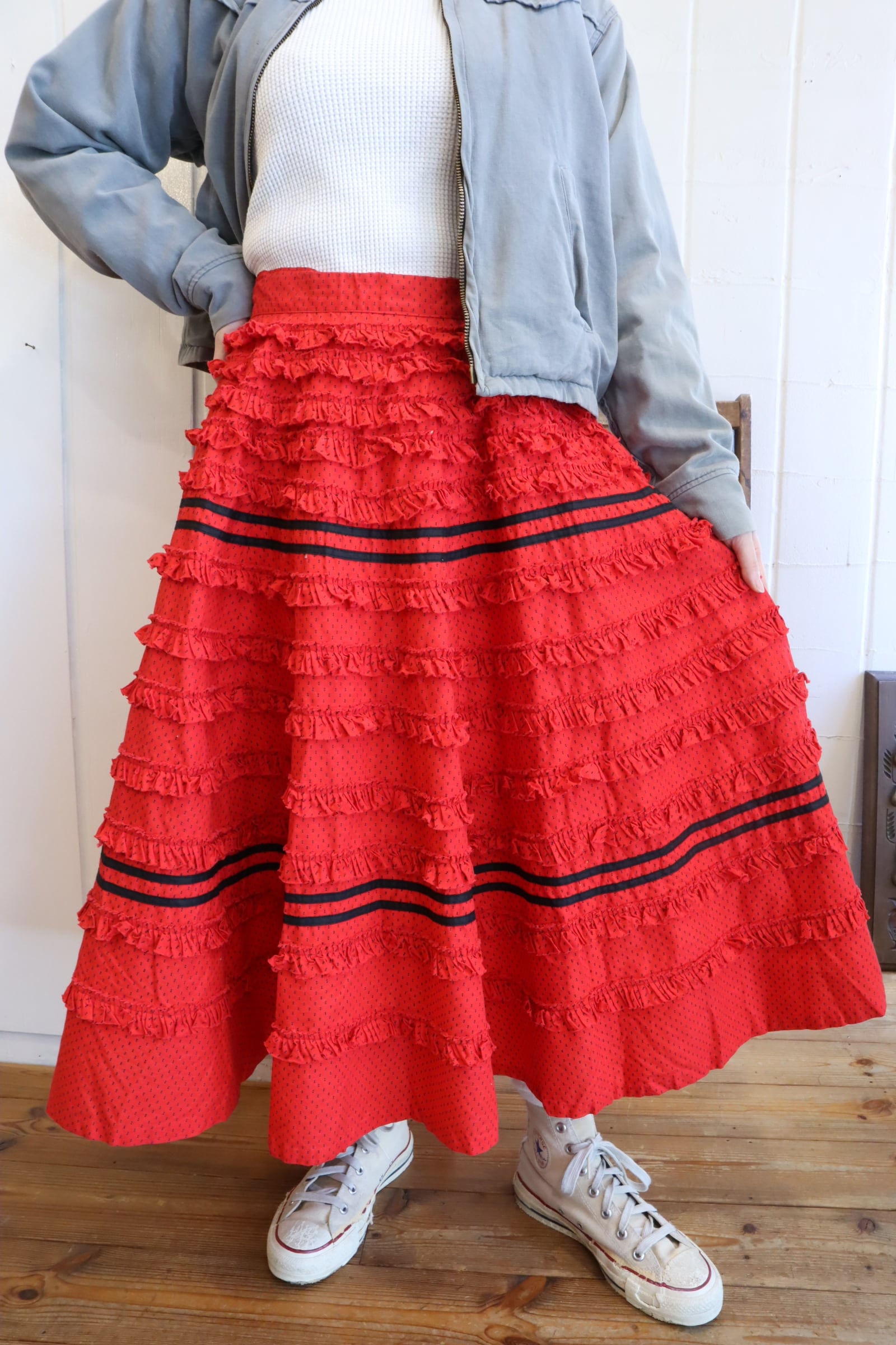 ティアードのように見えるフリルとテープのデザインがとても可愛いビンテージスカート。