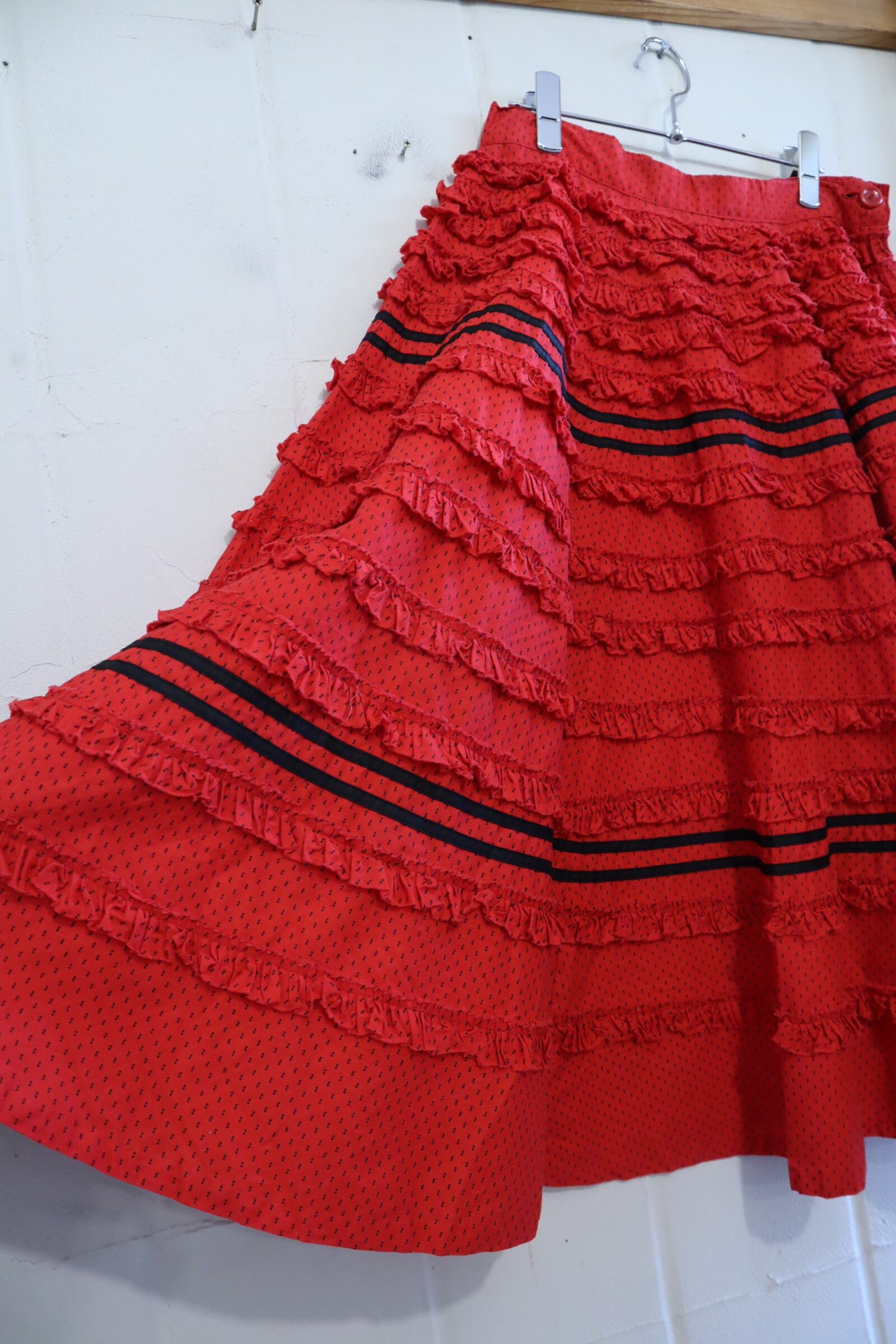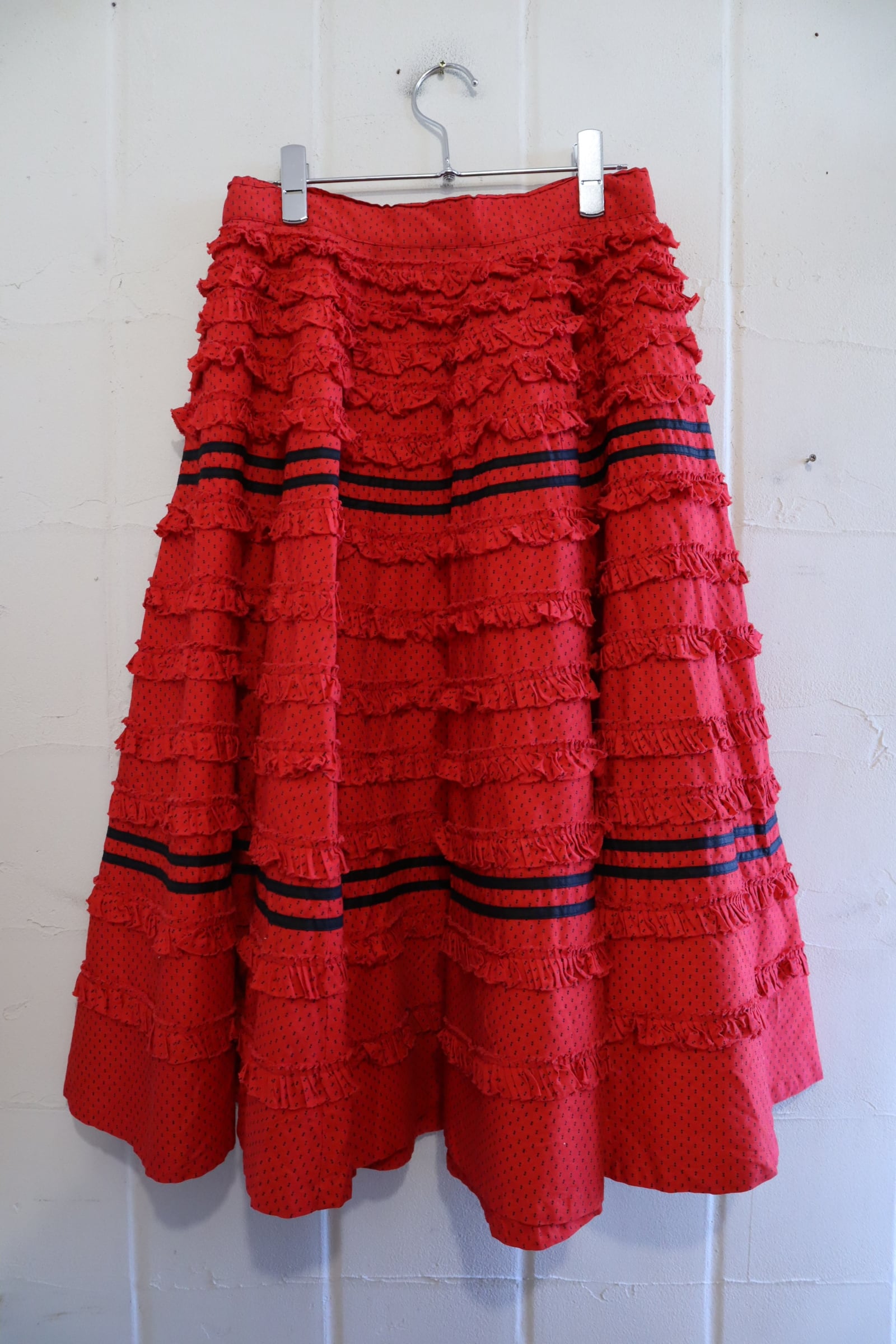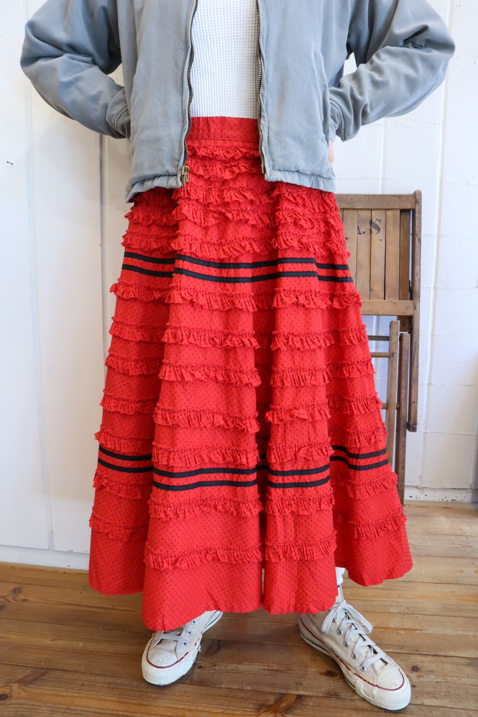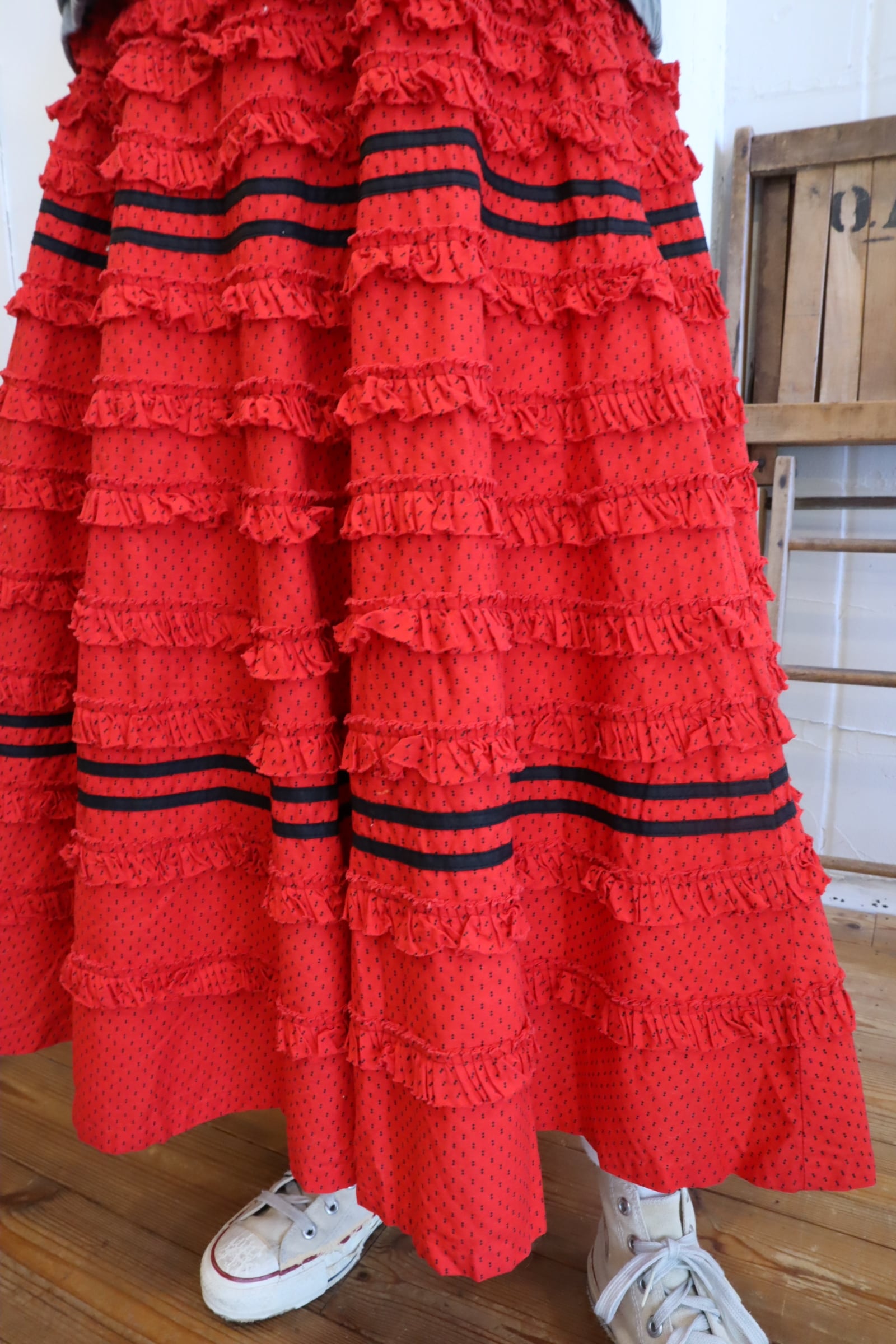 ティアードのように見えるフリルとテープのデザインがとても可愛いビンテージスカート。