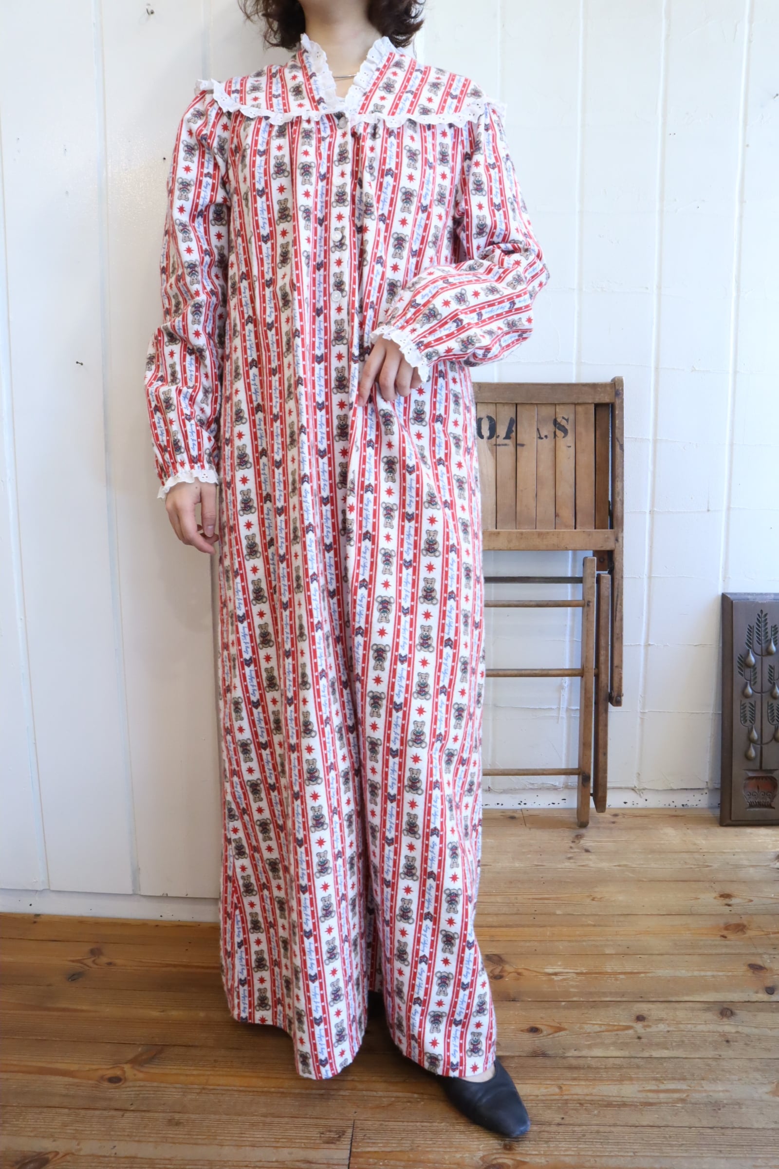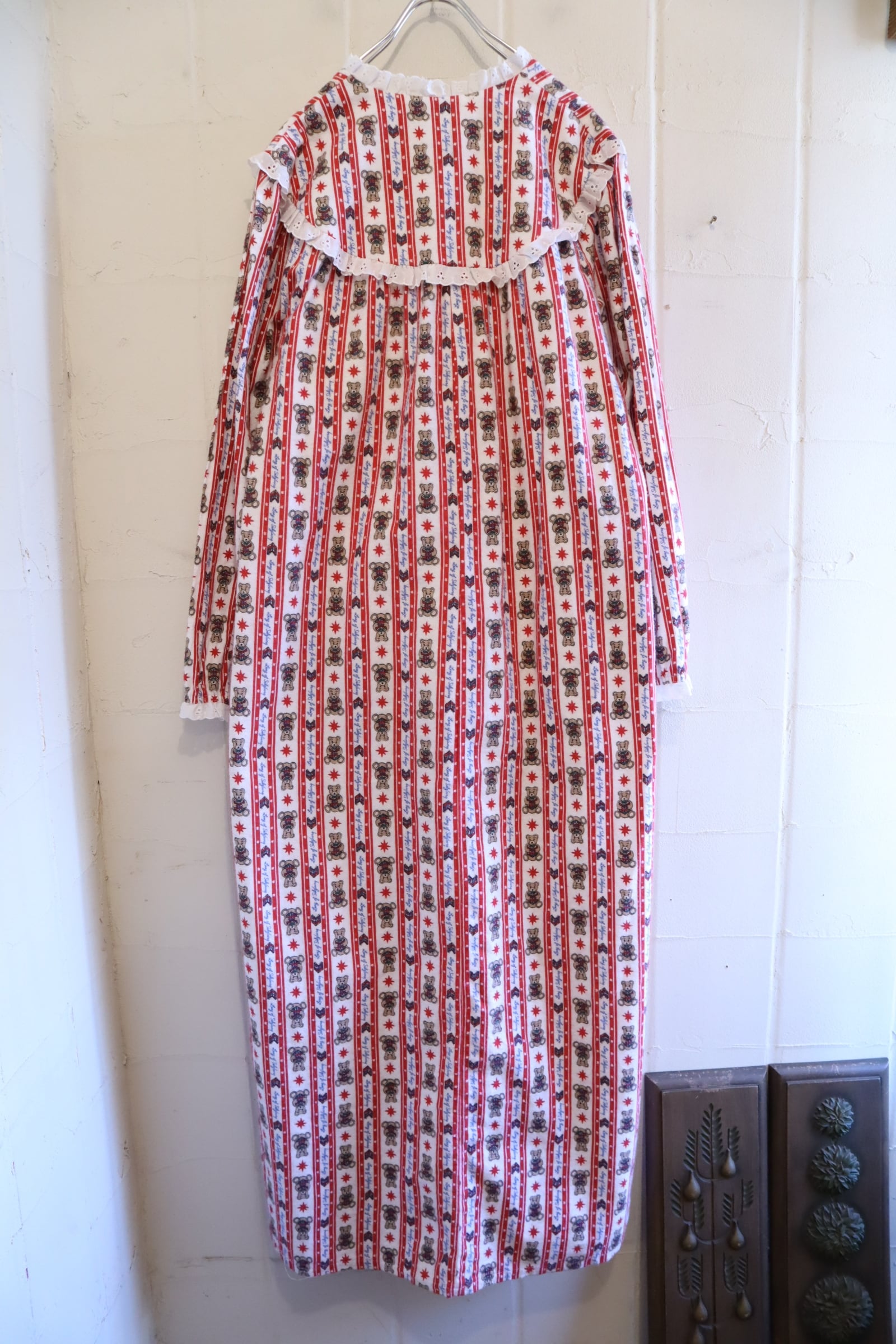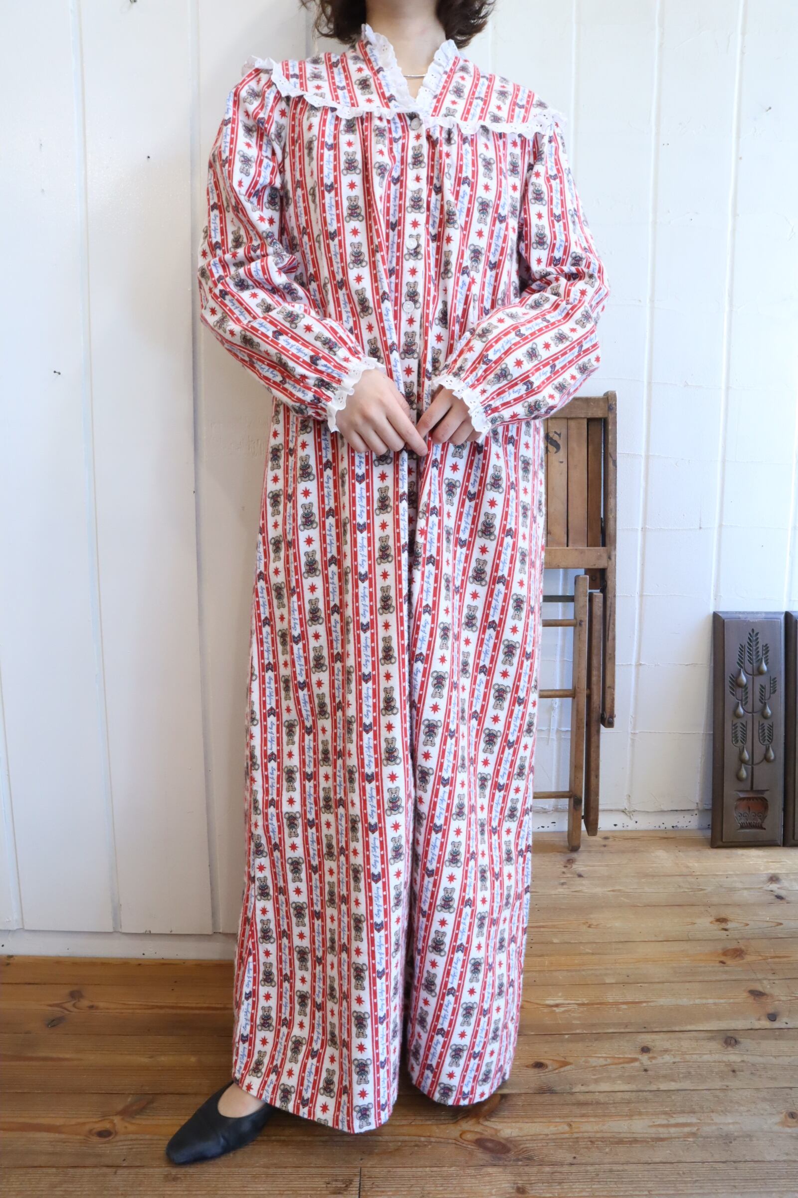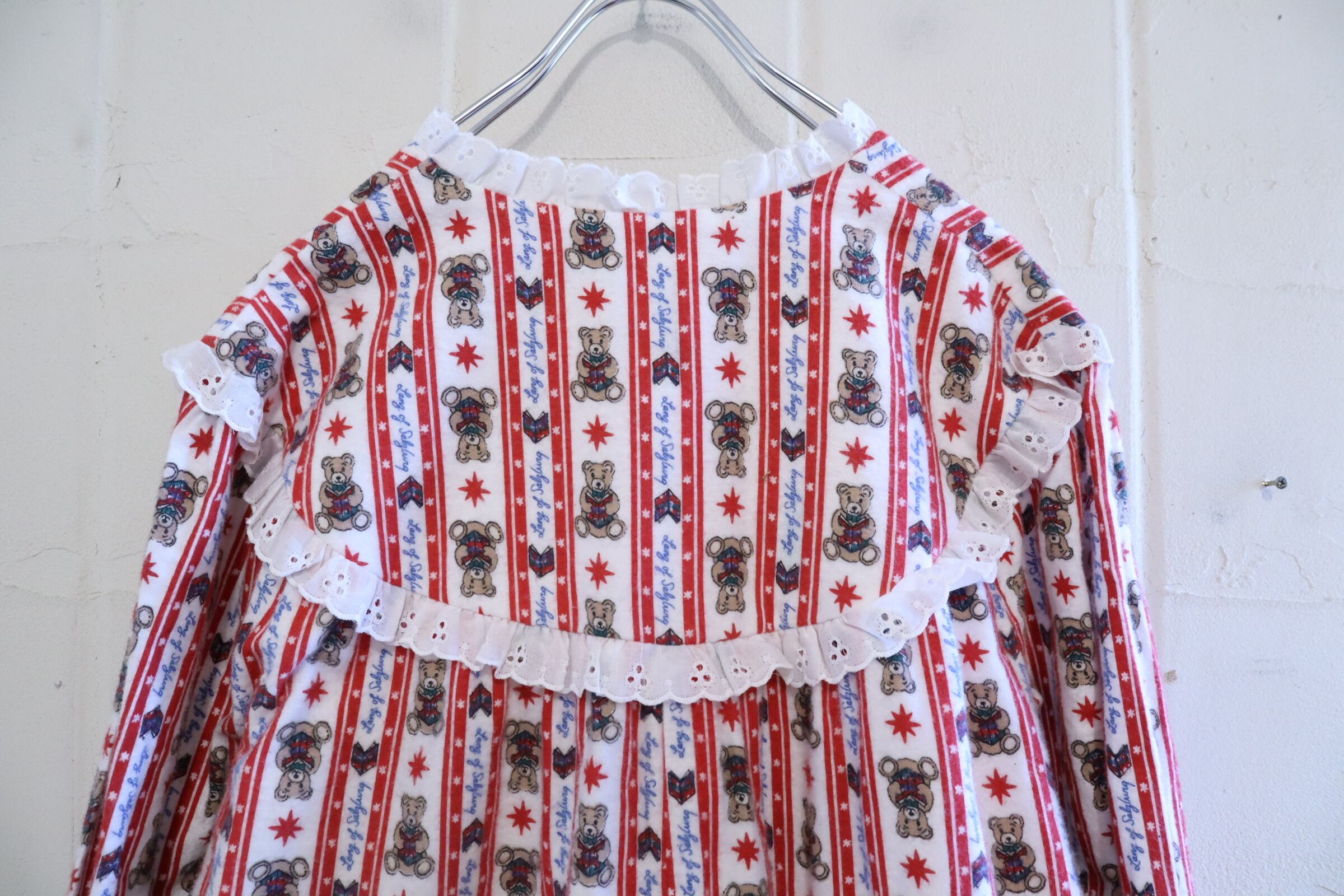 made in USA red×white bear pattern night dress [l-4911]