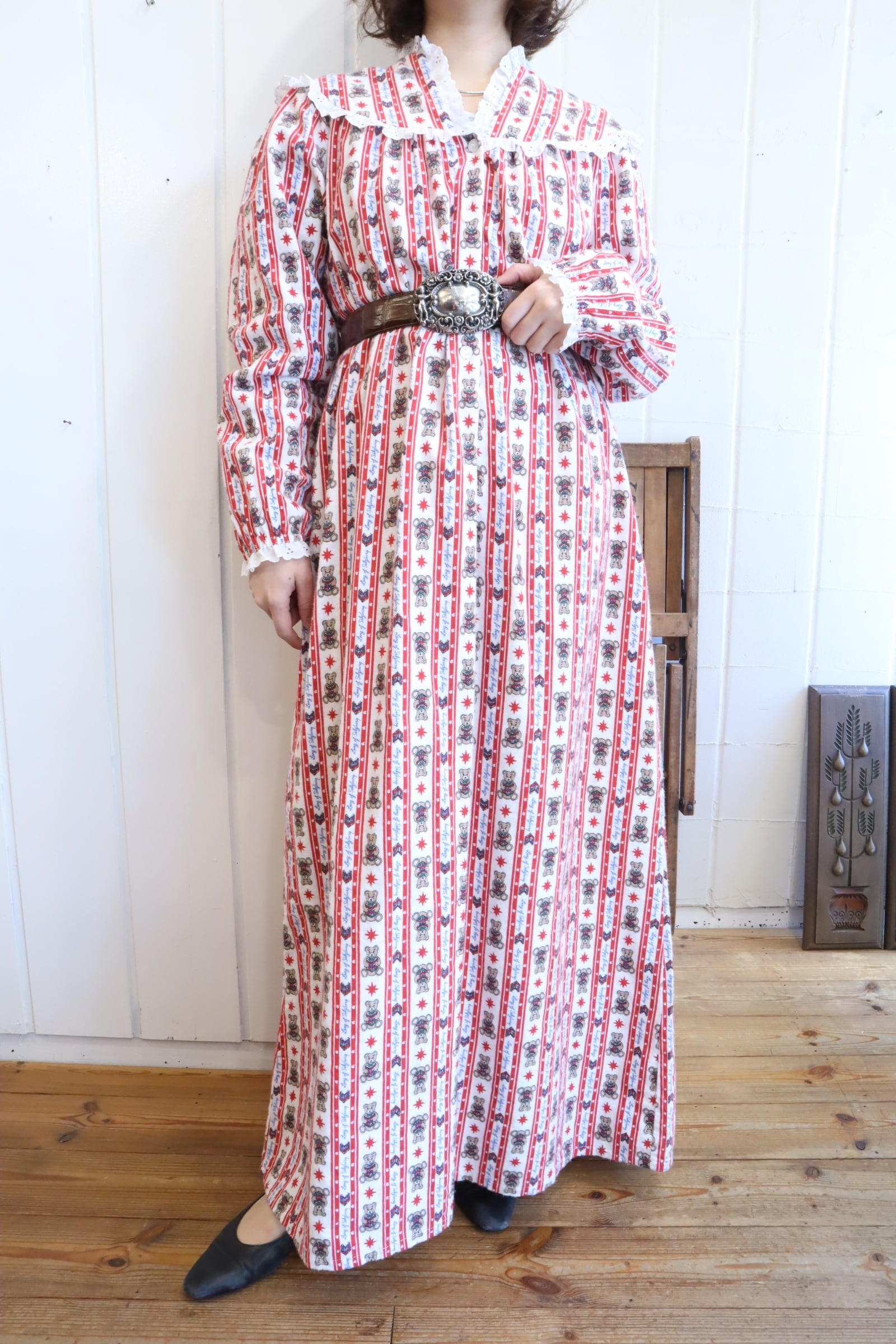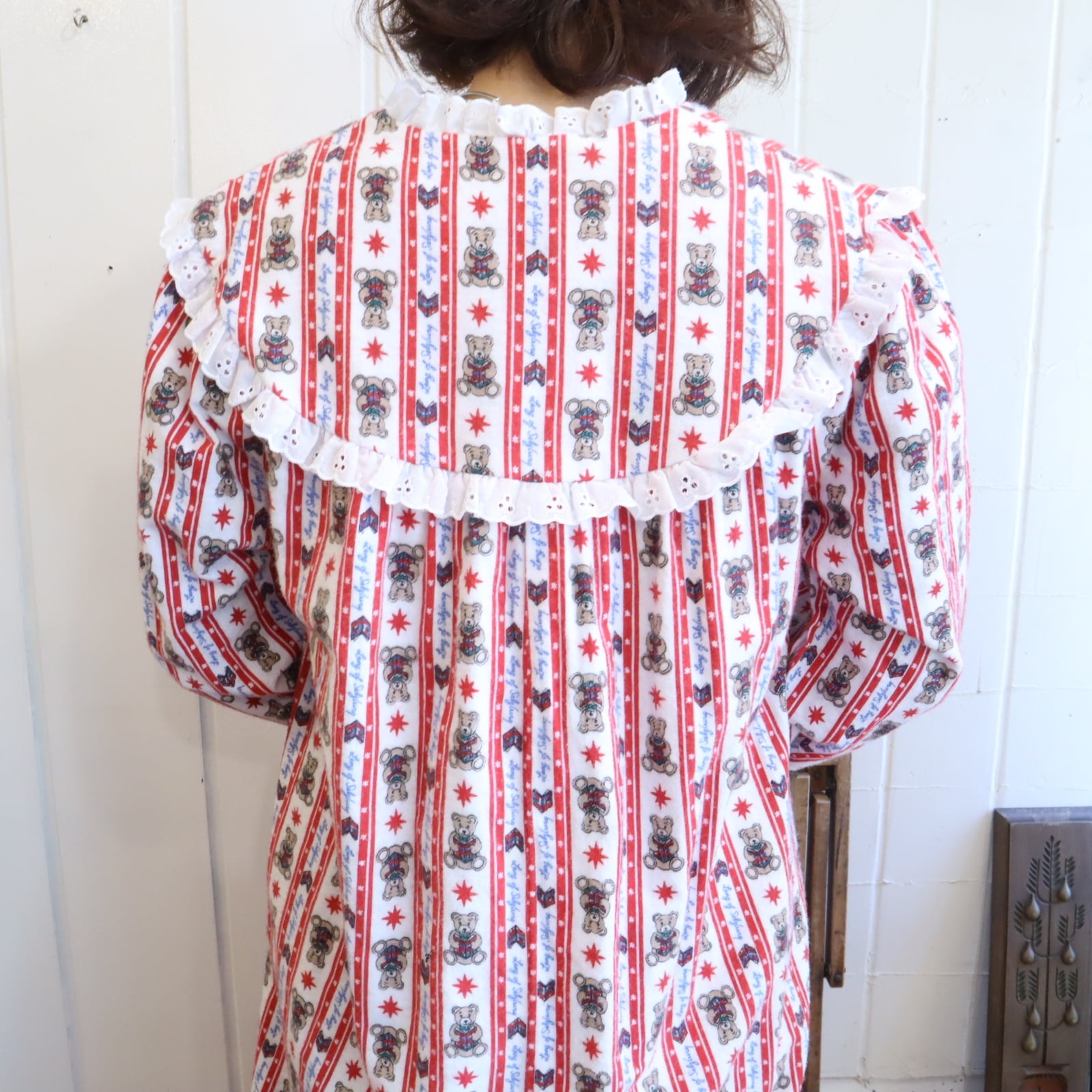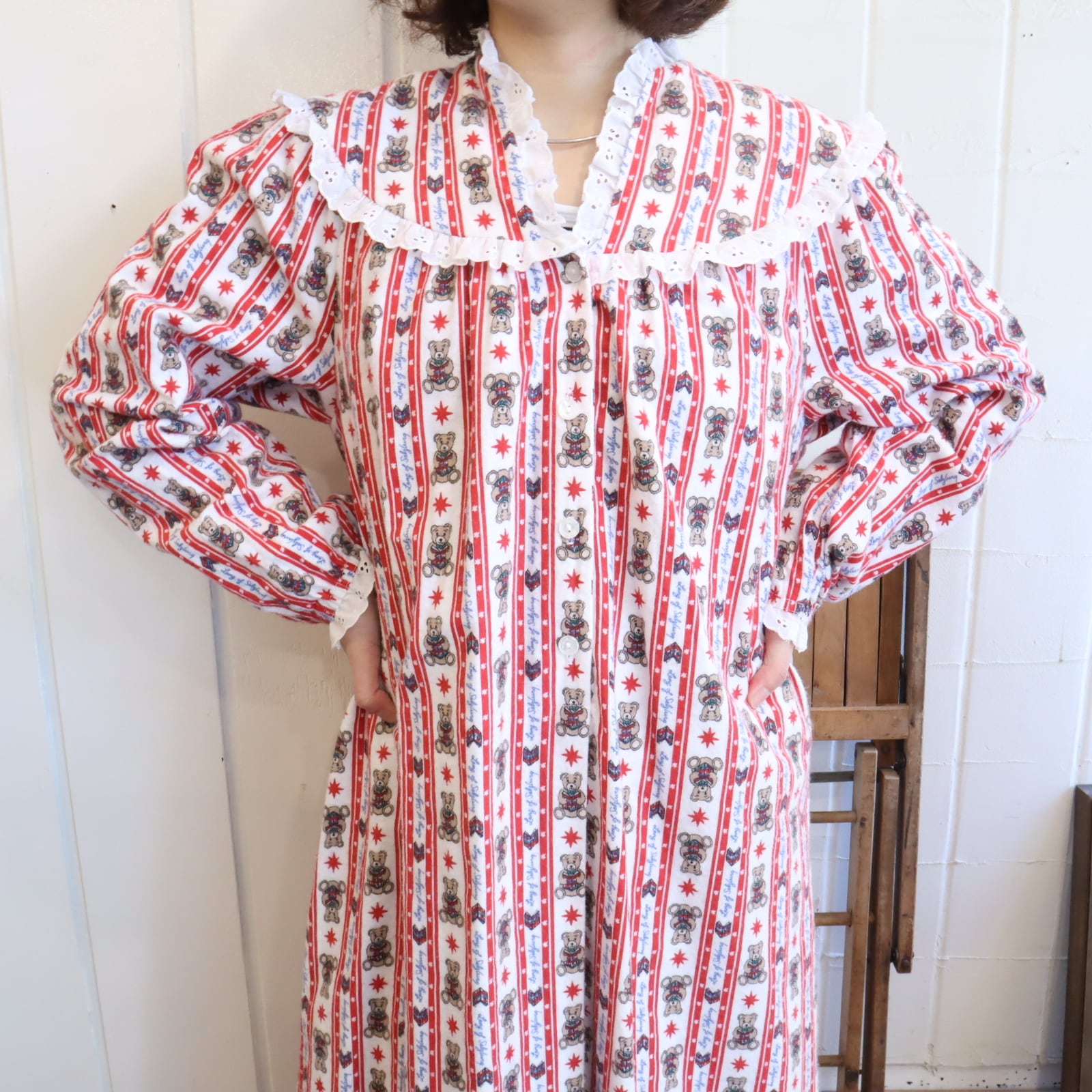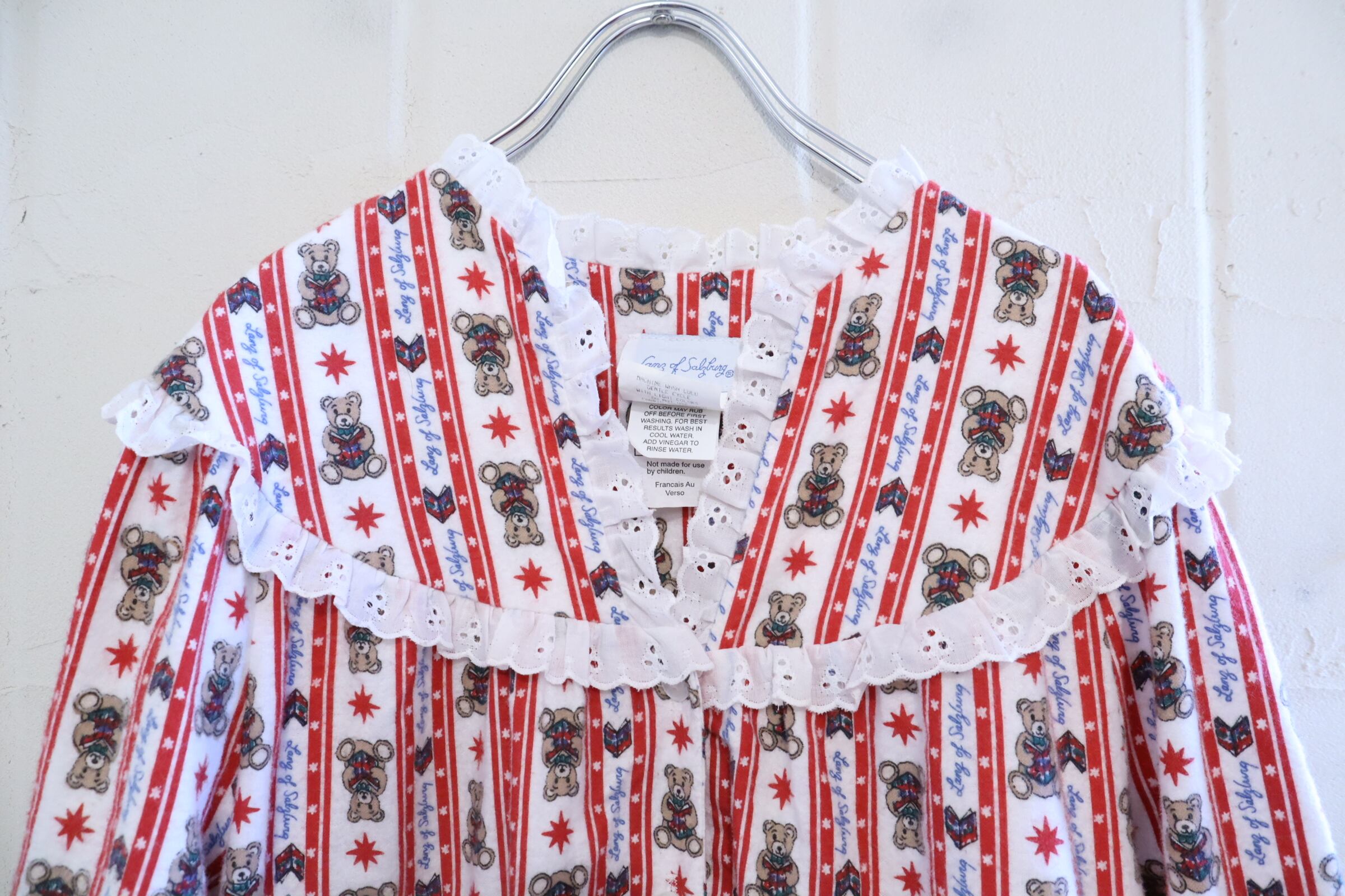 made in USA red×white bear pattern night dress [l-4911]