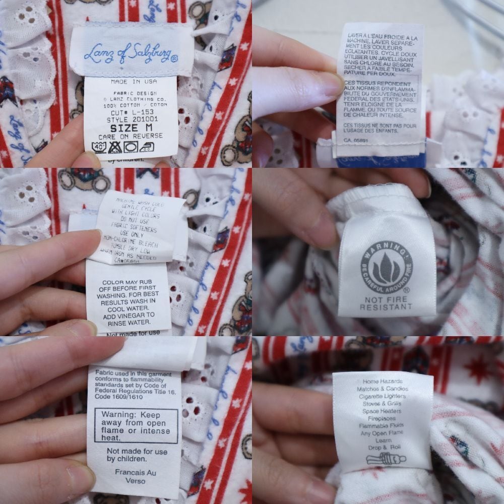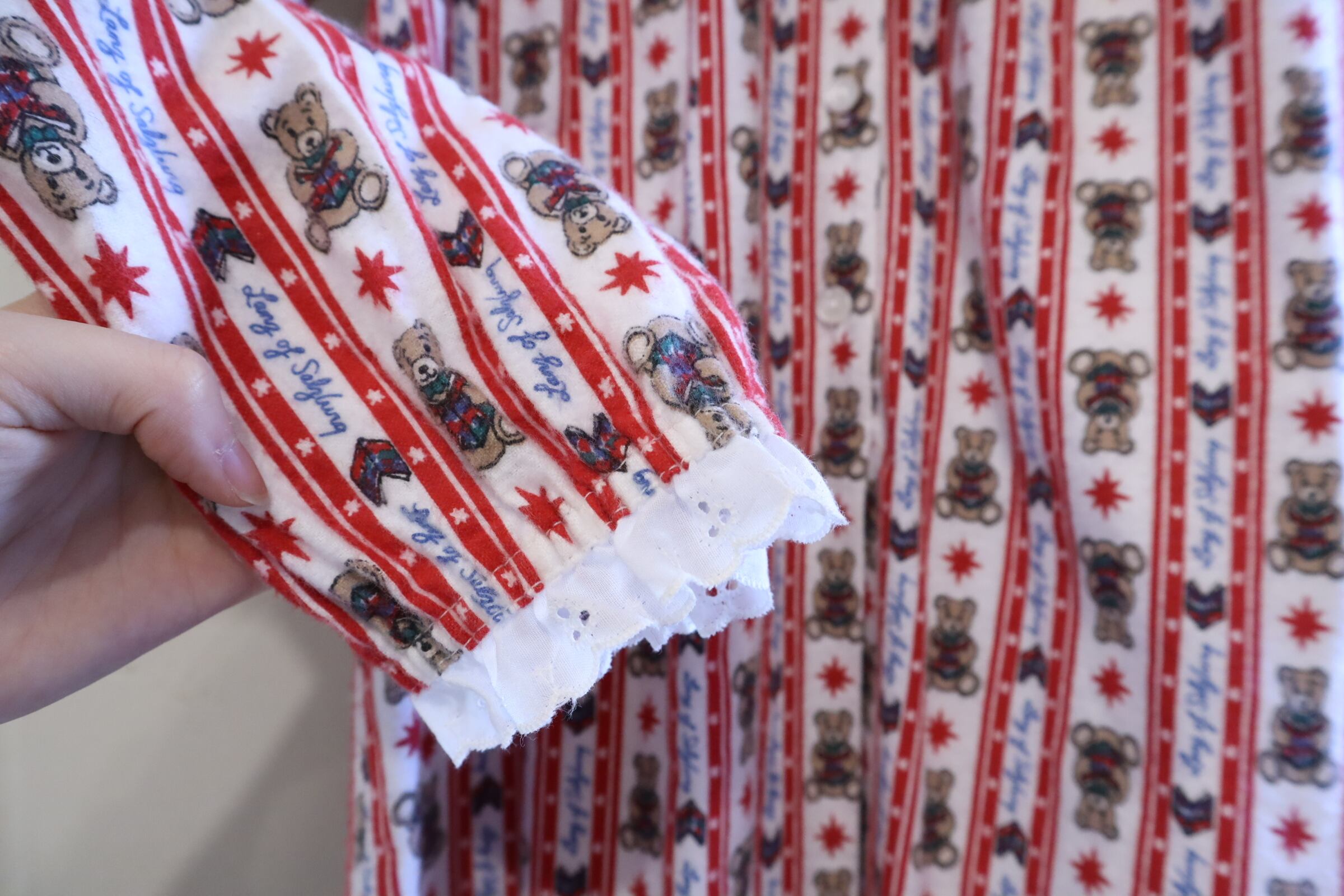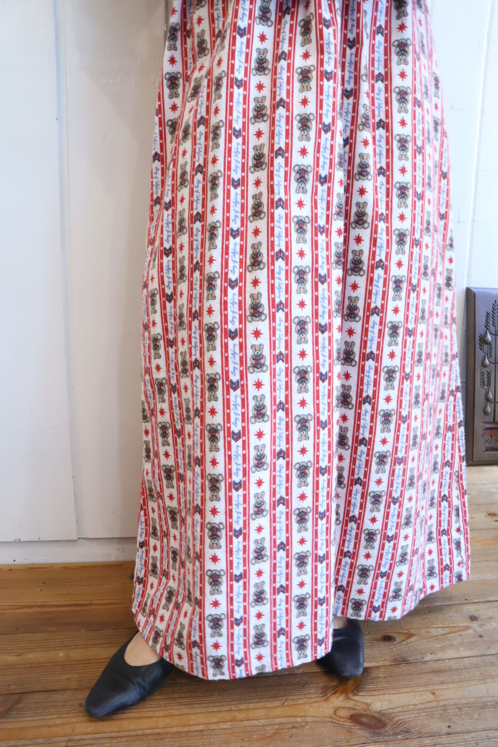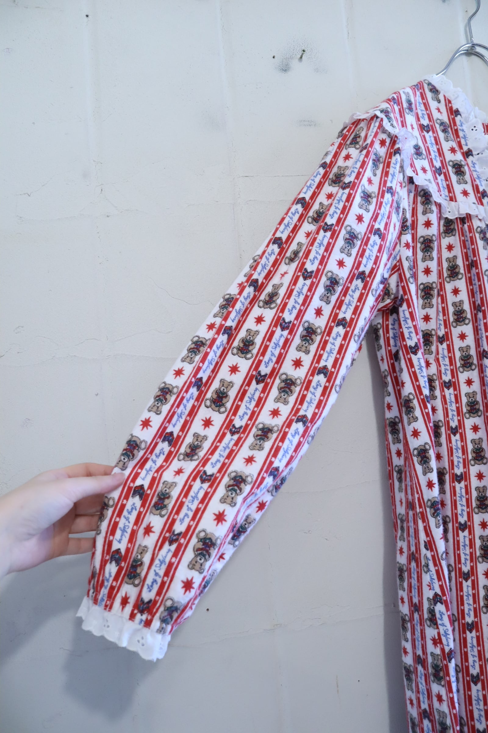 made in USA red×white bear pattern night dress [l-4911]