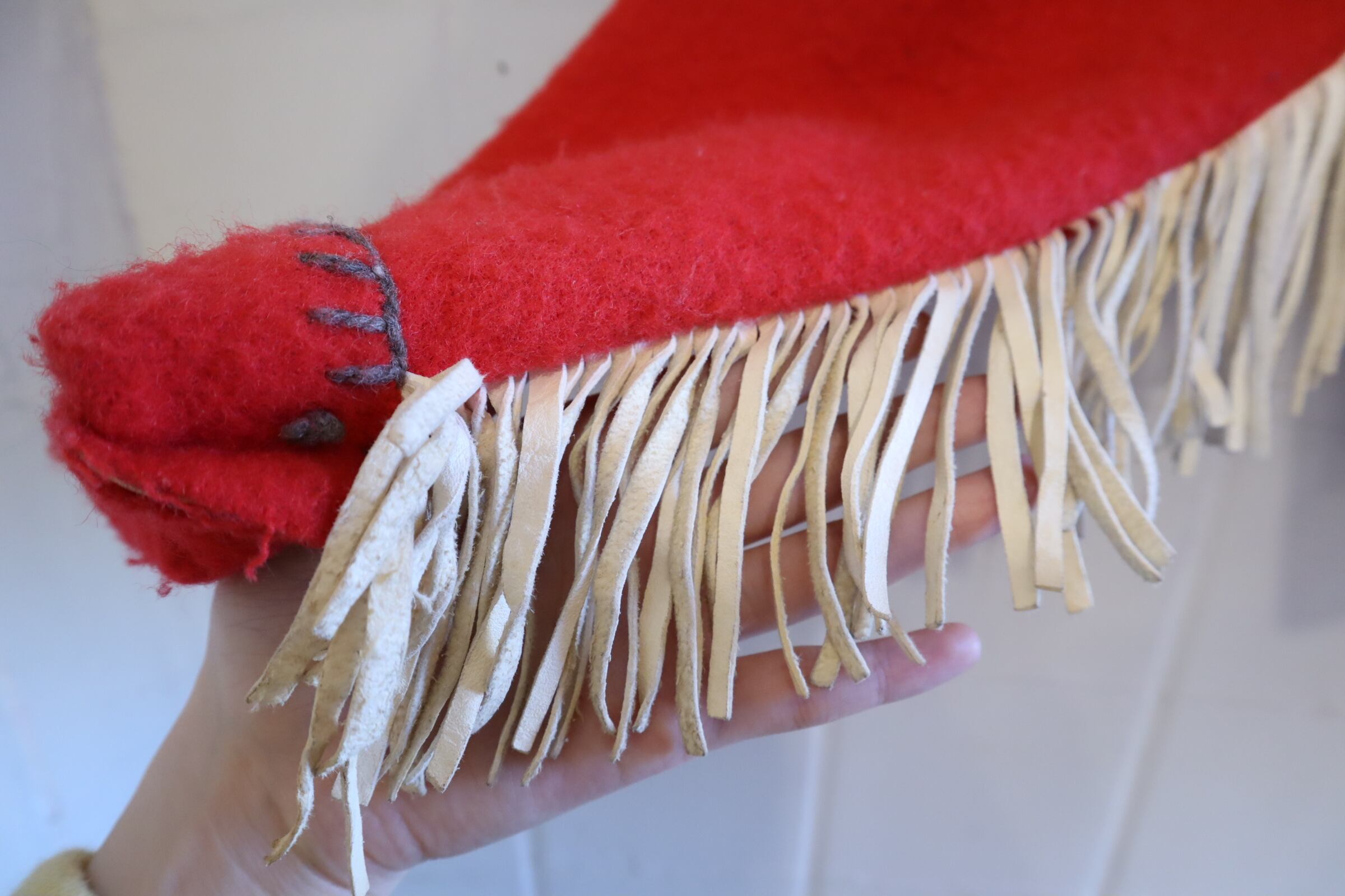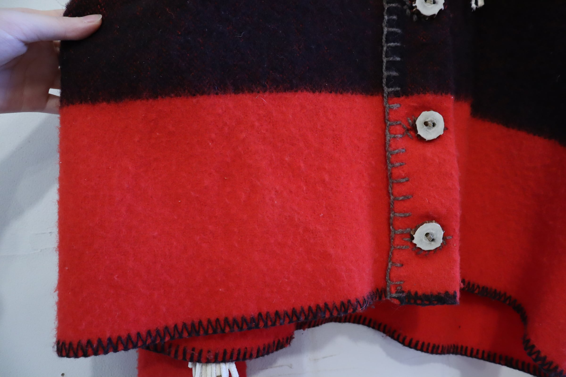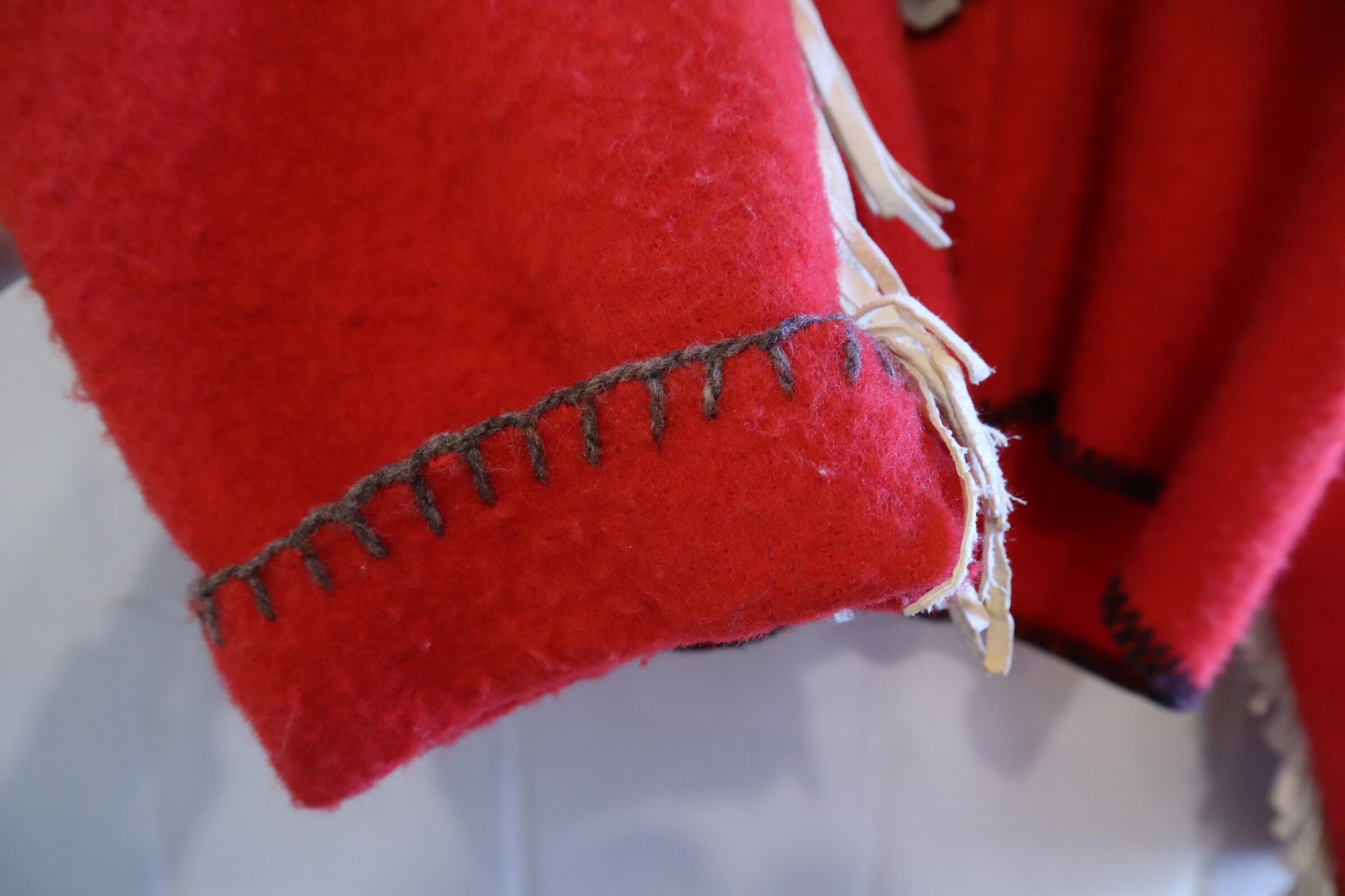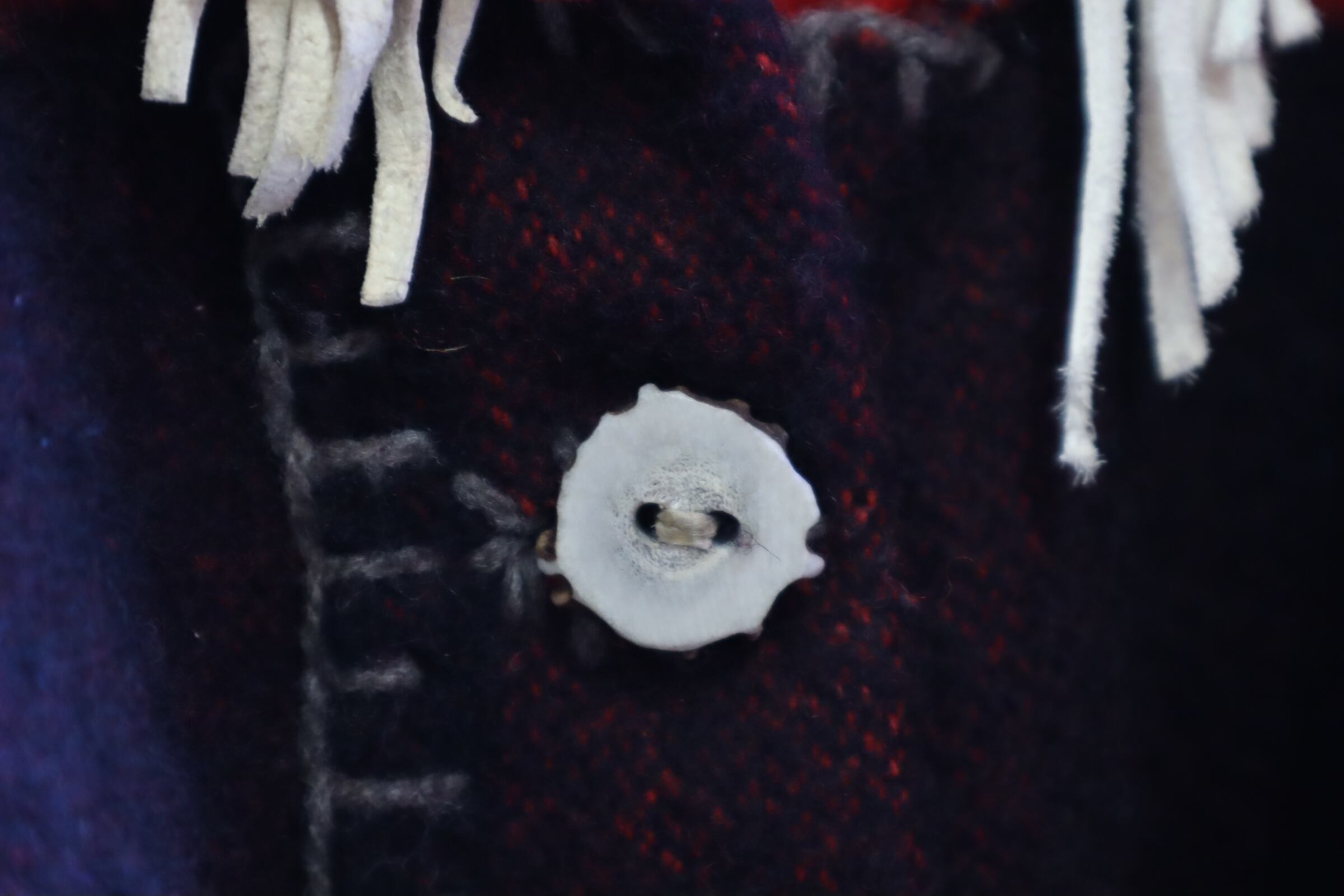片側の襟からフリンジが見えていなかったり...ちぐはぐなところも味があります。