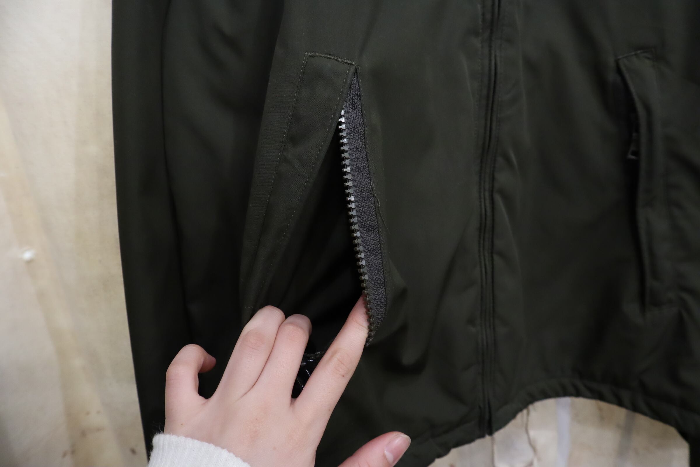 合わせやすいカラーのナイロンジャケットです。