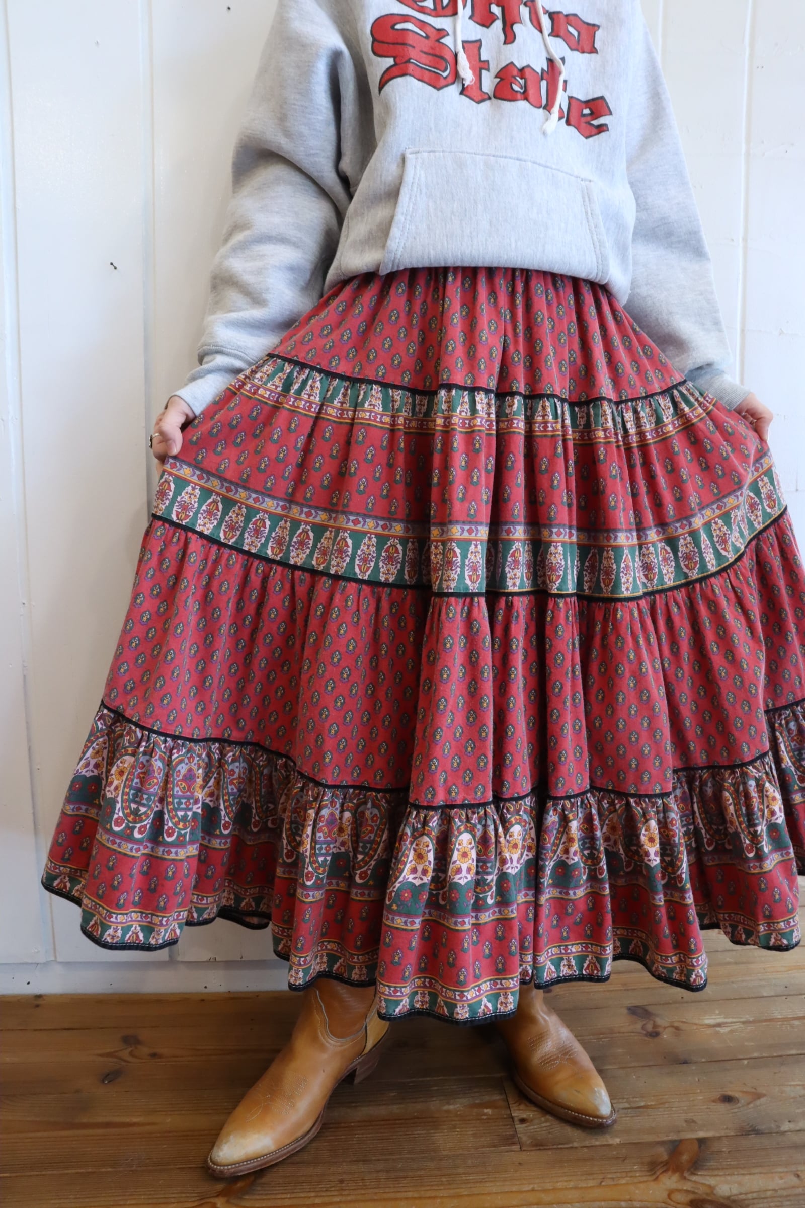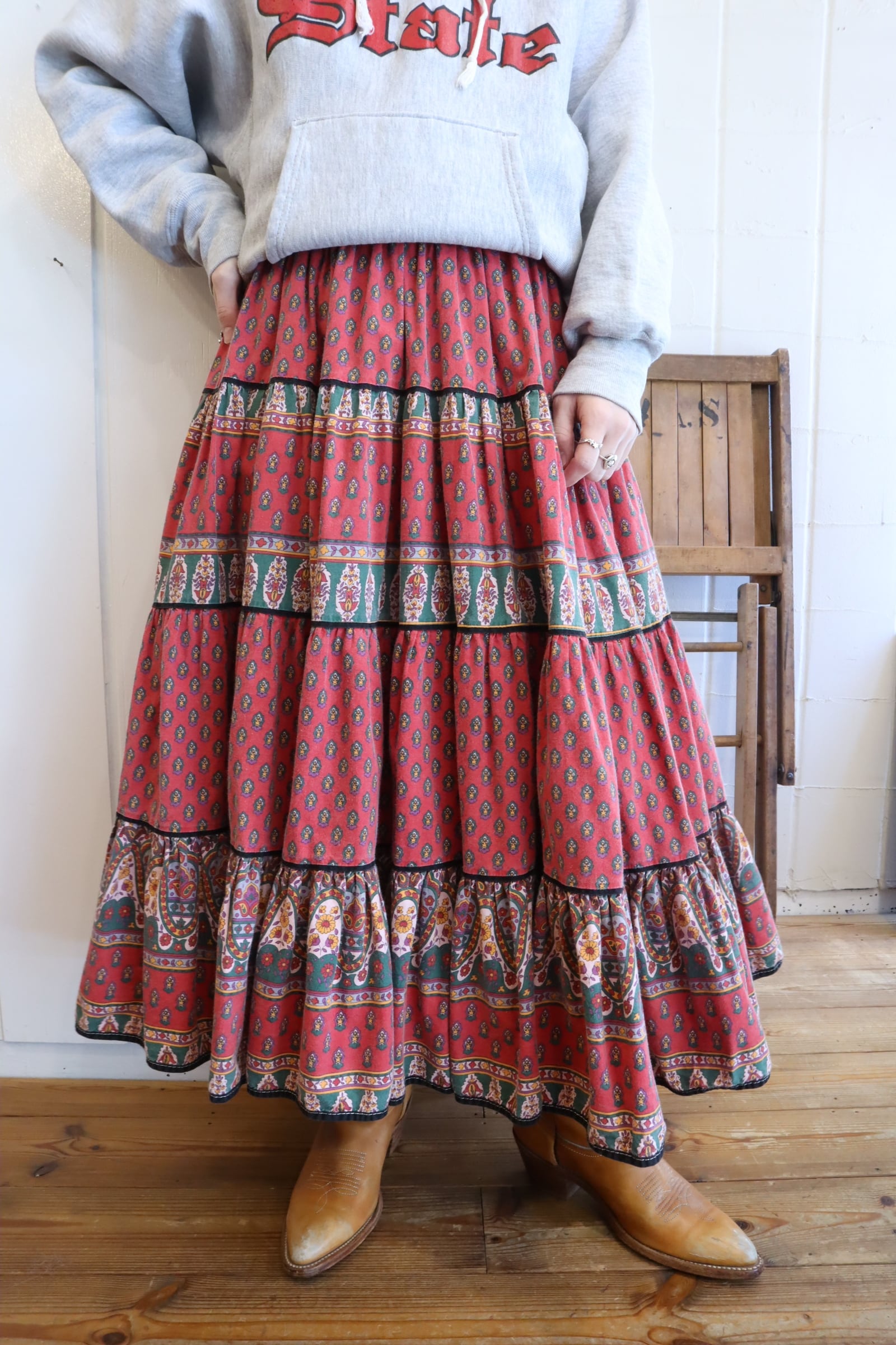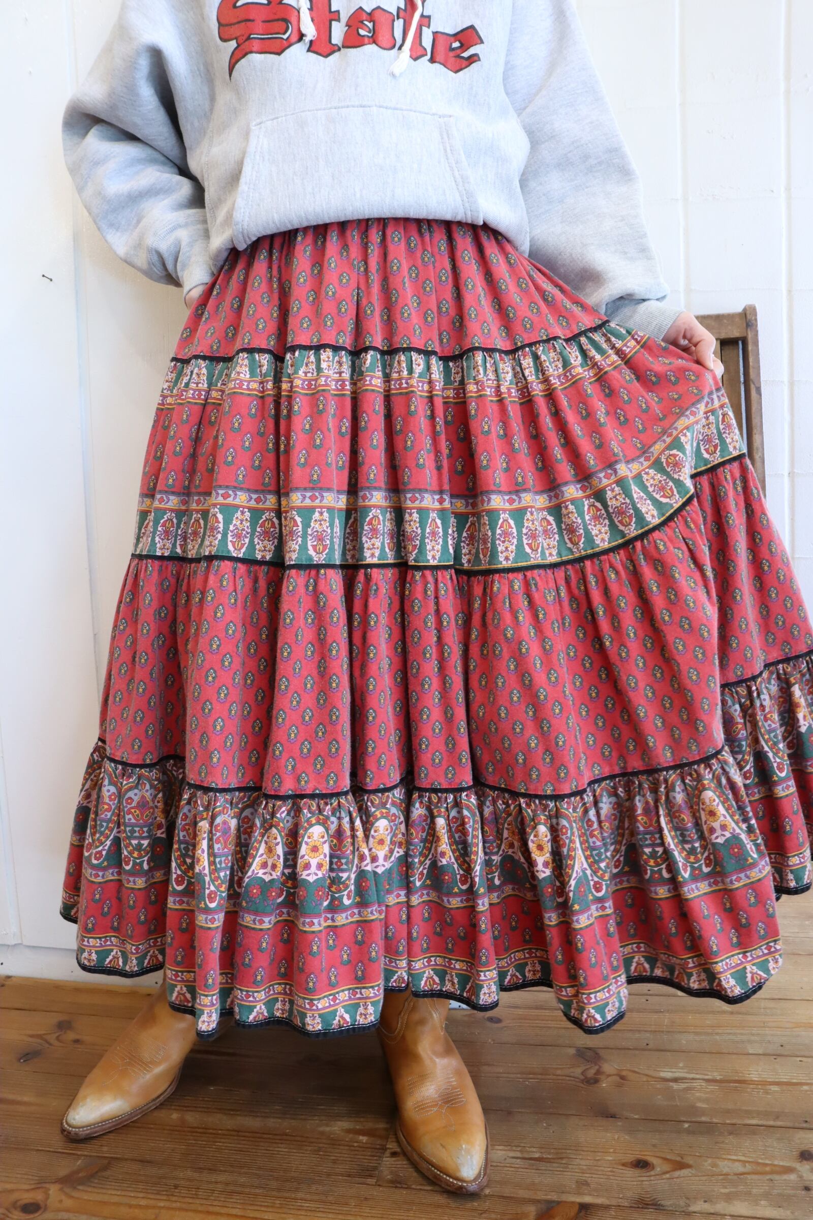 古着らしく退色した赤色が素敵なプロヴァンススカート。