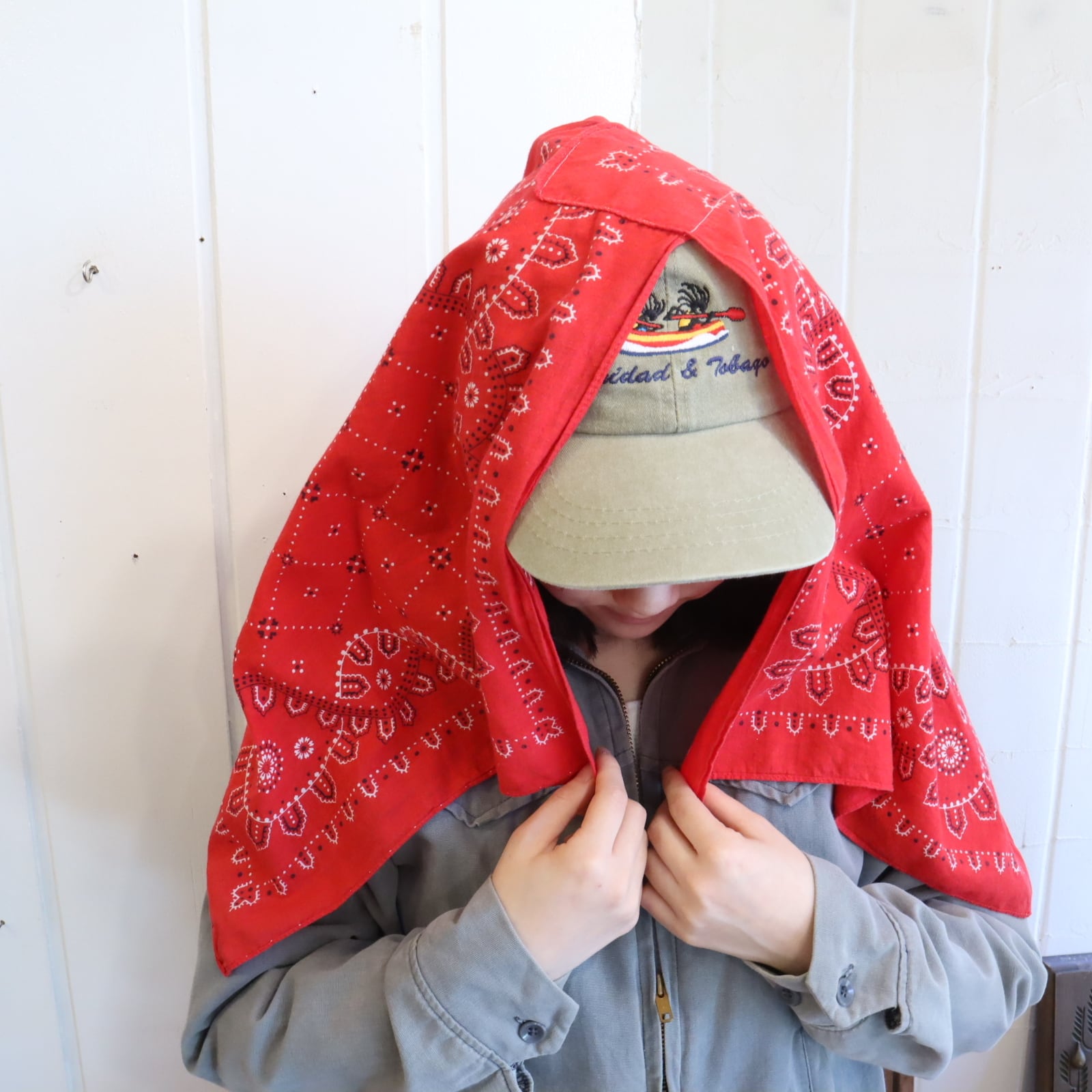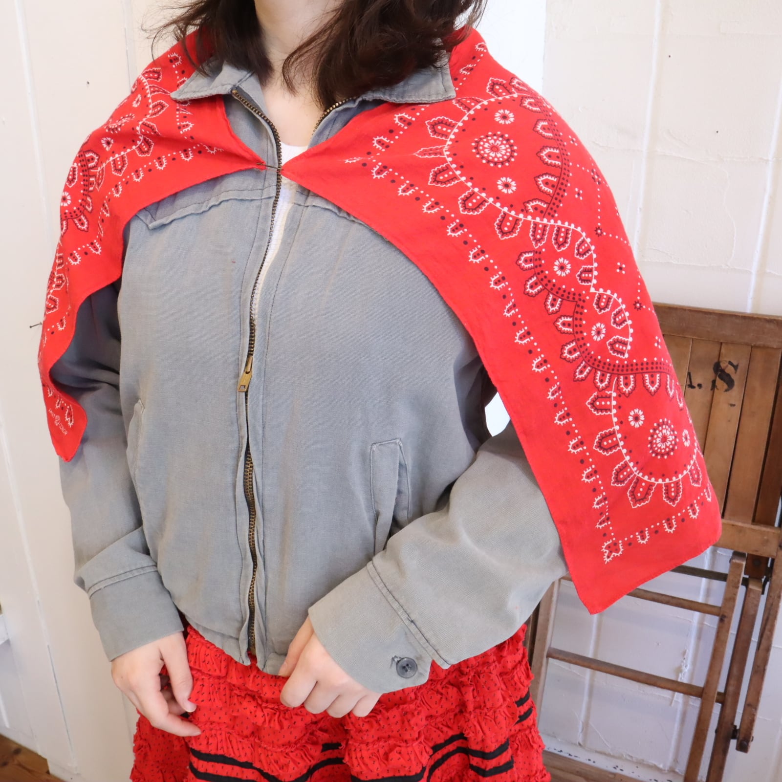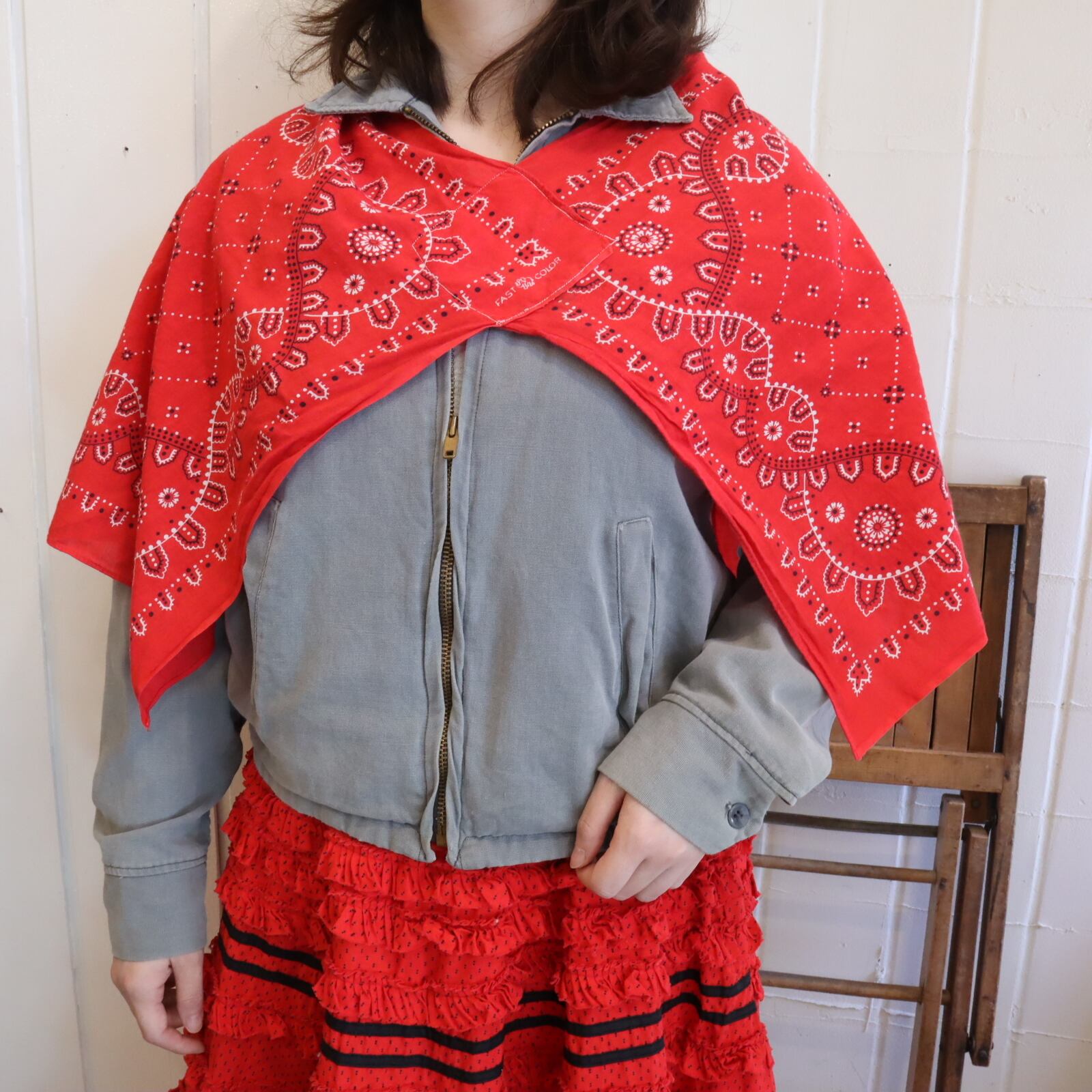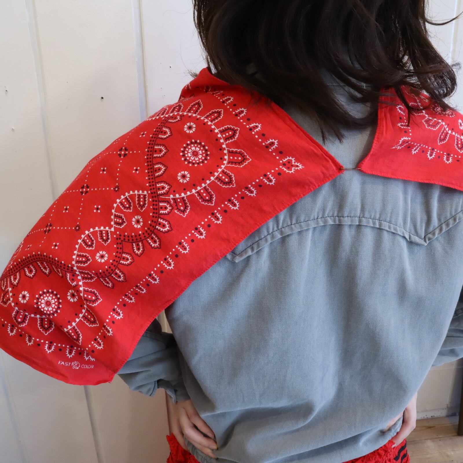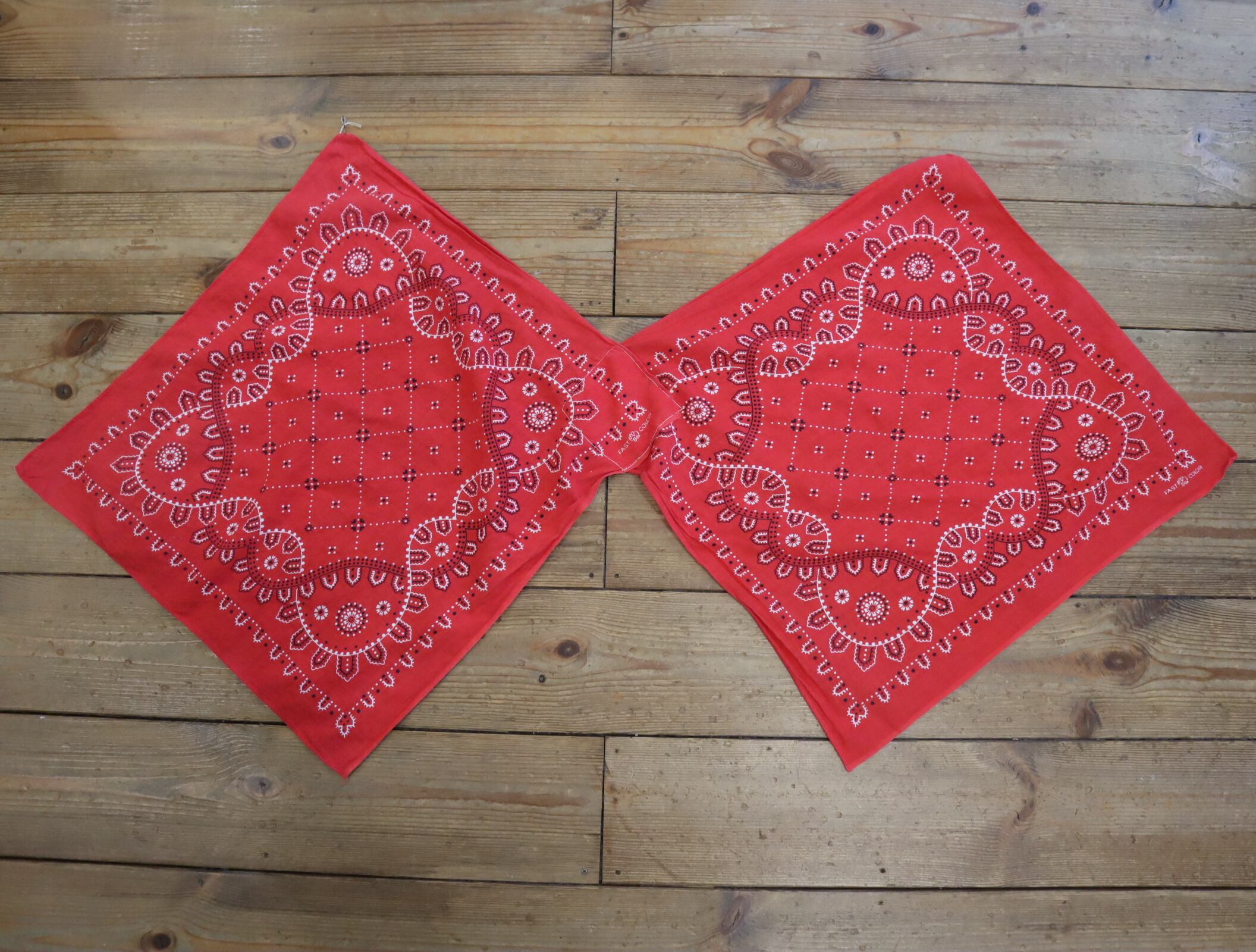 贅沢にバンダナが2枚使われたショールです。