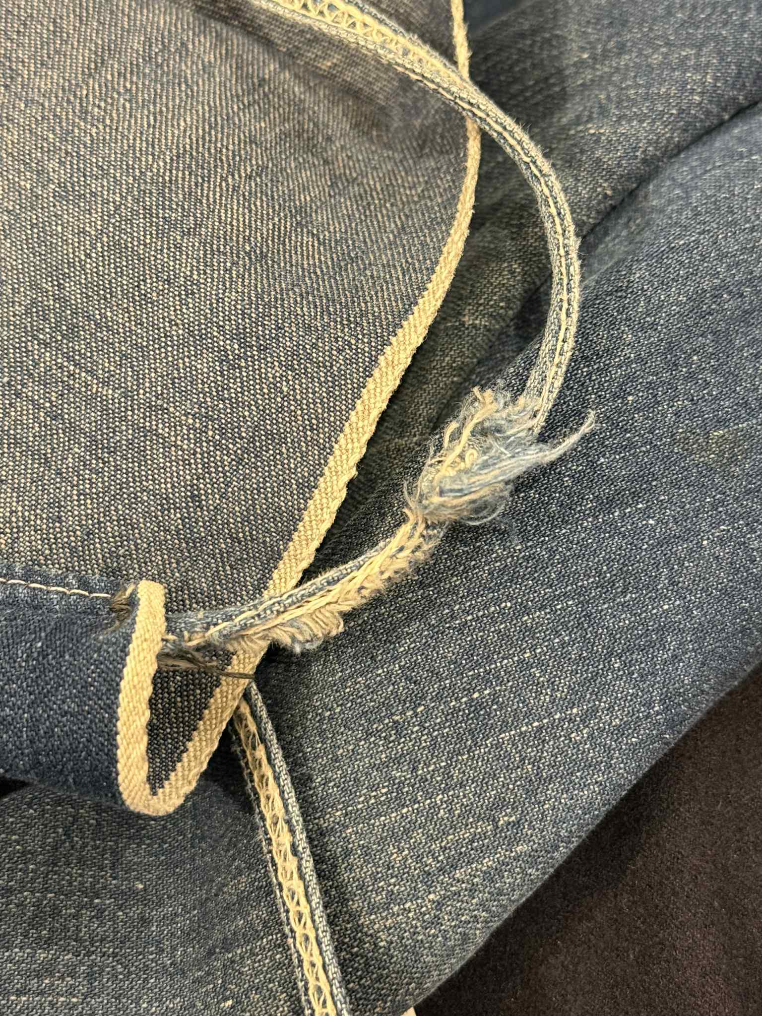 またウエスト紐の片側がちぎれていたものを結んだ形跡があり、左右で紐の長さが異なりますが着用に問題ございません。
