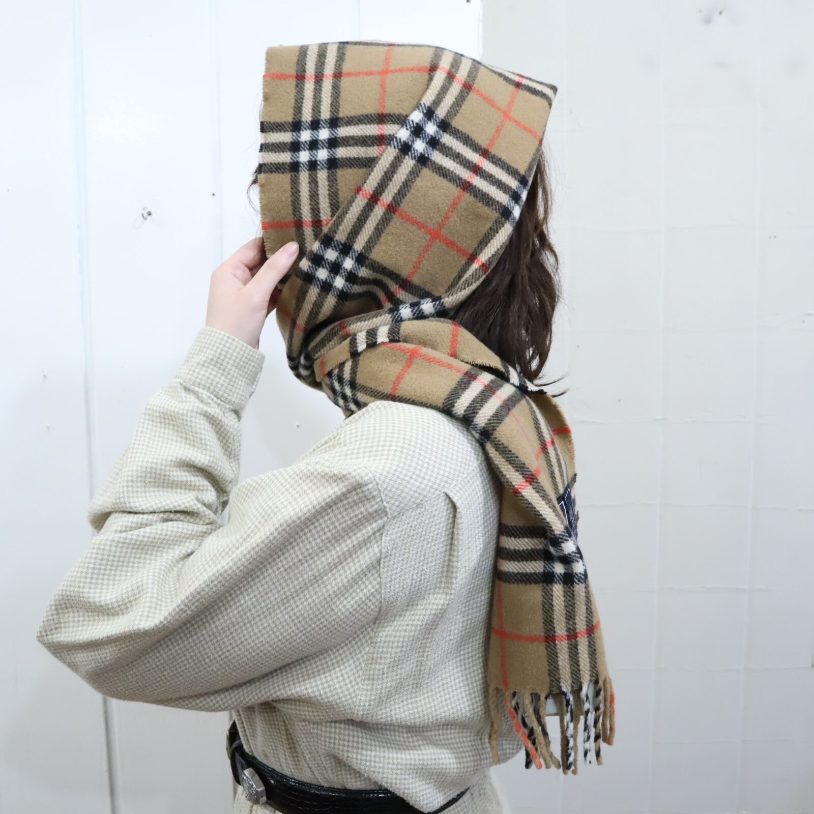 バーバリーチェックが可愛いマフラーです。