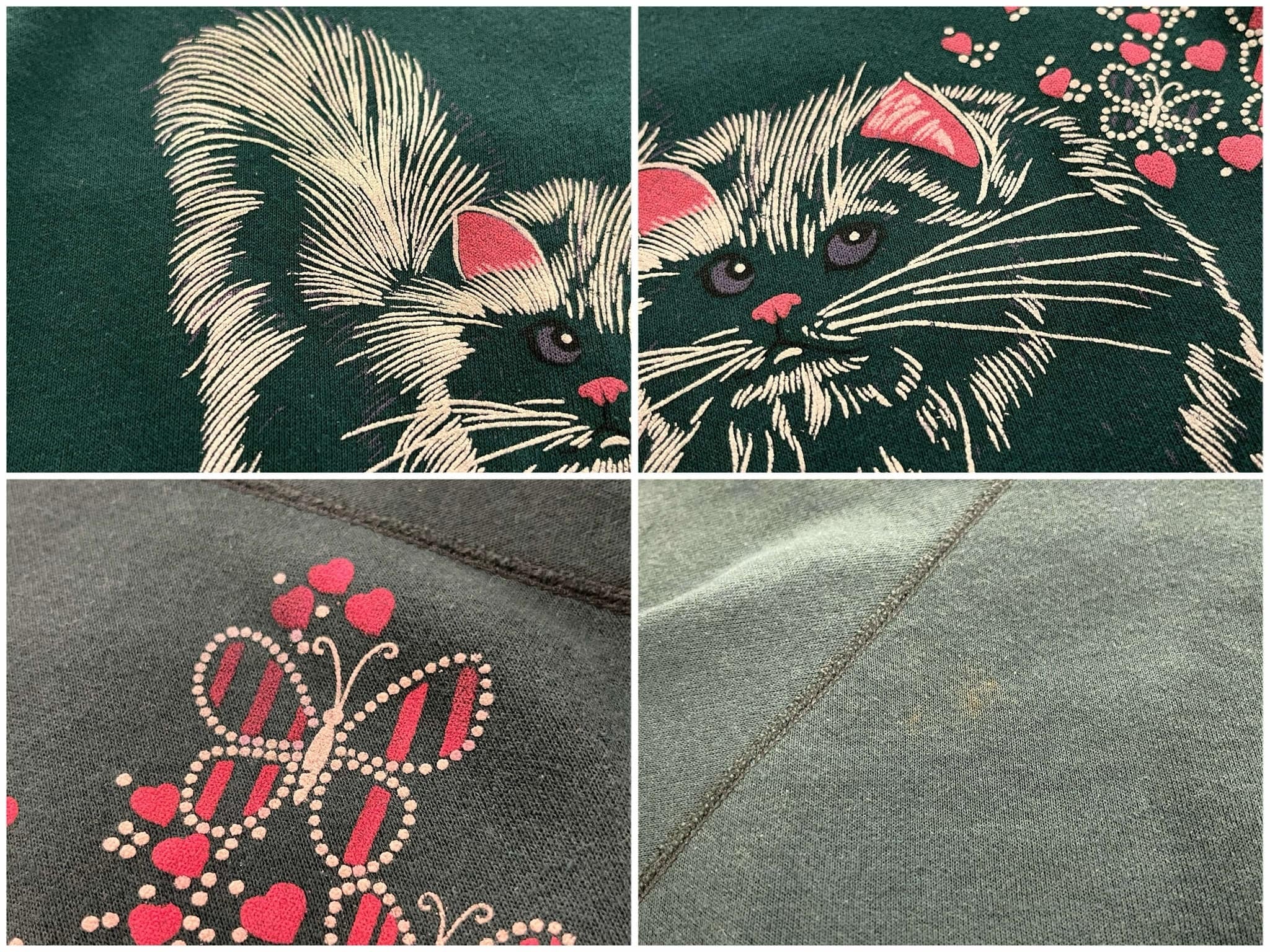 プリント部分に若干ピンクの色移り、若干剥げ、後ろ身頃に一部うっすらとシミ汚れがございますが、あまり気にならない程度かと思います。