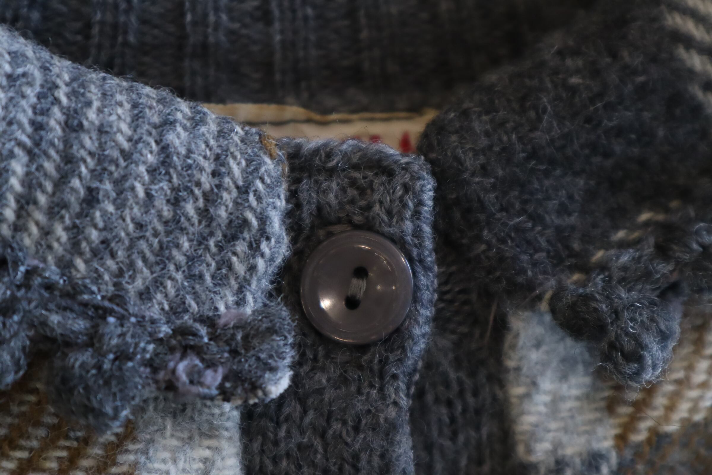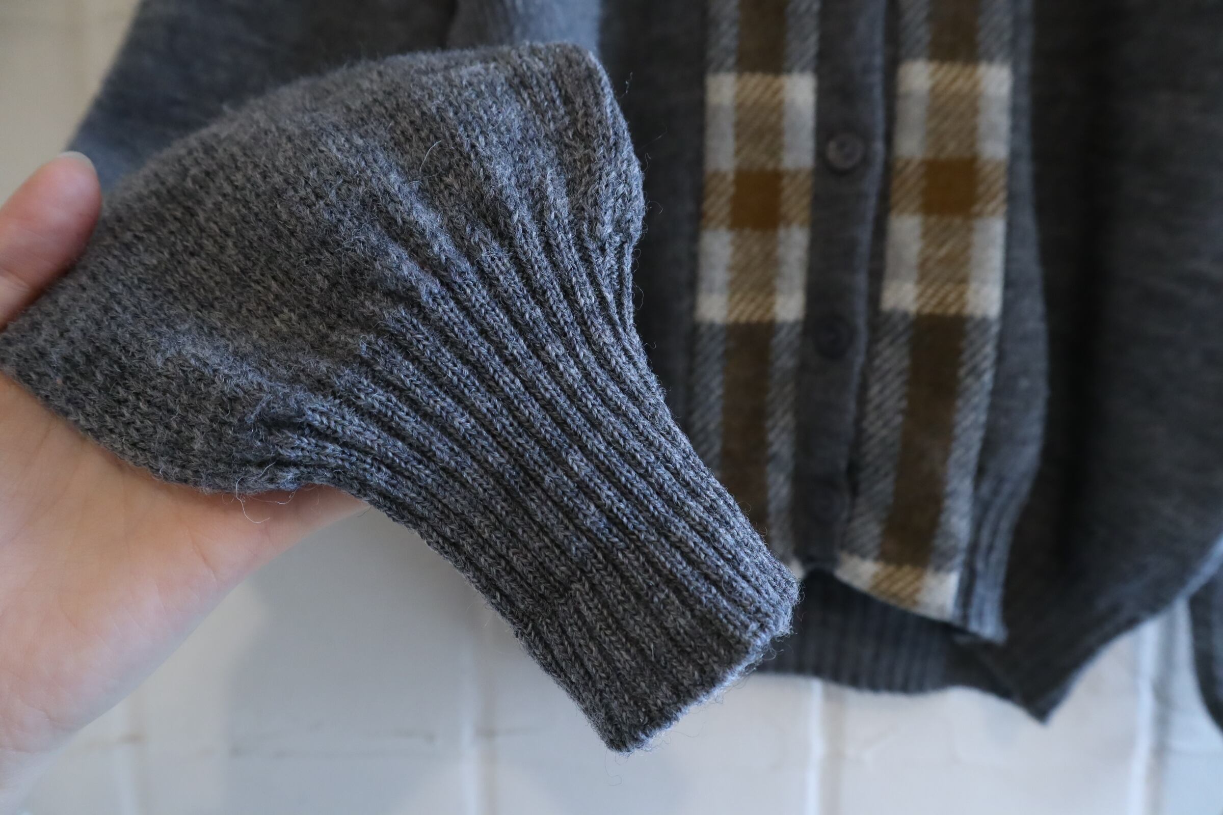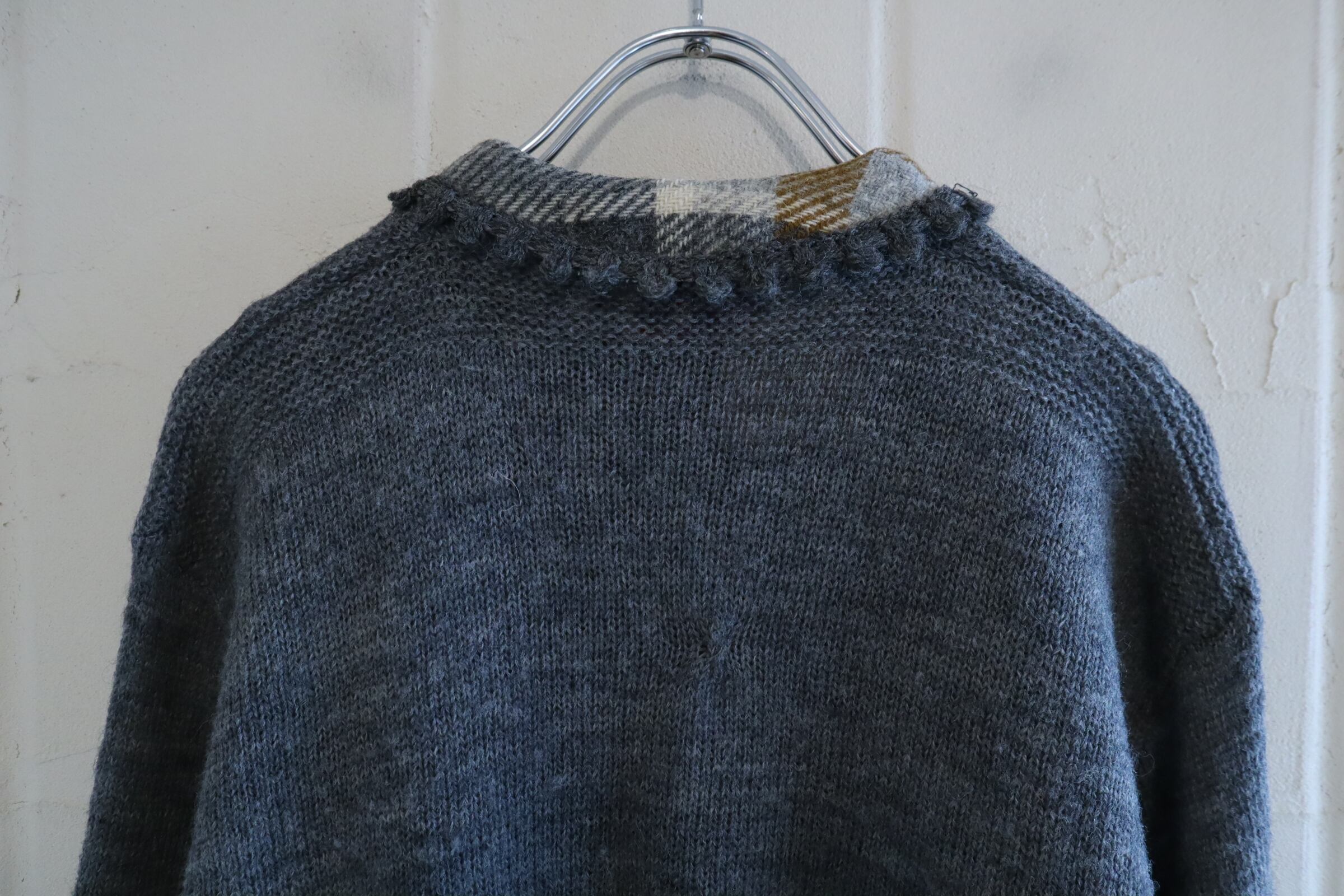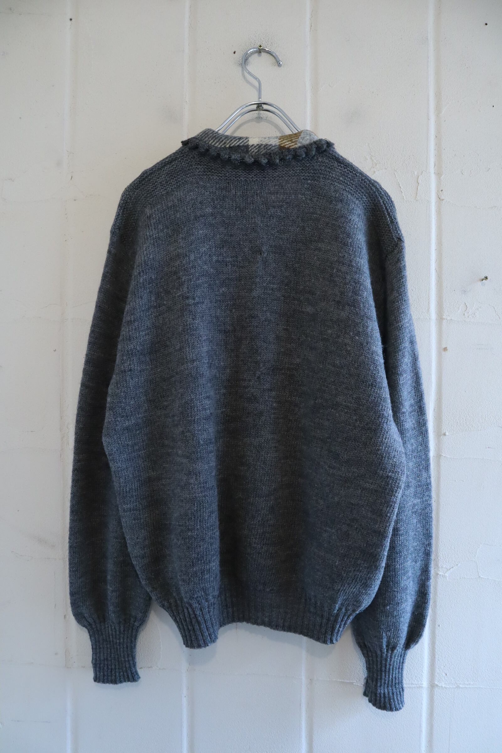 50s-60s gray×brown plain & plaid knit cardigan [l-4937]
