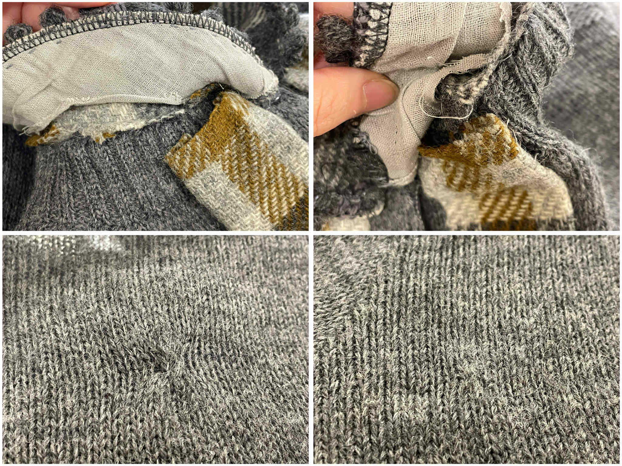 後で足されたような襟は簡単に縫われており、裏側にホツレが見受けられますが、表からは見えない為あまり気にならないかと思います。