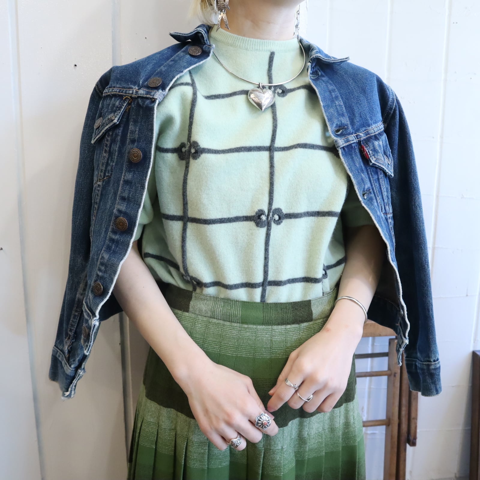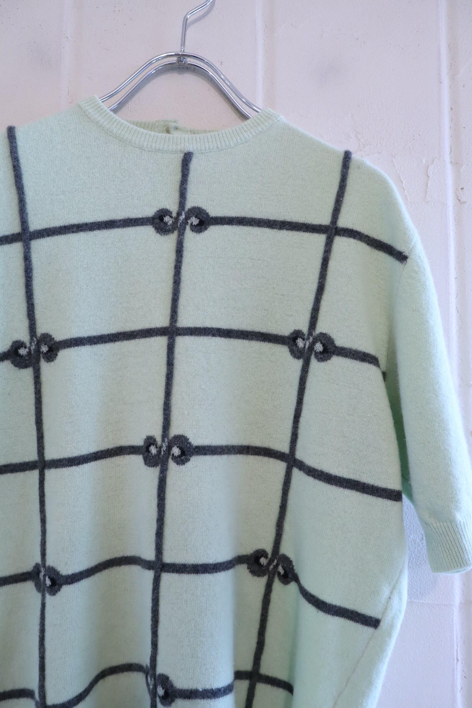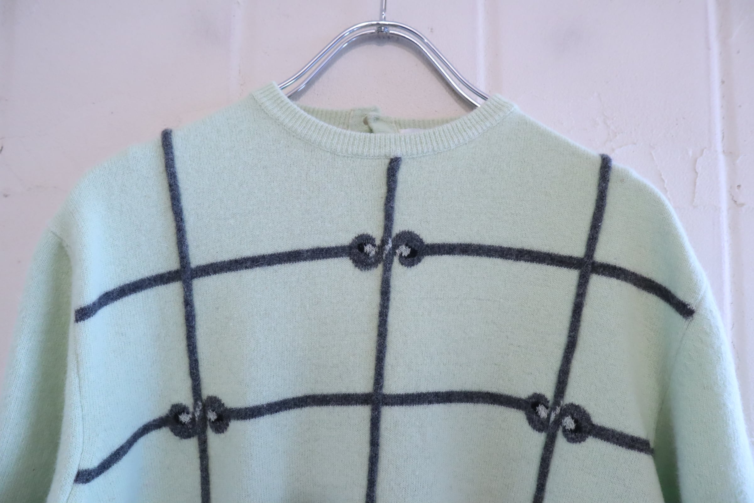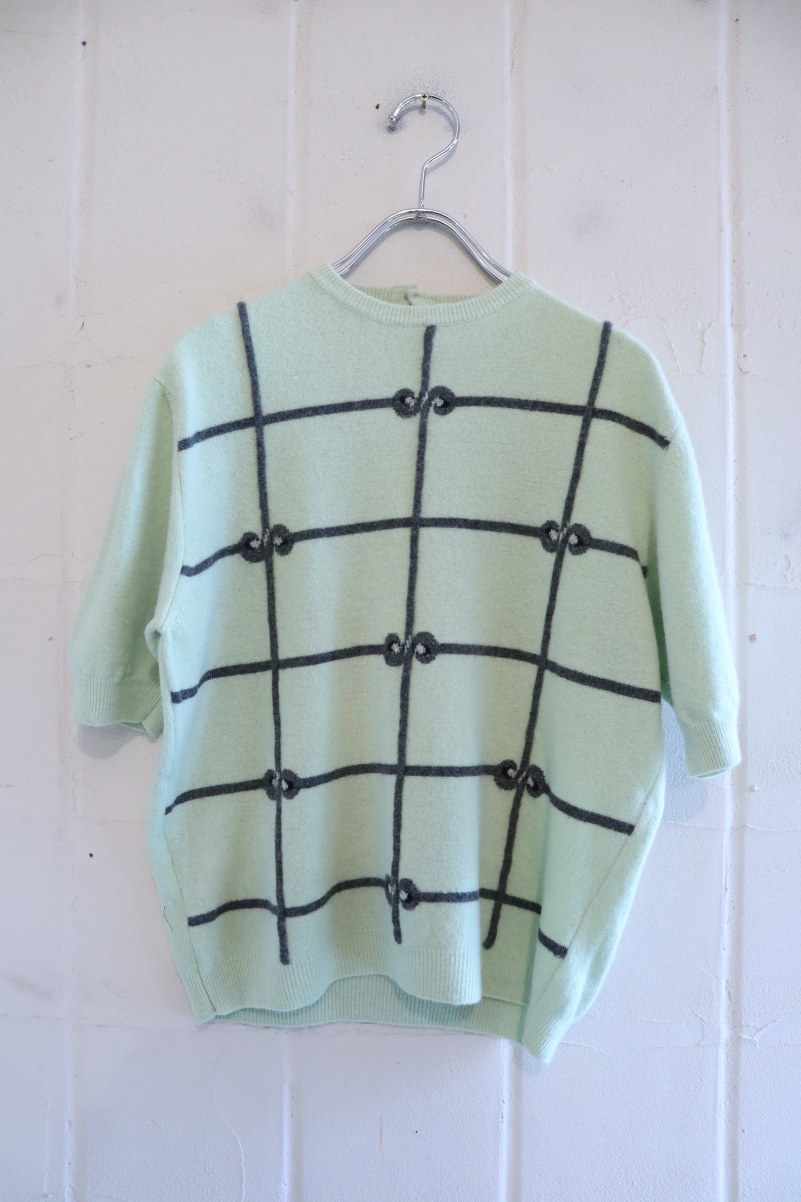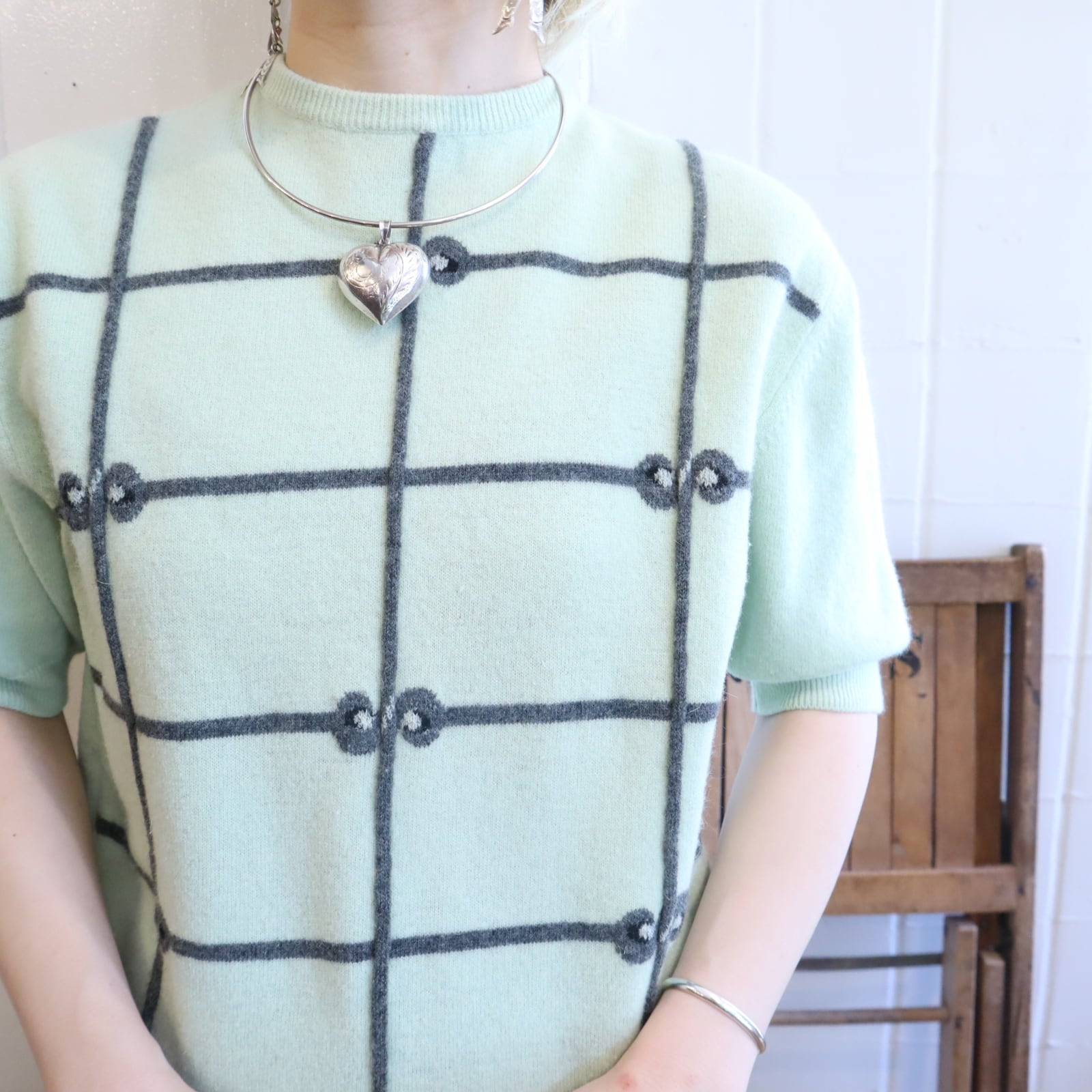 50s-60s lightmintgreen×gray ribbon motif knit pullover [l-4940]