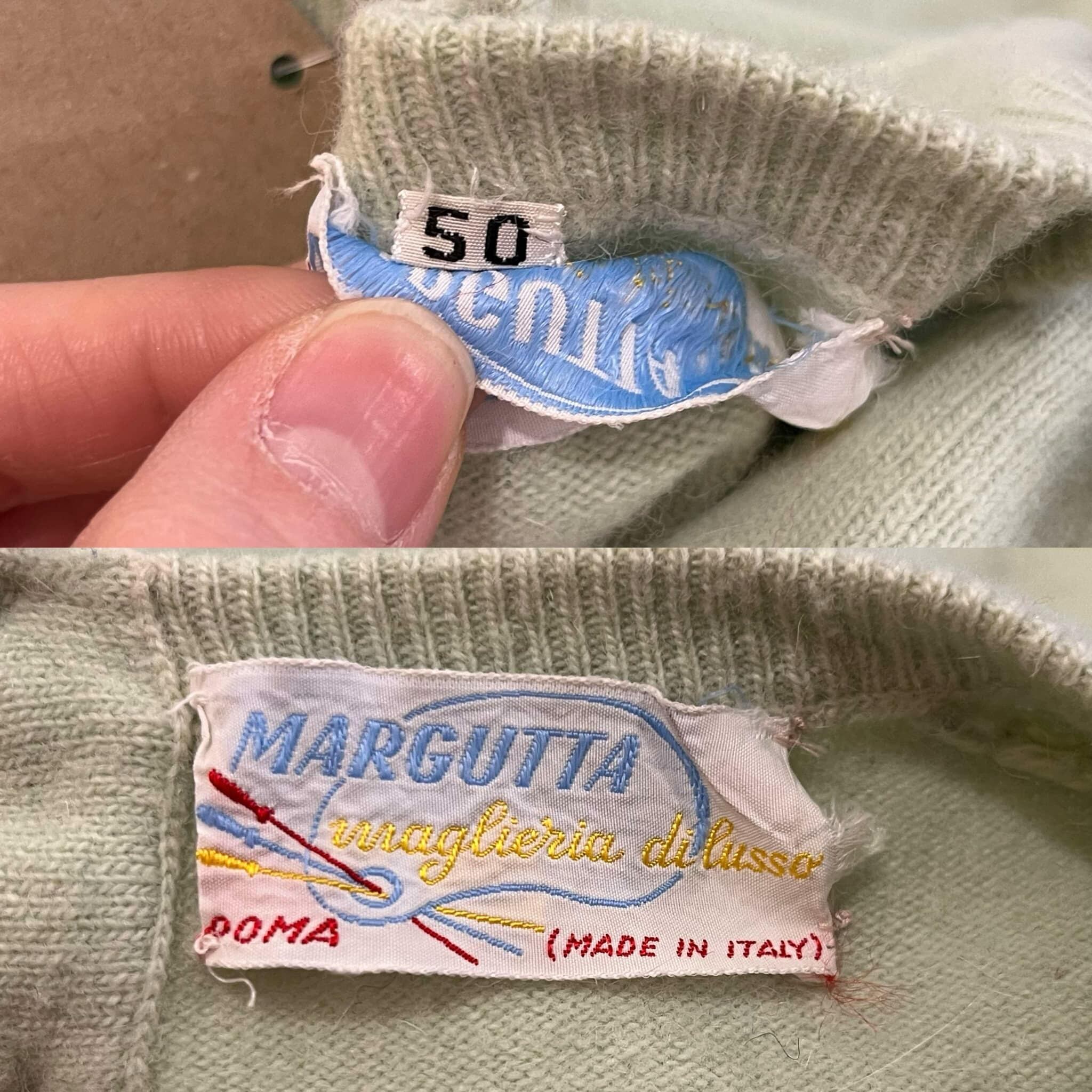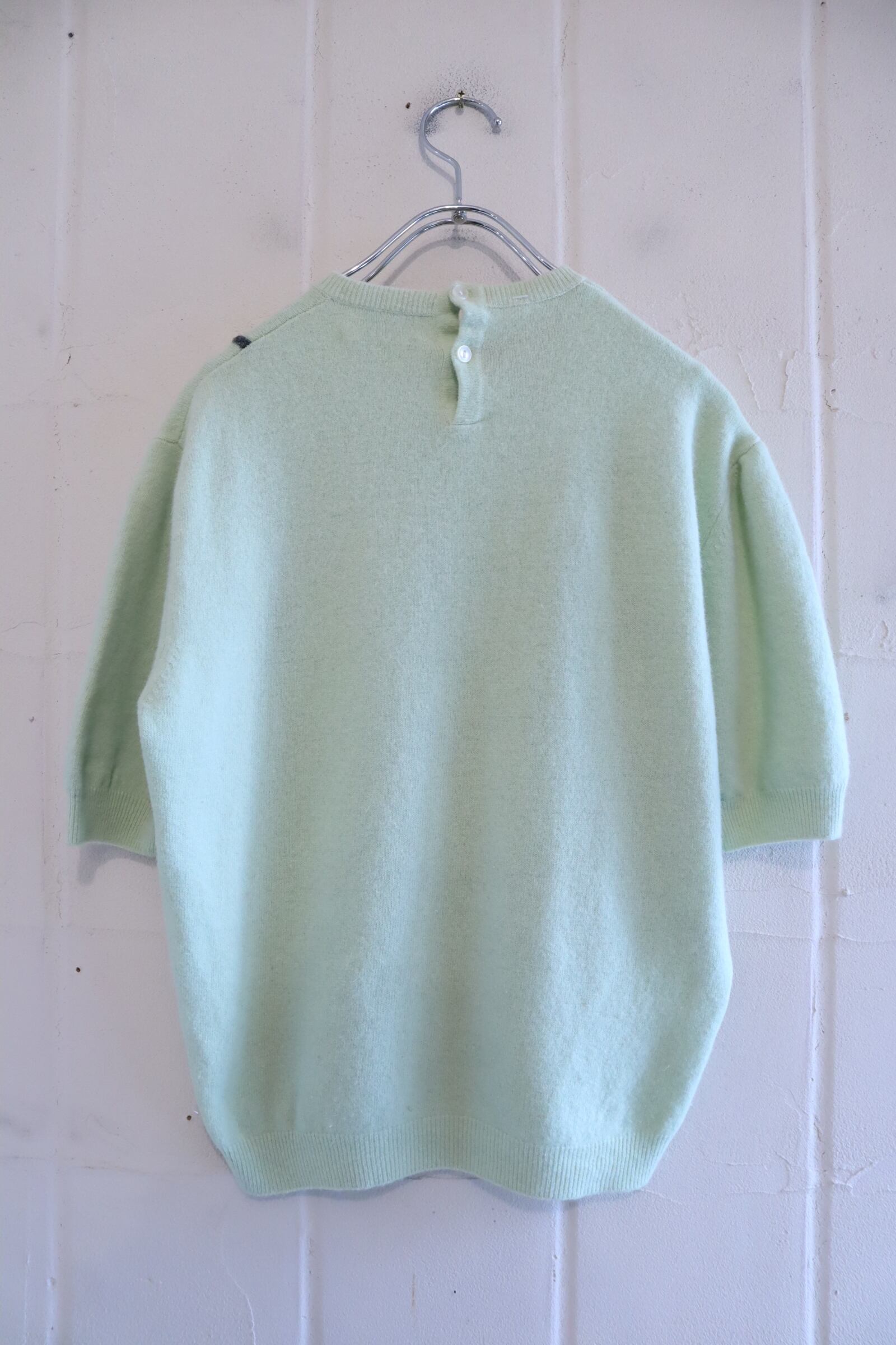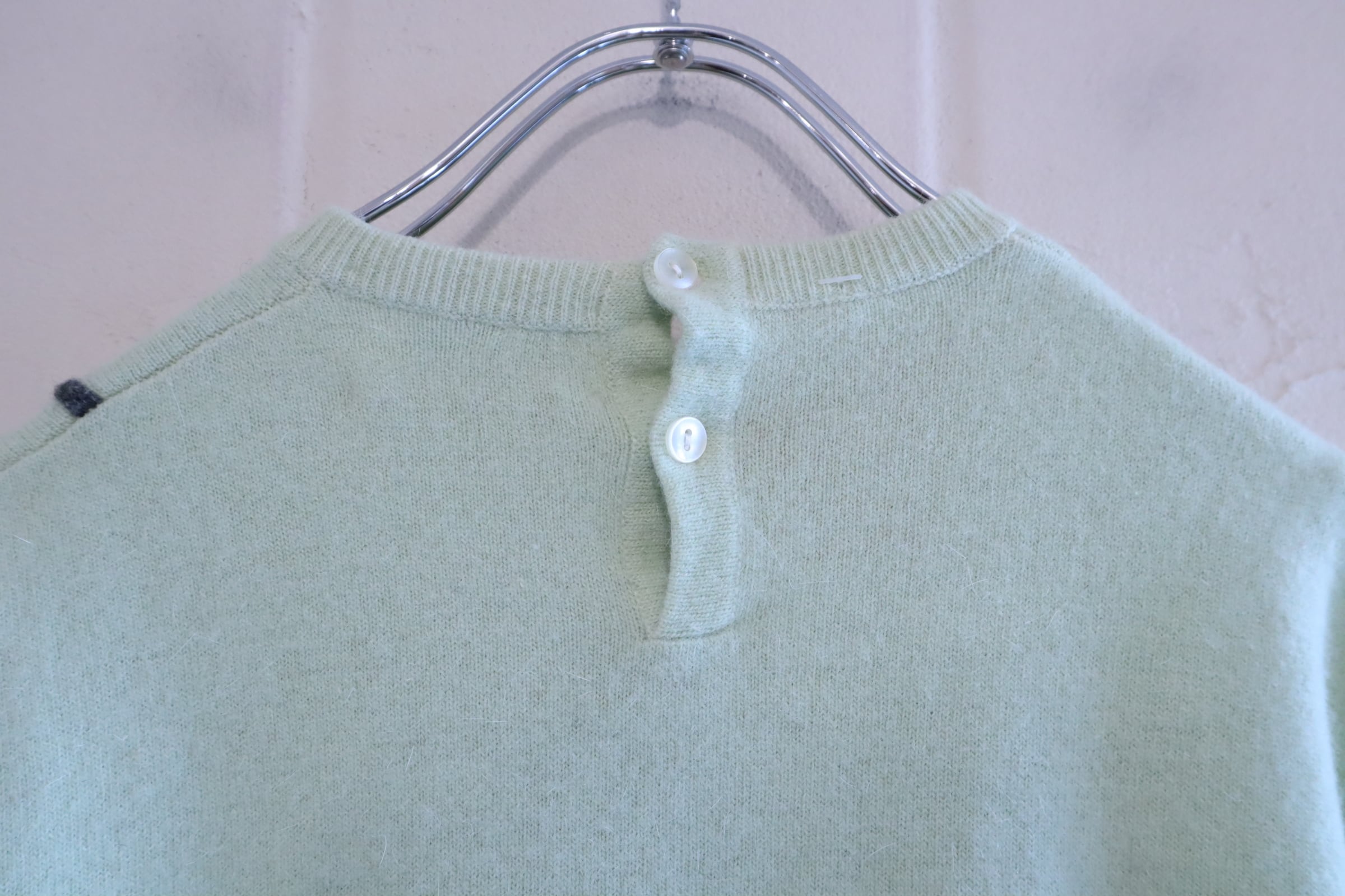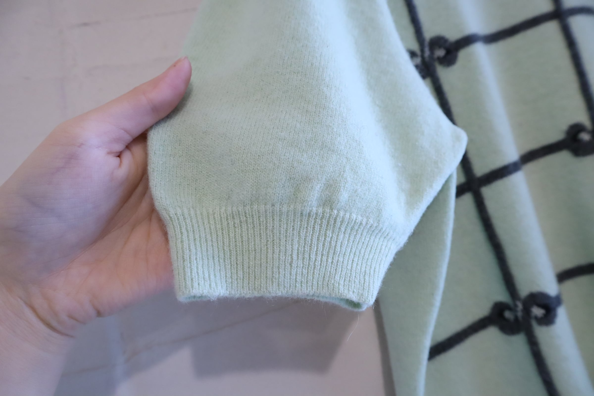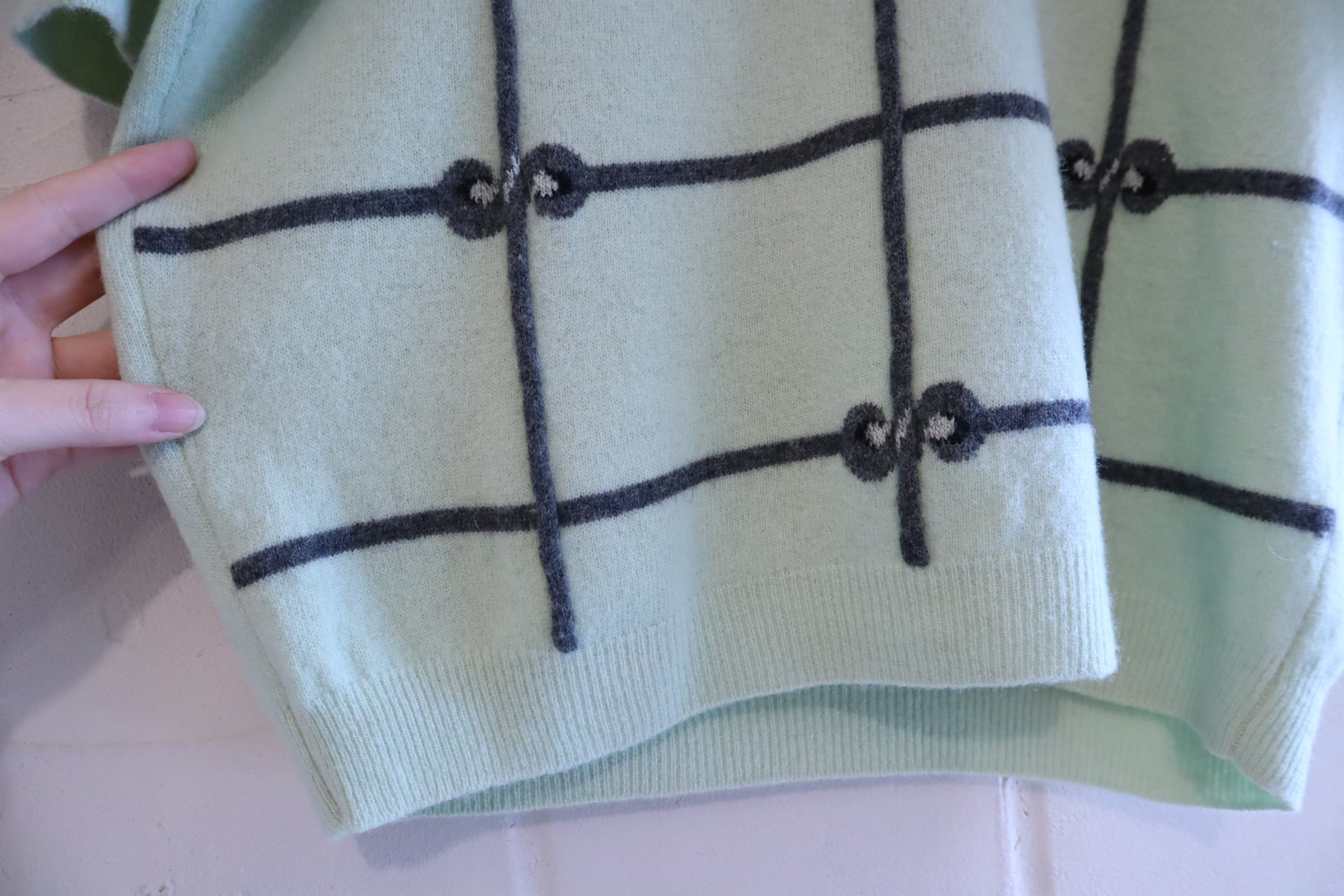 50s-60s lightmintgreen×gray ribbon motif knit pullover [l-4940]