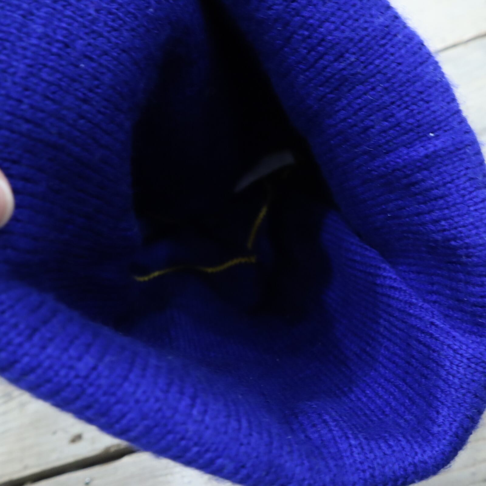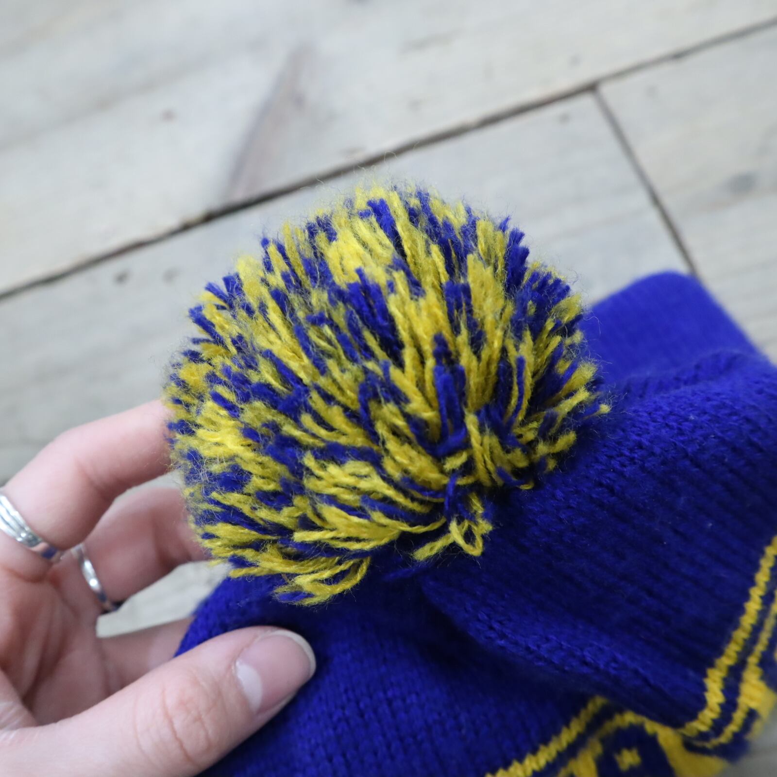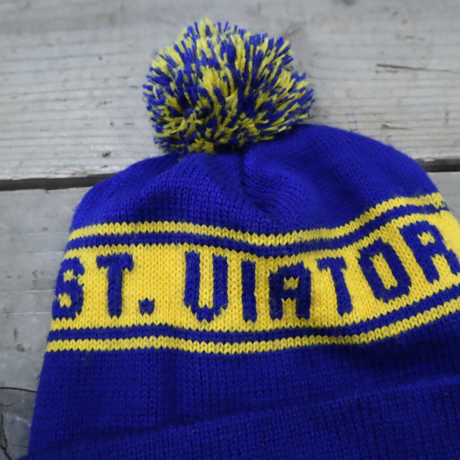 made in USA blue×yellow ponpon knit hat [l-4945]