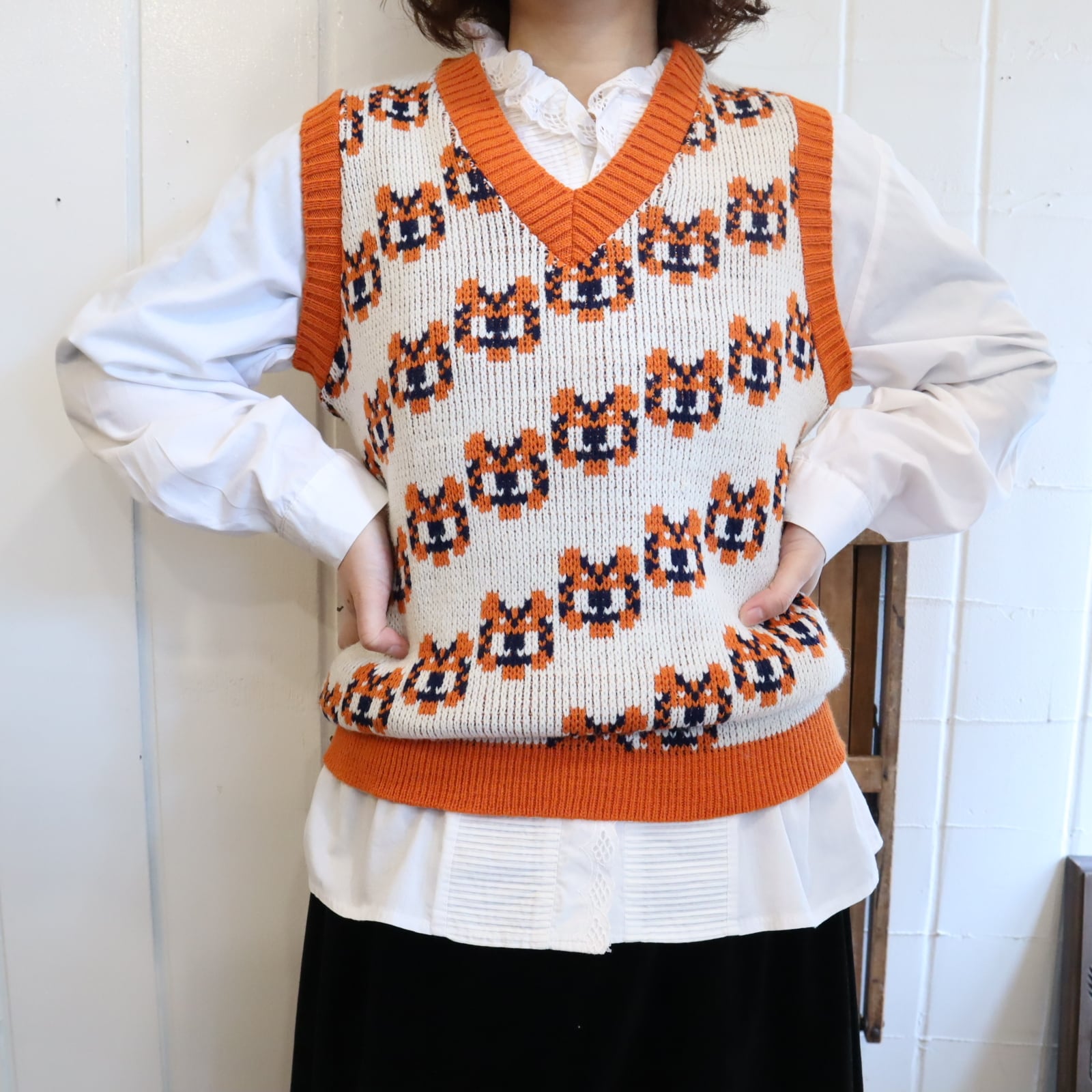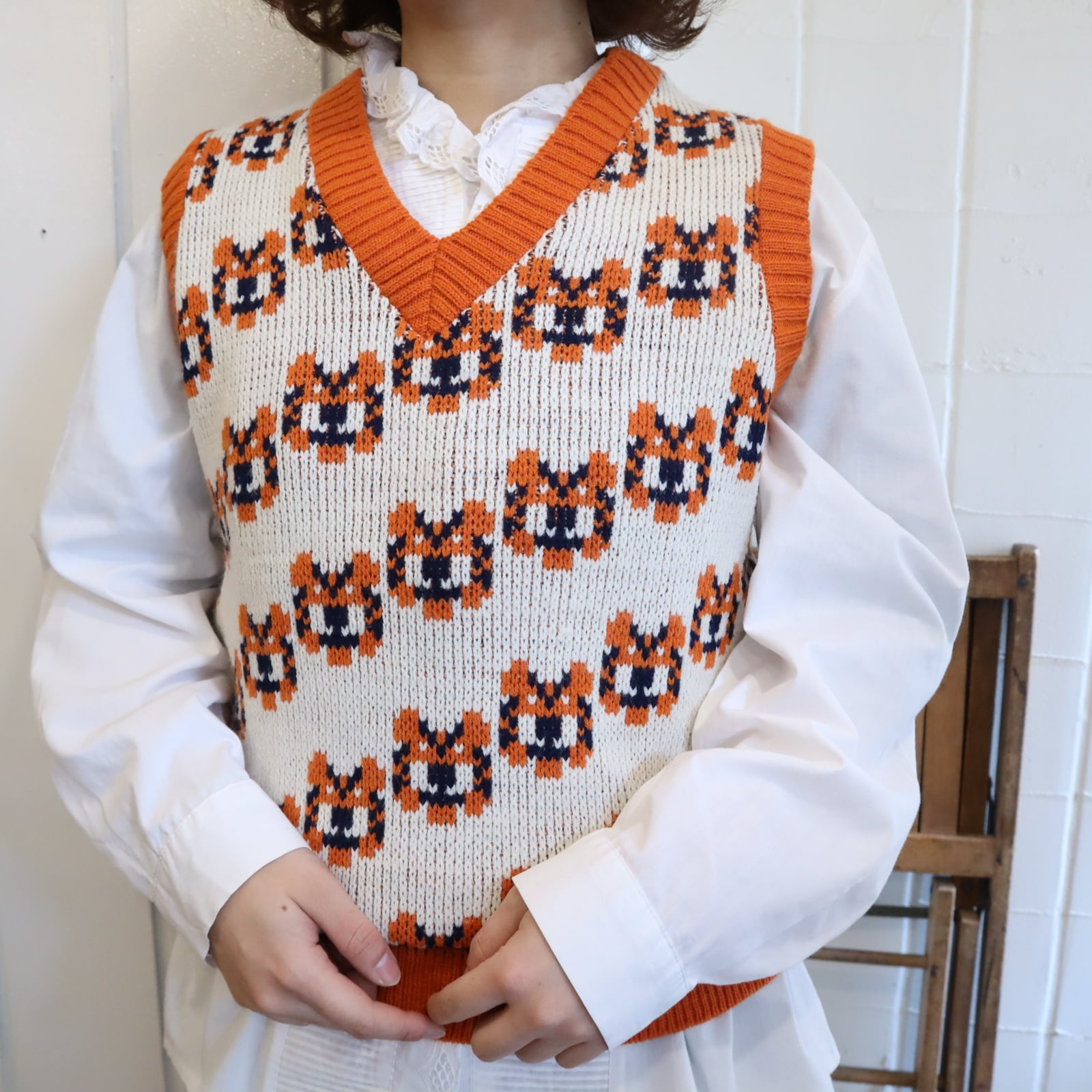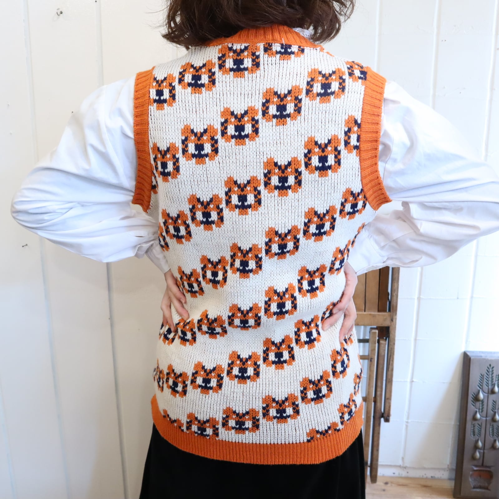 斜めに配列しているトラ柄が可愛いニットベスト。