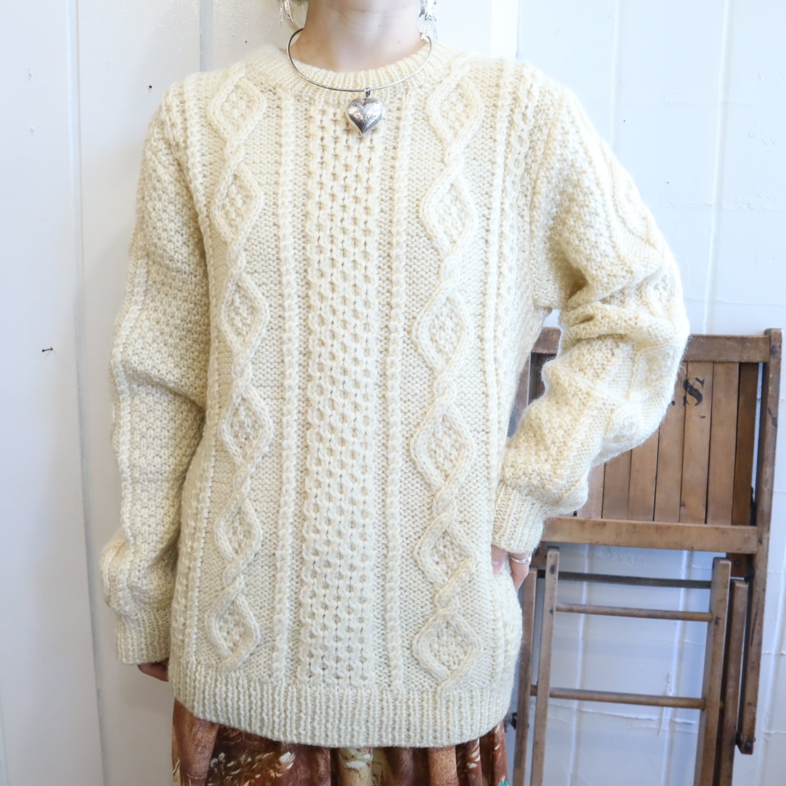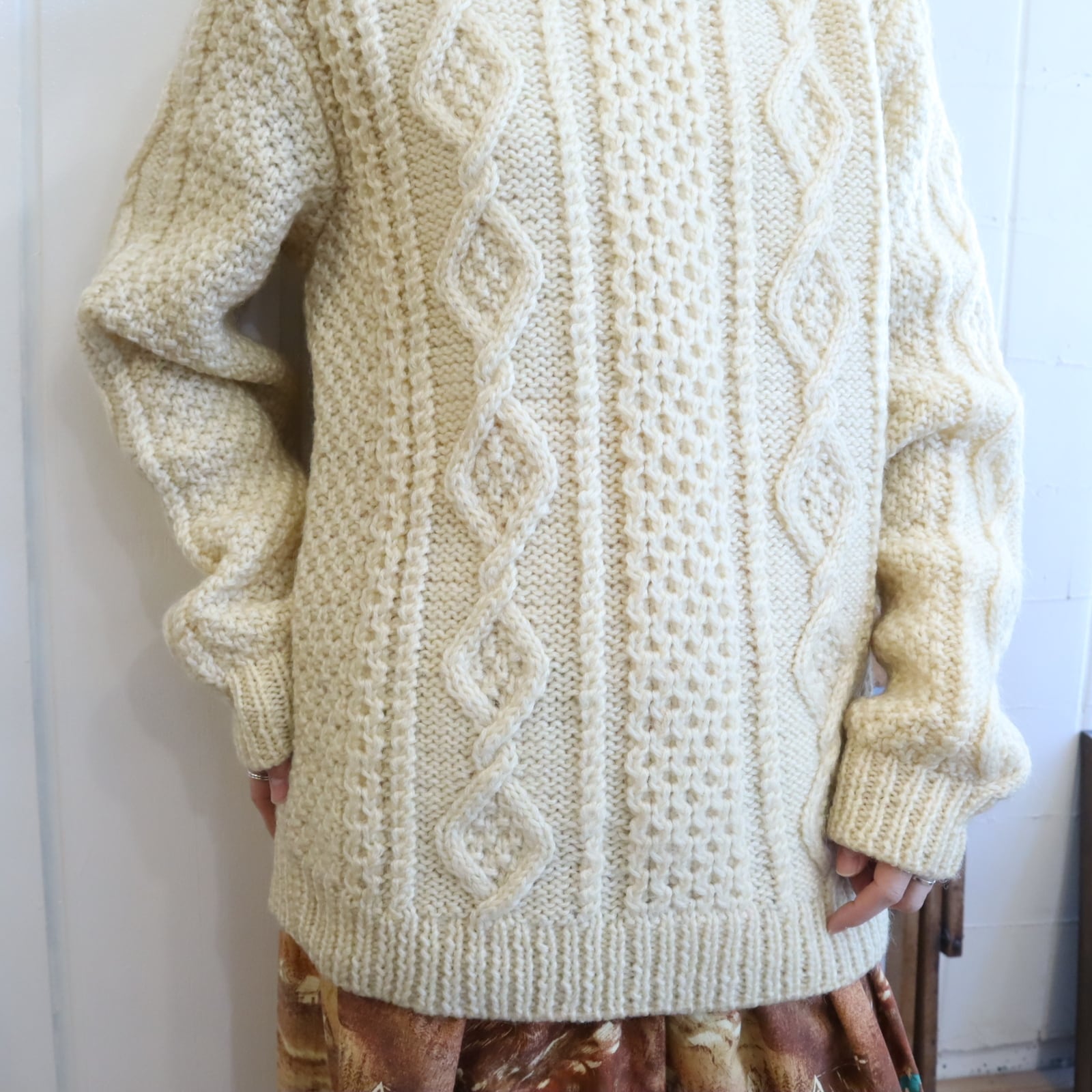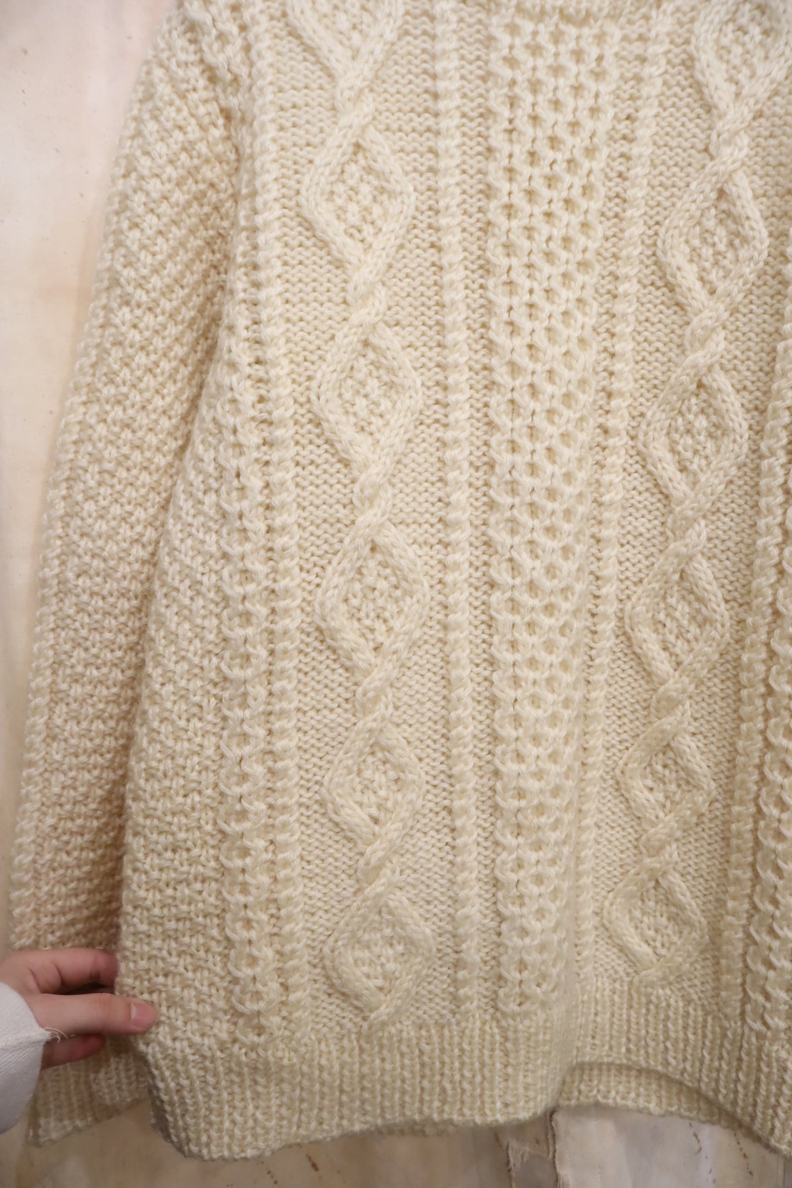 手編みならではの風合いを感じるフィッシャーマンニットです。