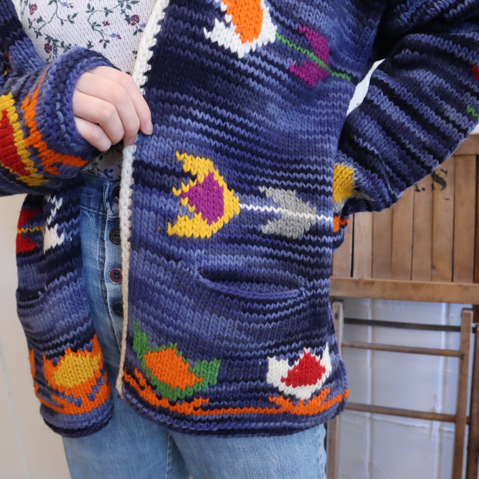 全面カラフルなお花が可愛いエクアドルニットです。