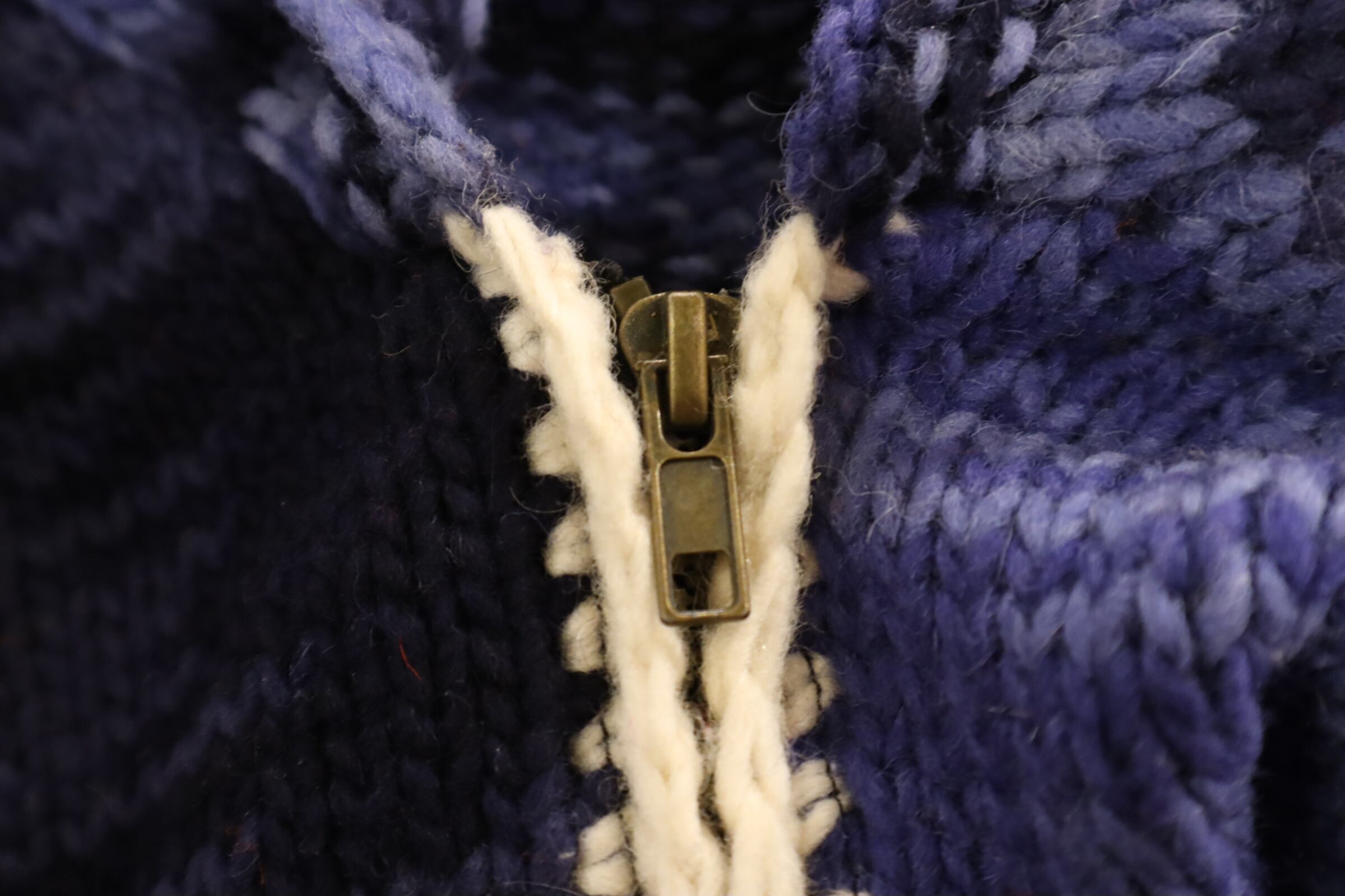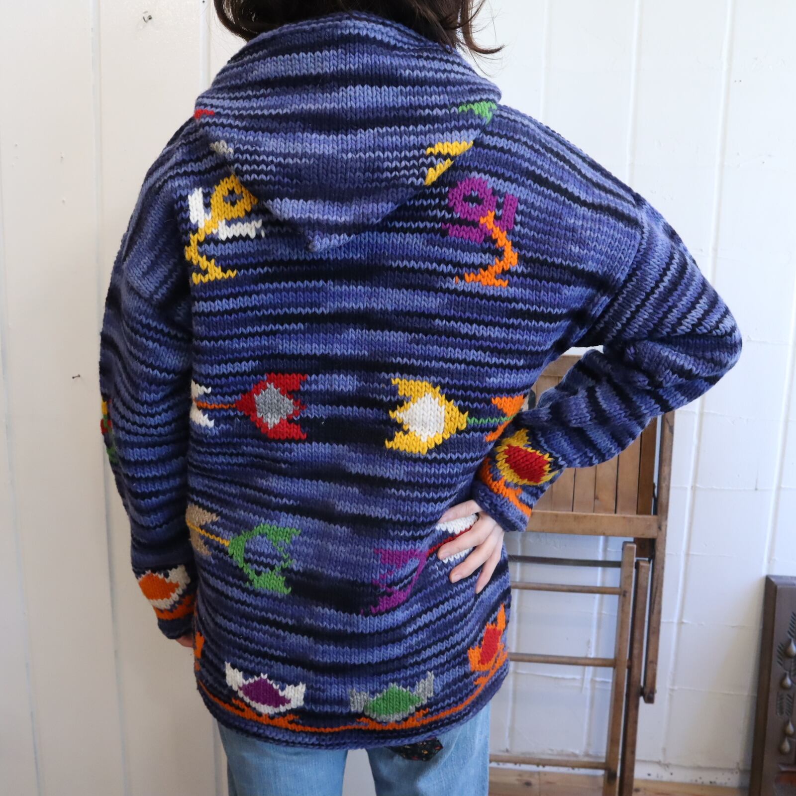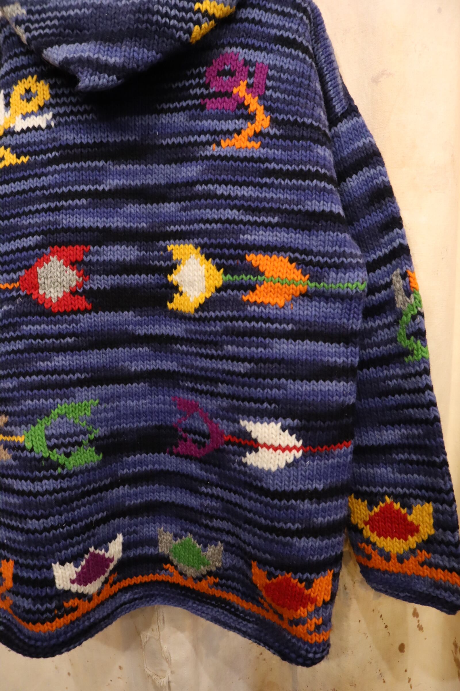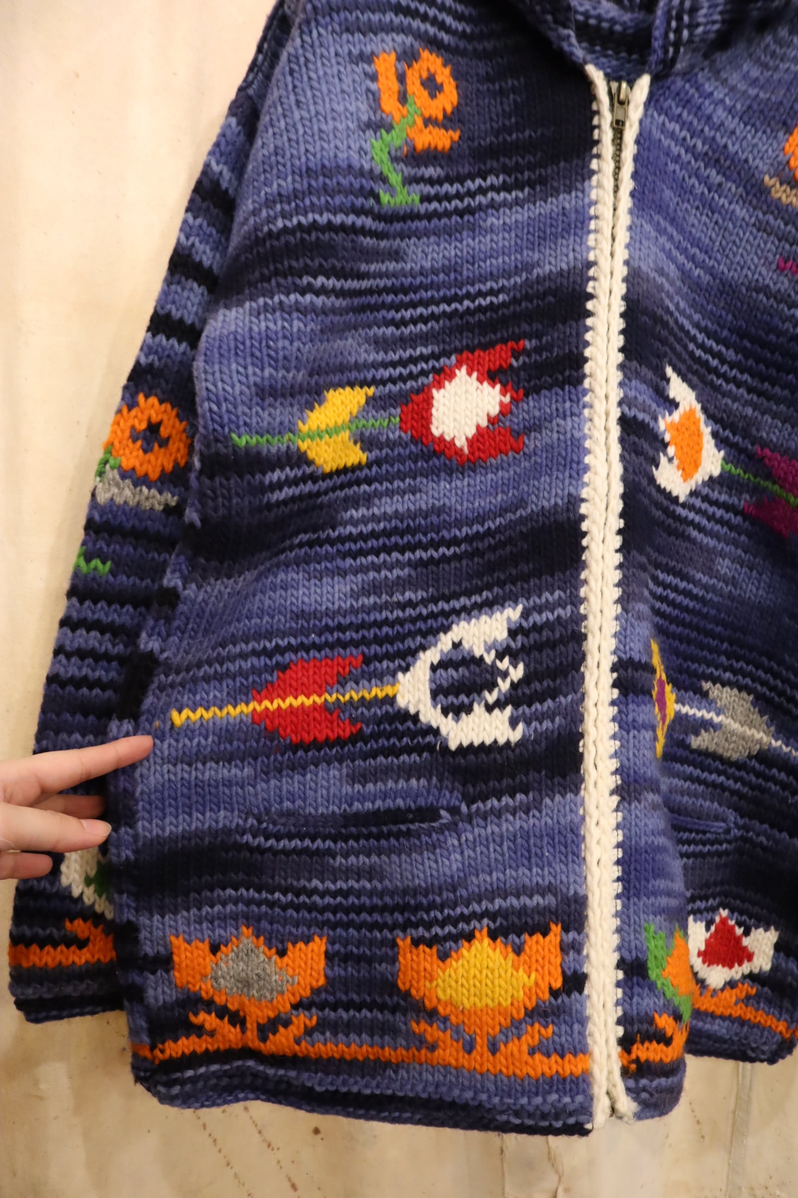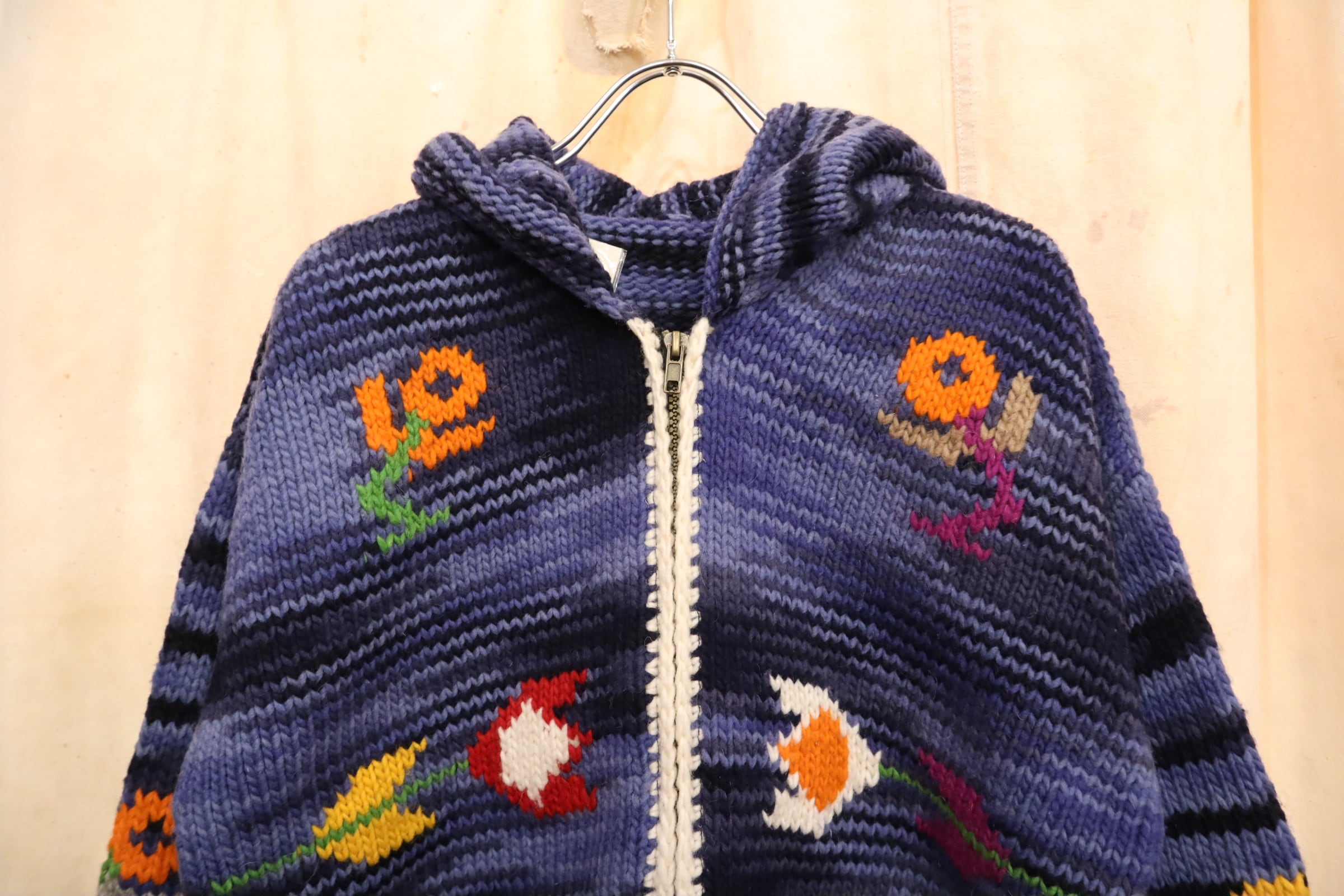 navy×blue×colorful flower fullzip Ecuador knit jacket [l-4950]