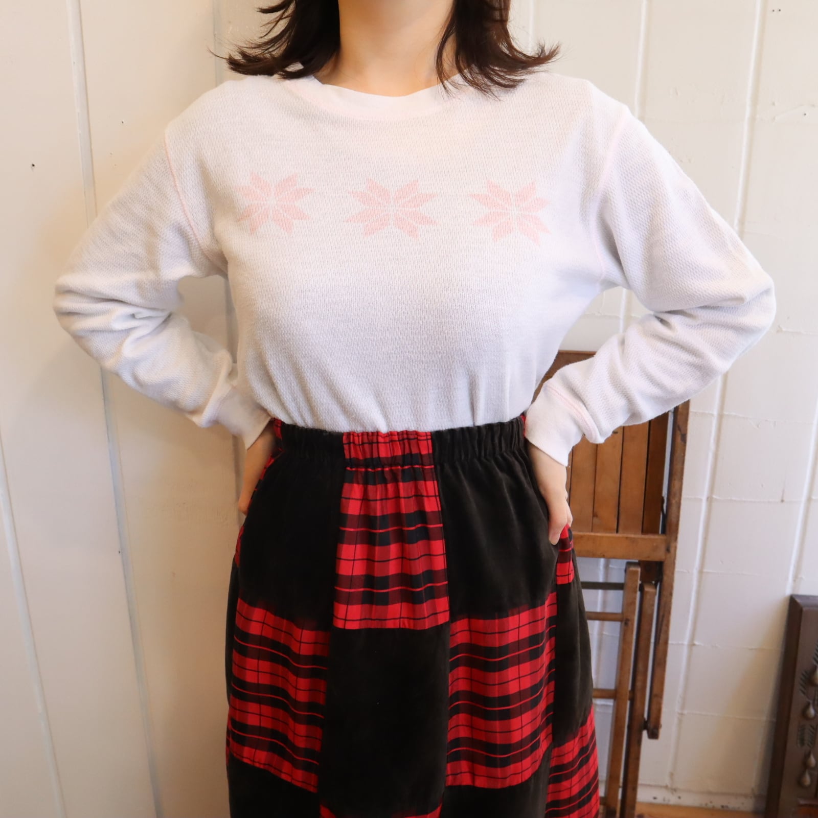 雪の結晶の様な柄が可愛いサーマルトップスです*