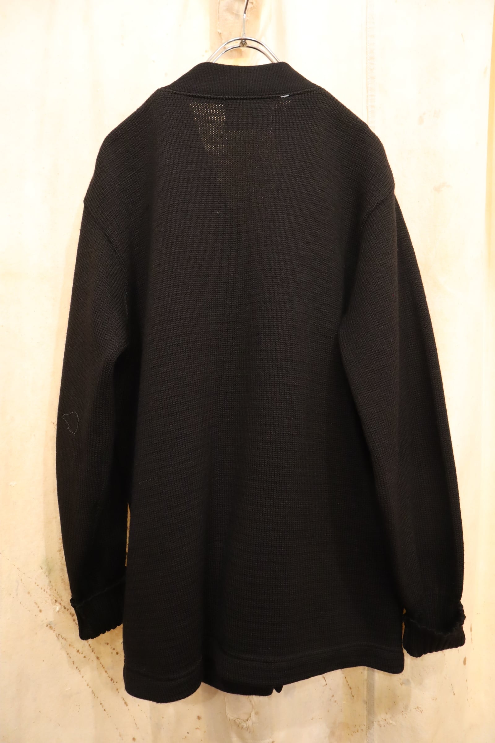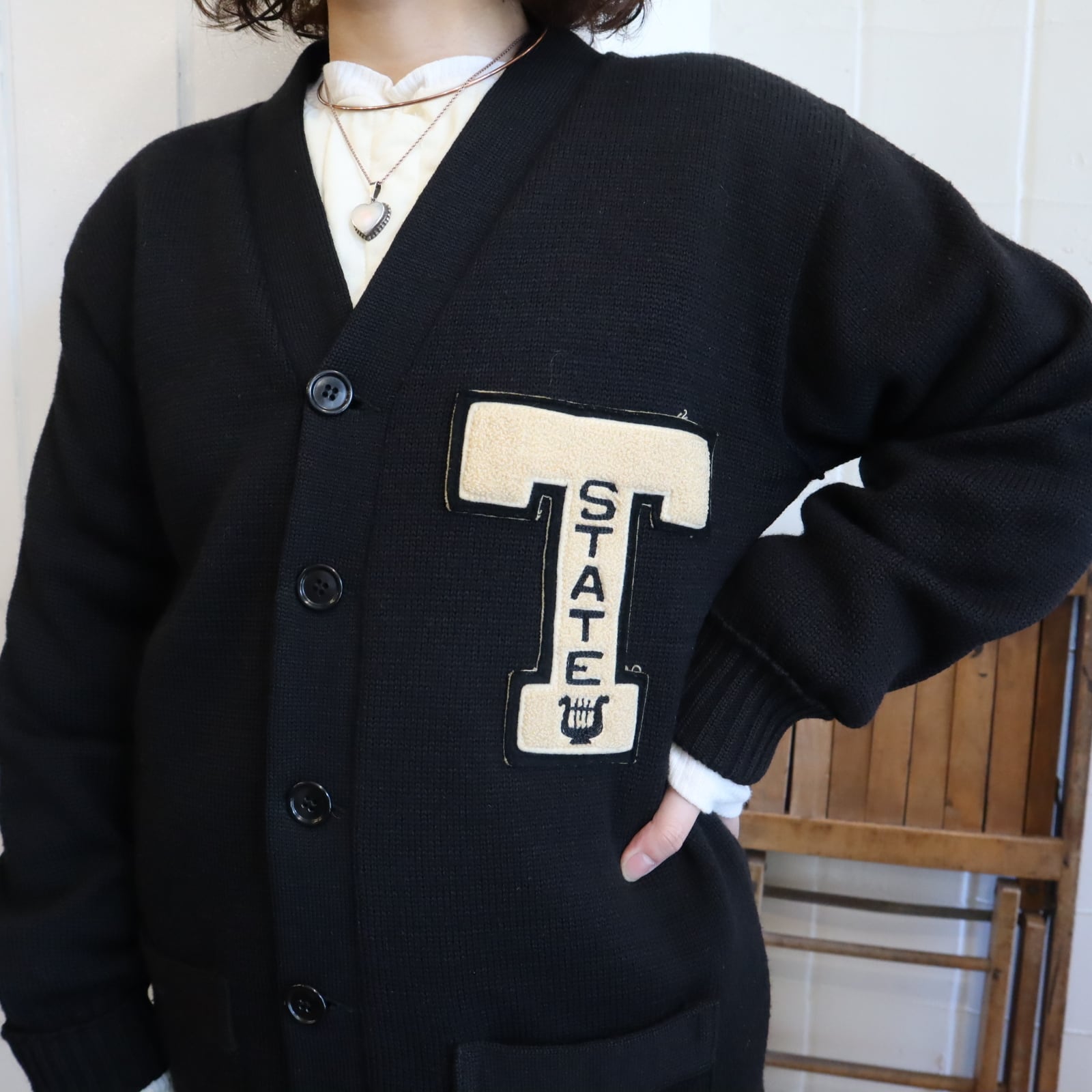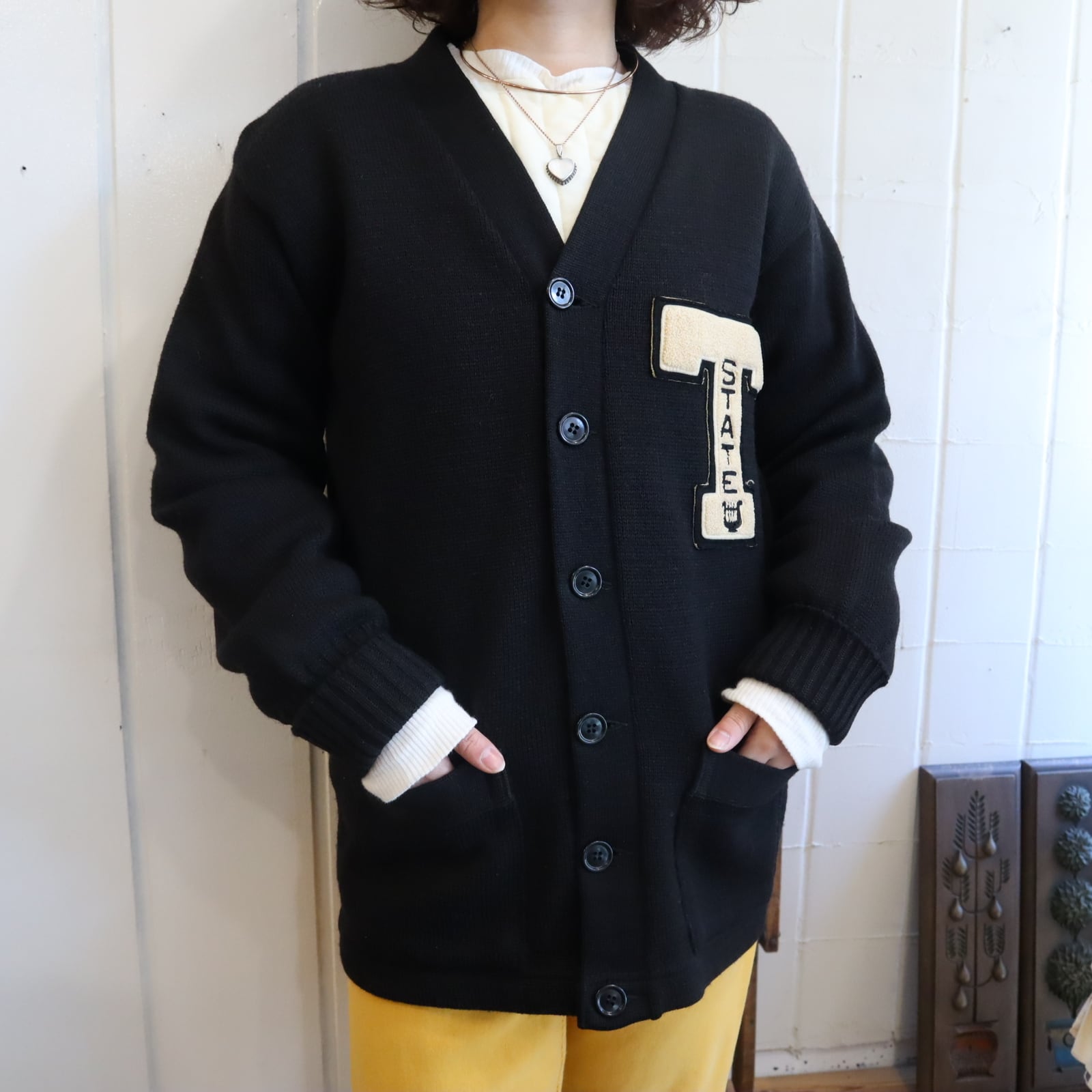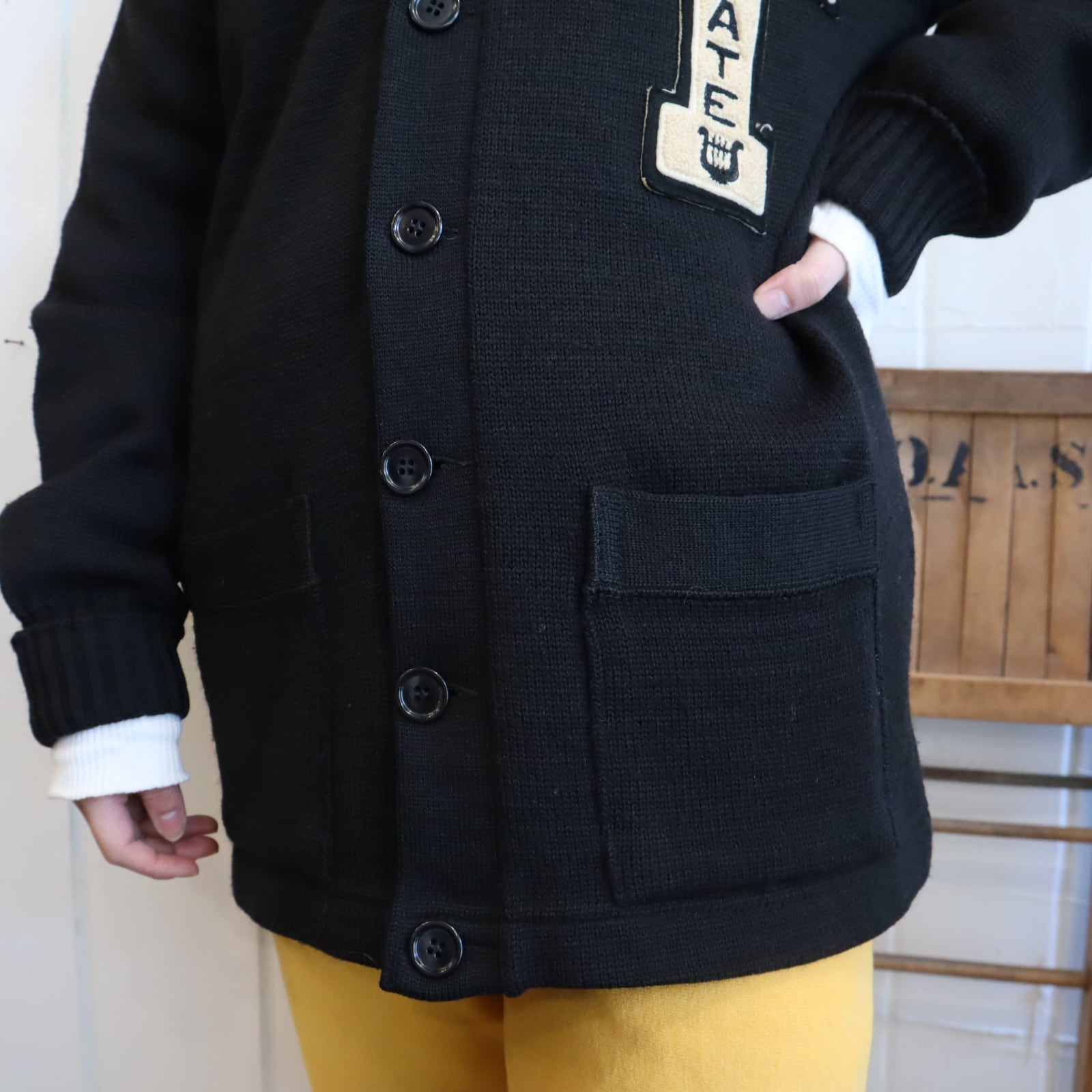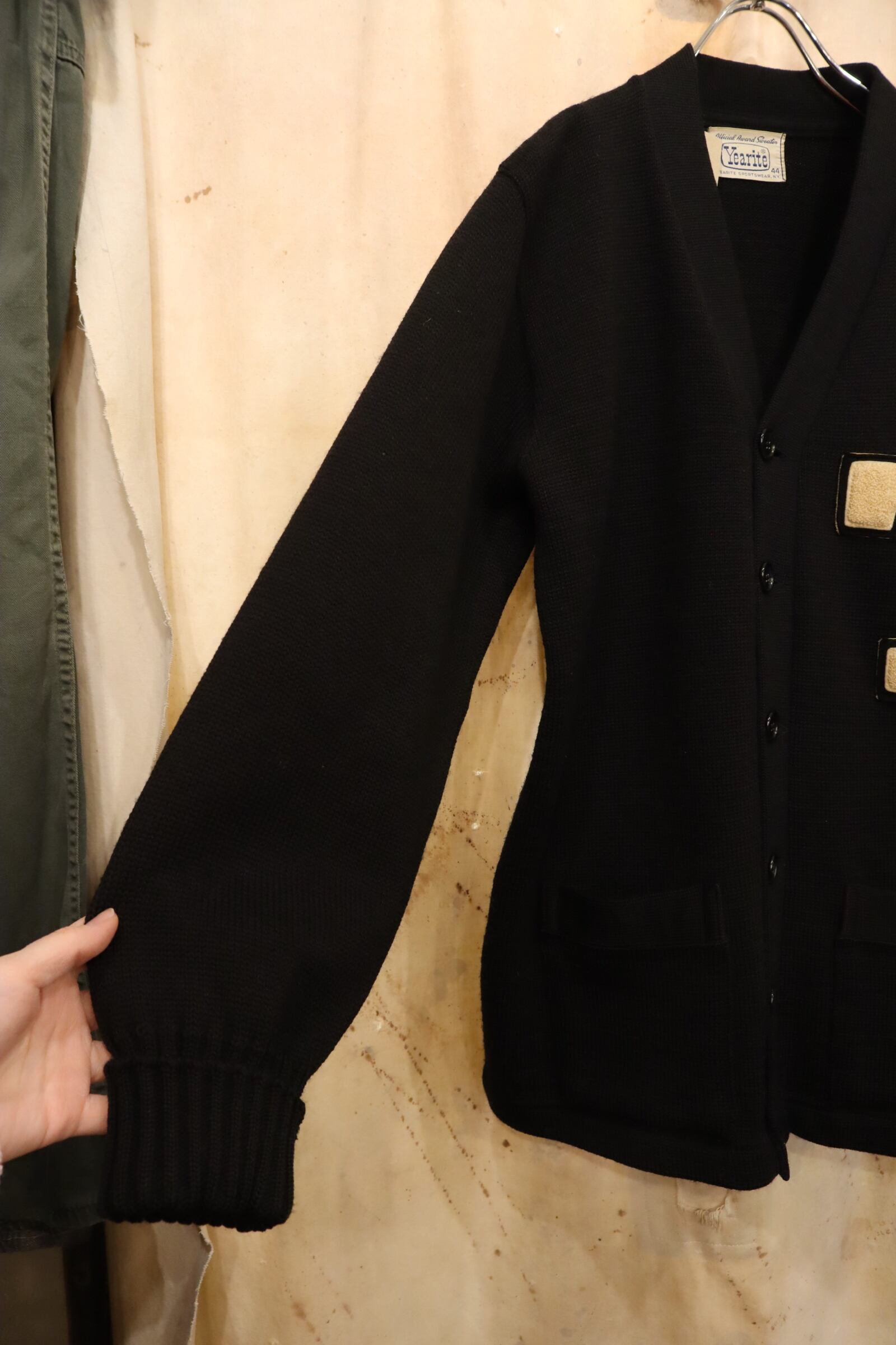 60s black×offwhite lettered wappen knit cardigan [k-4955]