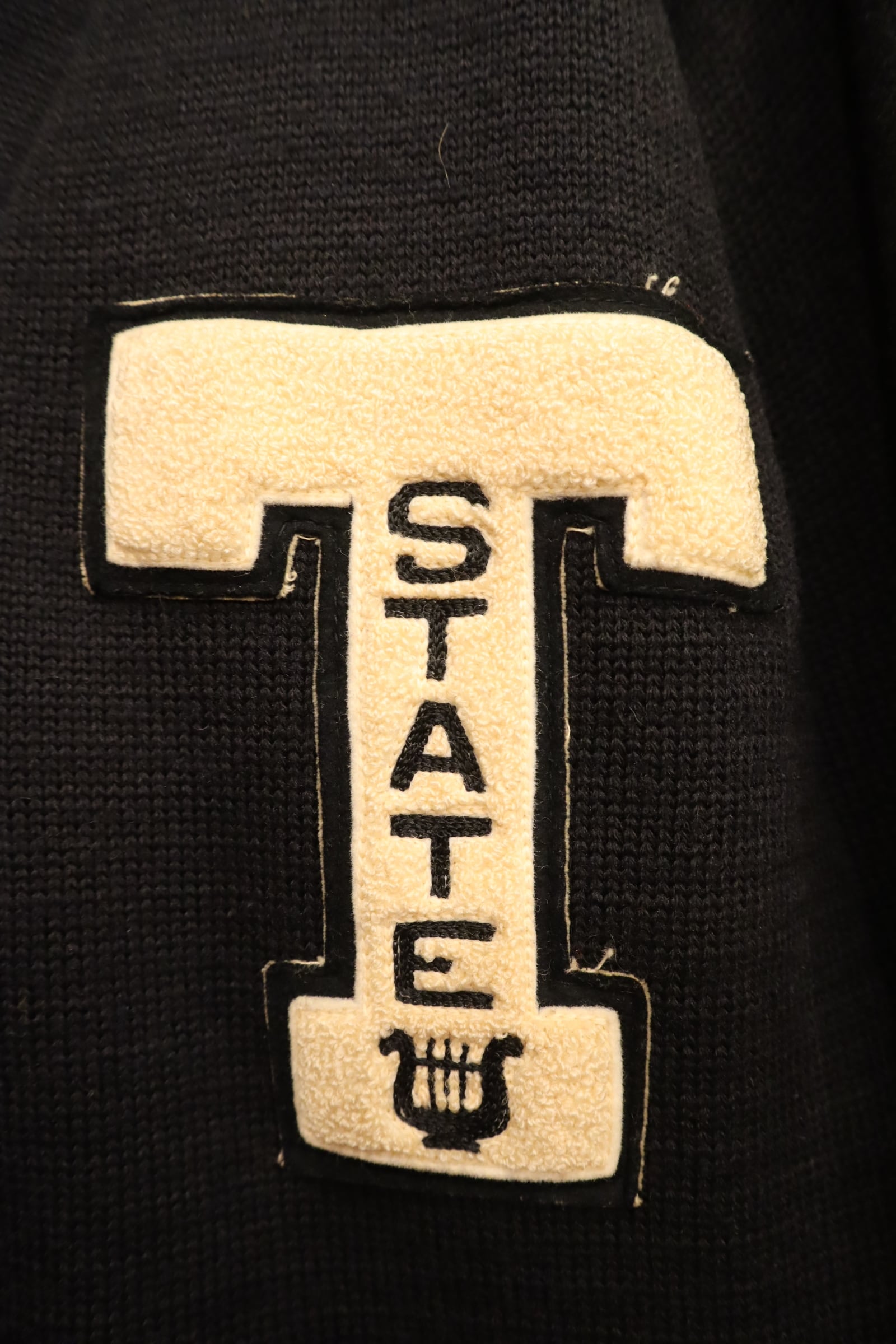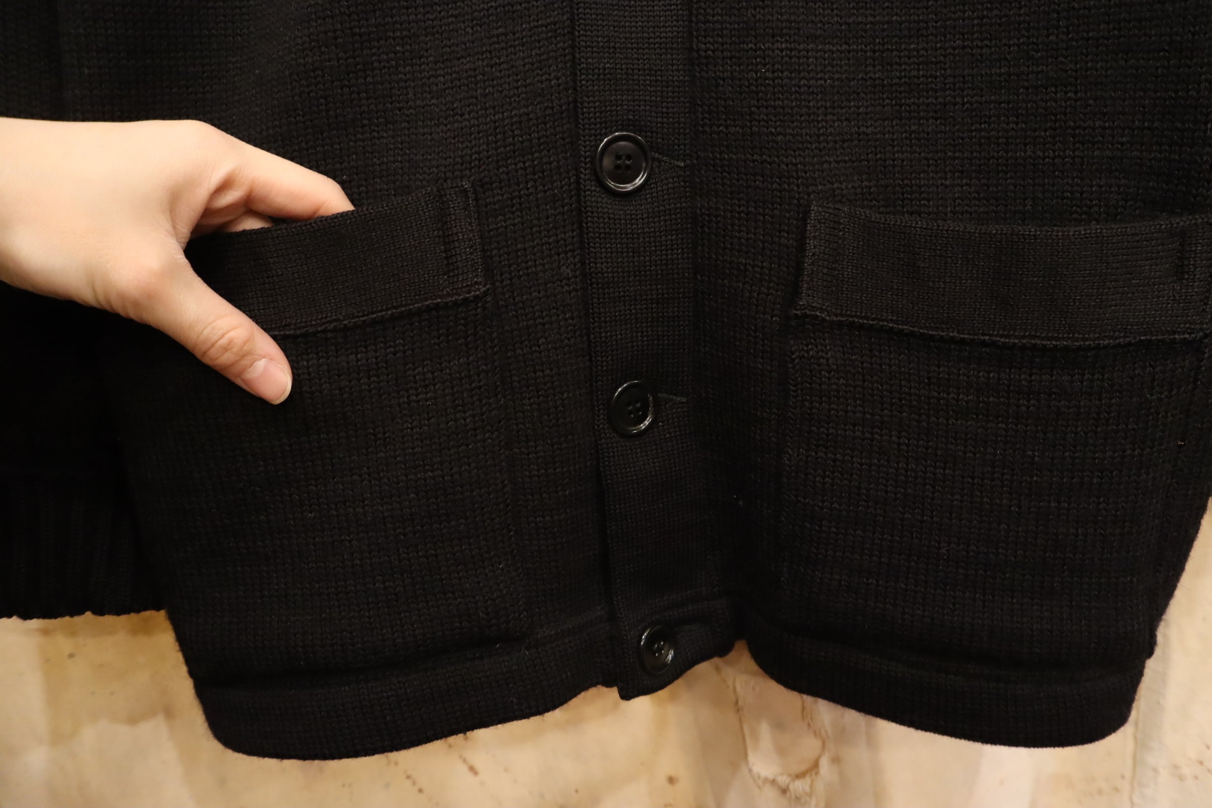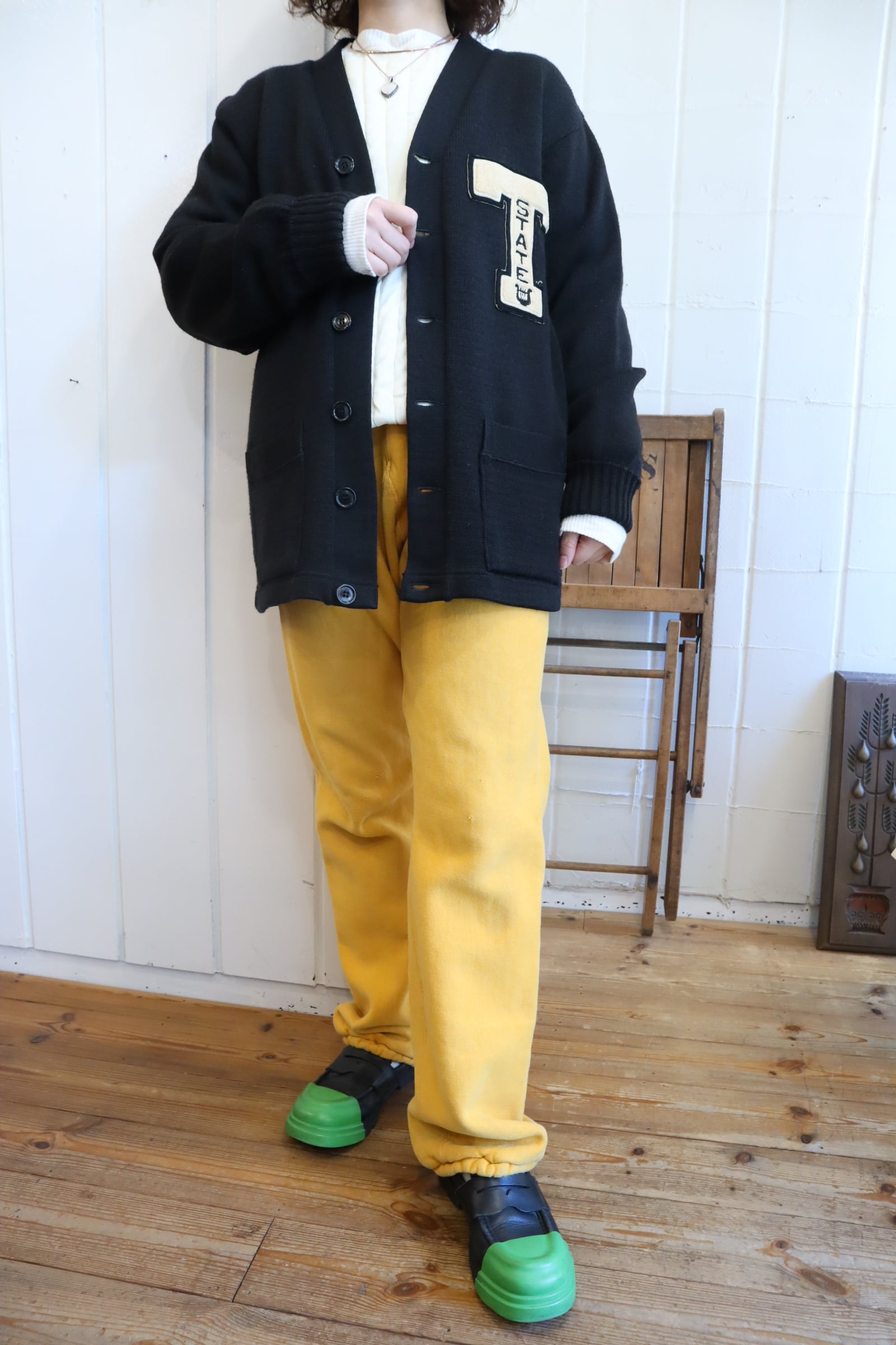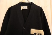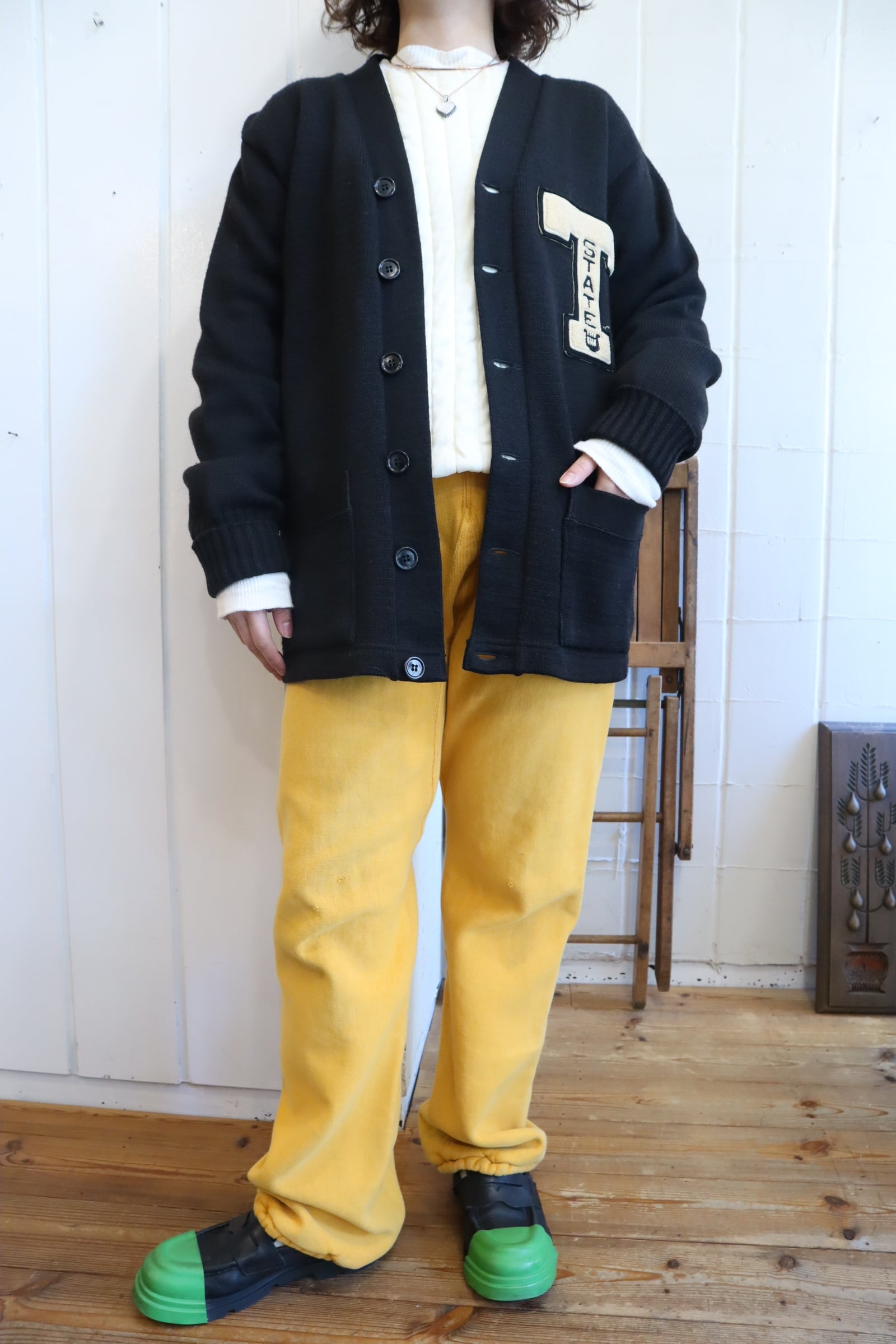 60s black×offwhite lettered wappen knit cardigan [k-4955]