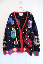 顕微鏡や虫眼鏡など、生物の授業のようなデザインが可愛いコットンニットカーディガン*