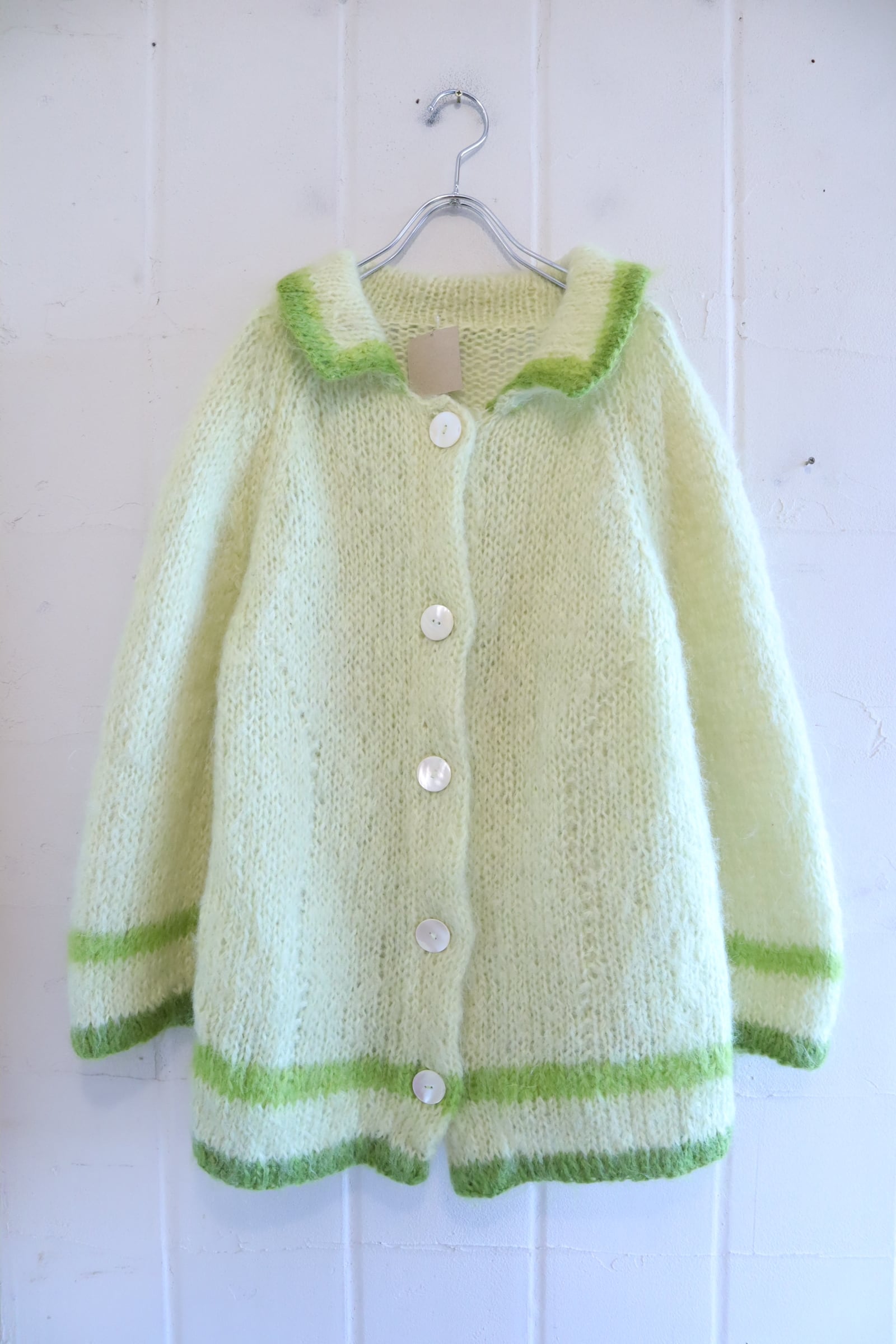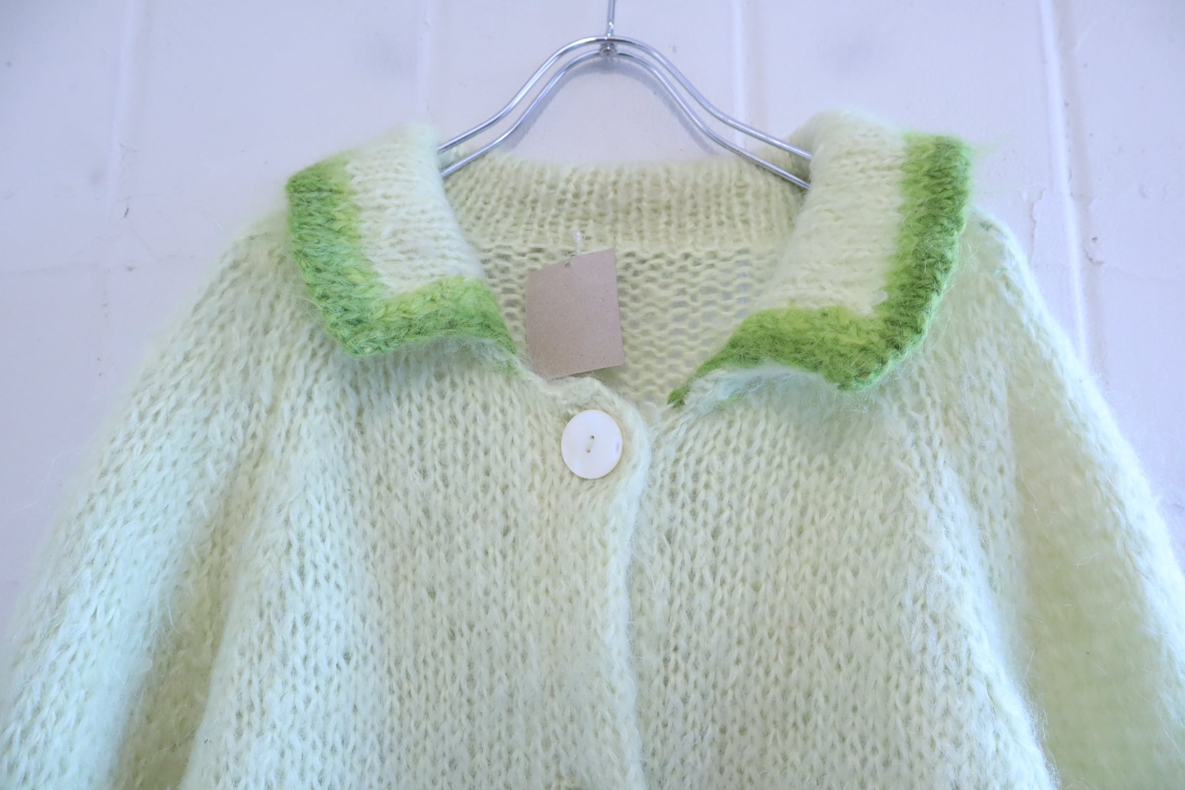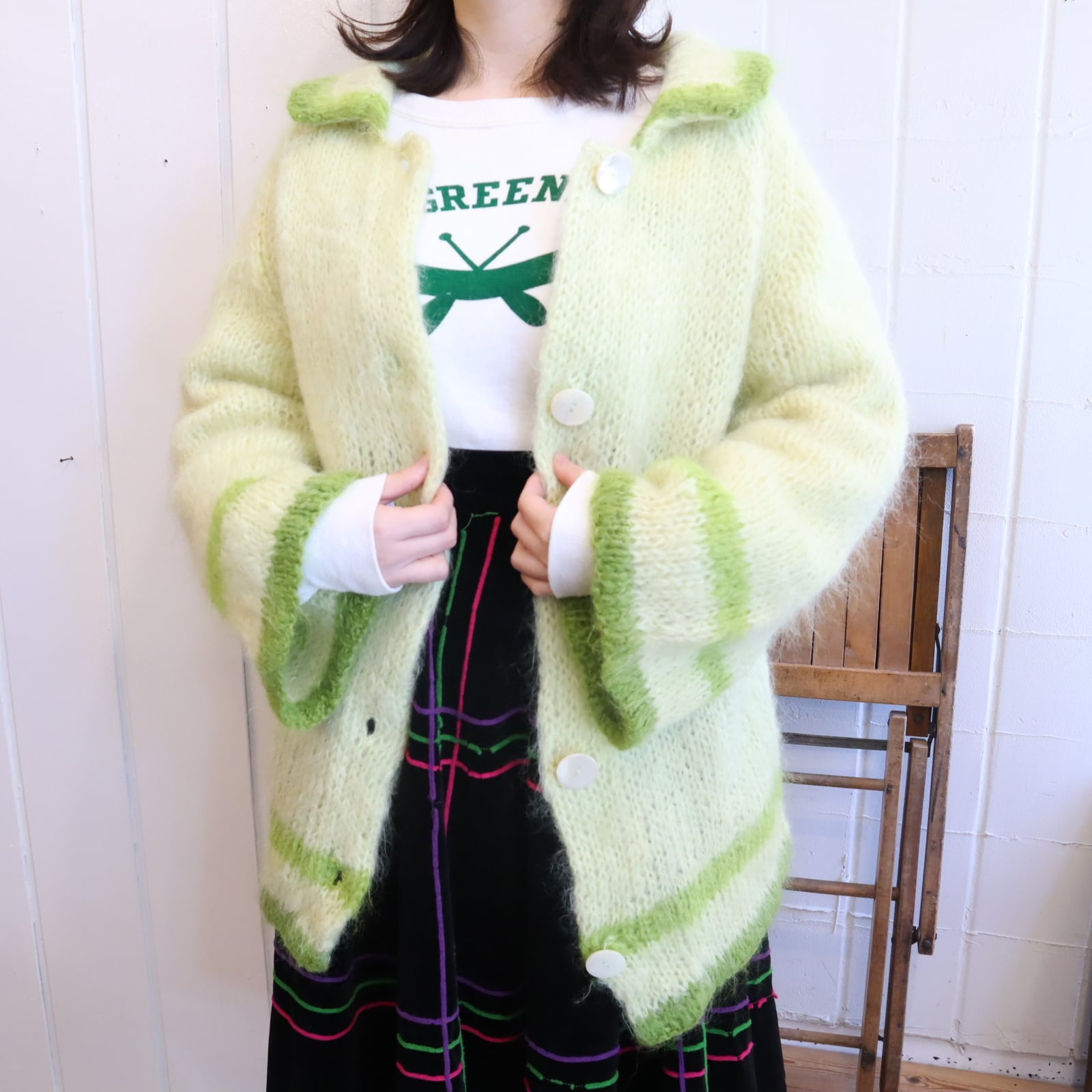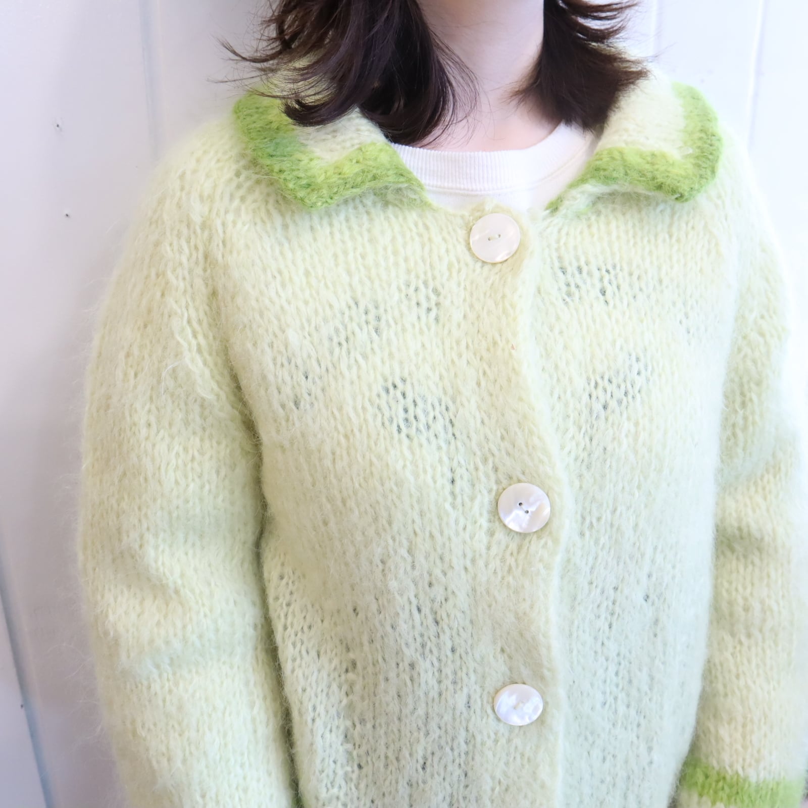 pastelgreen×yellowgreen line design collar knit cardigan [l-4967]