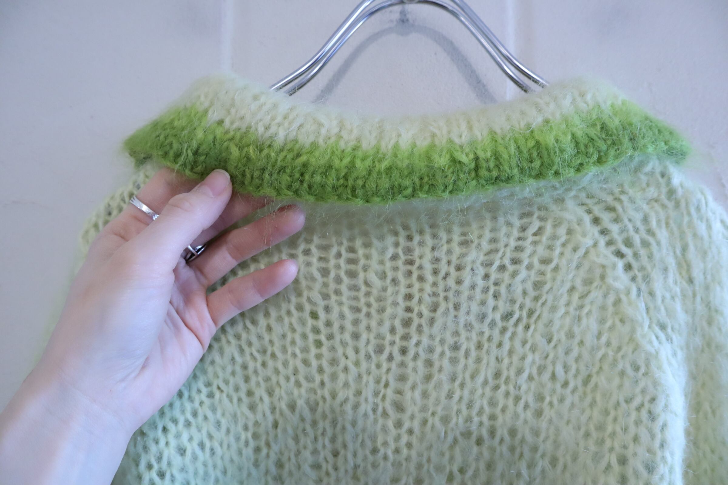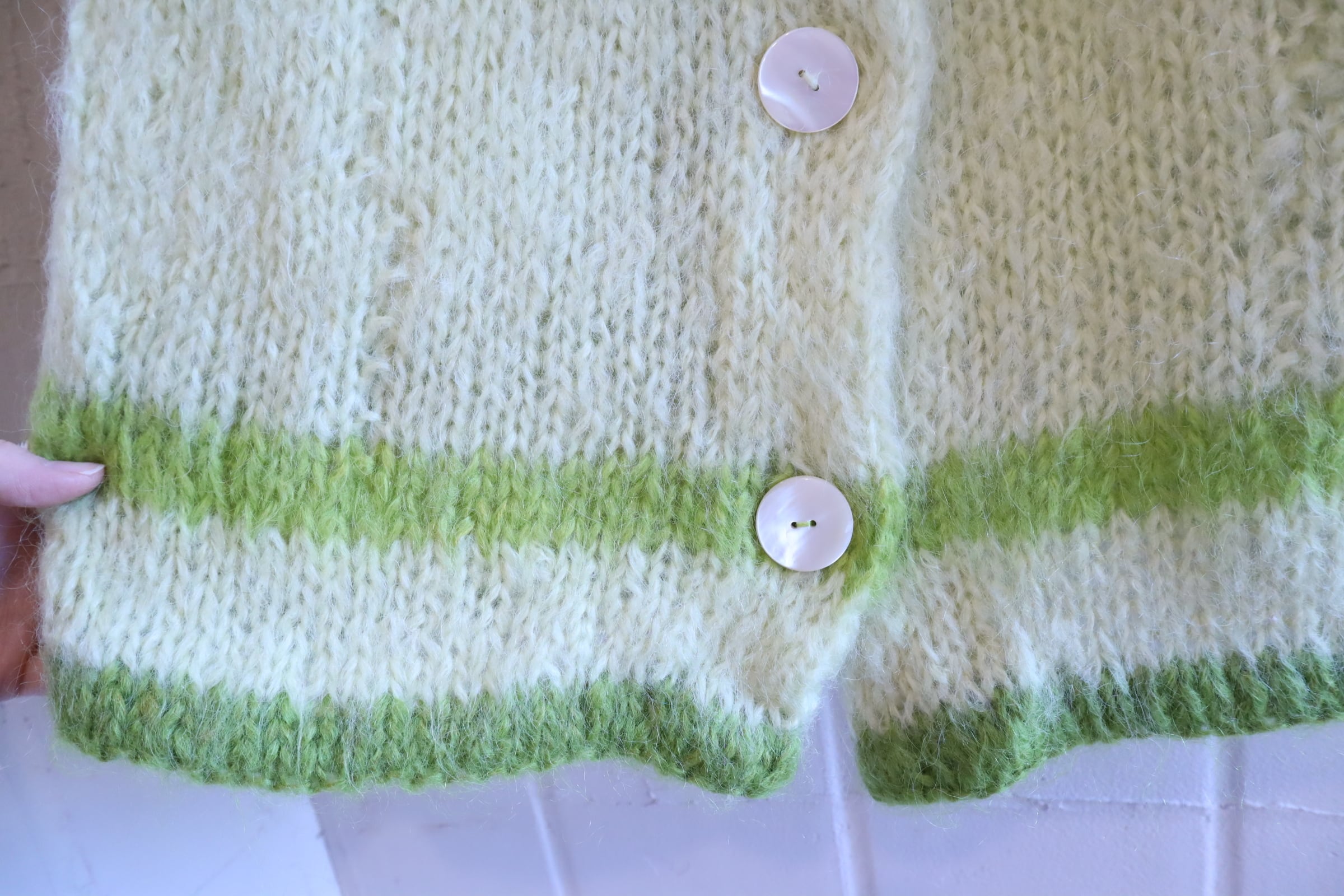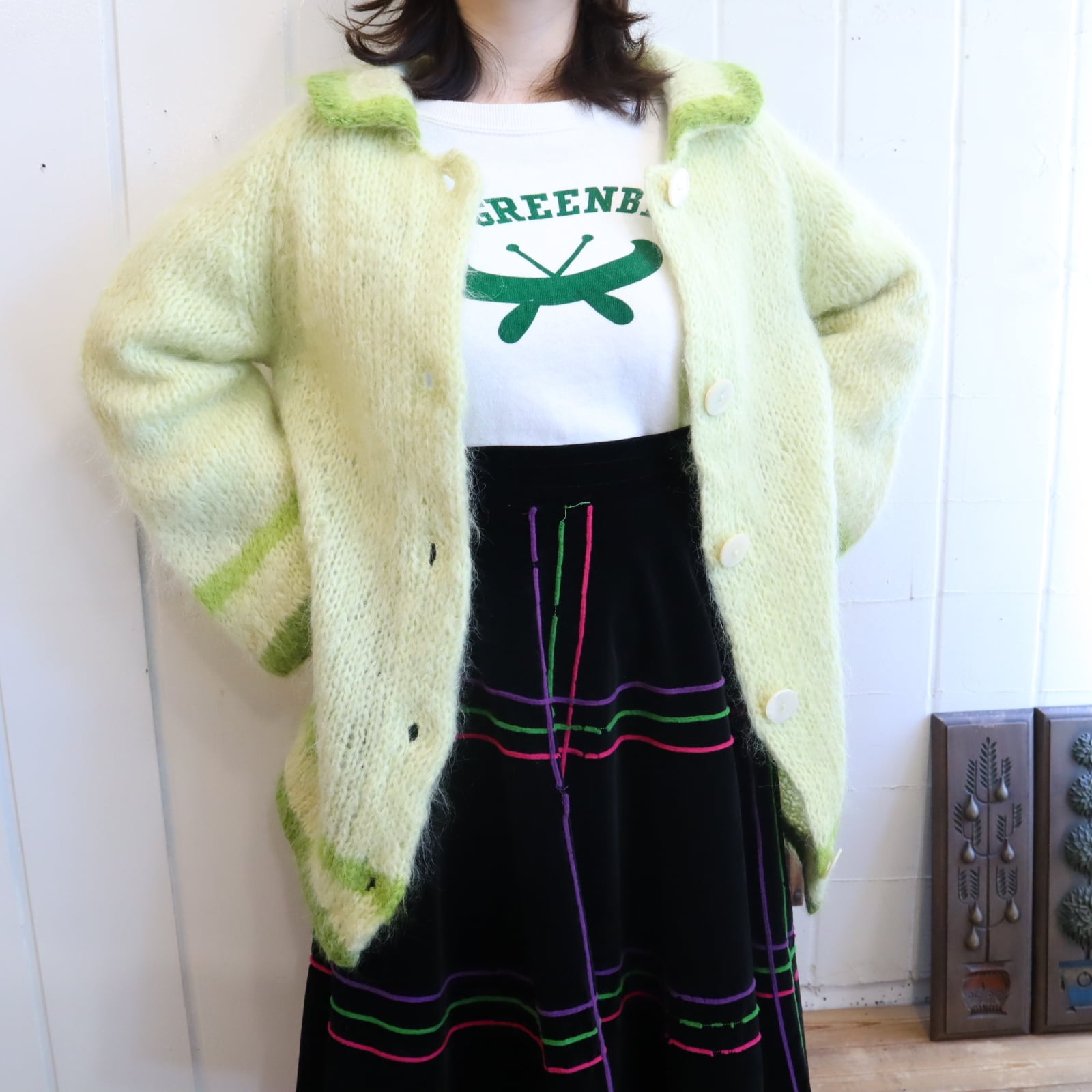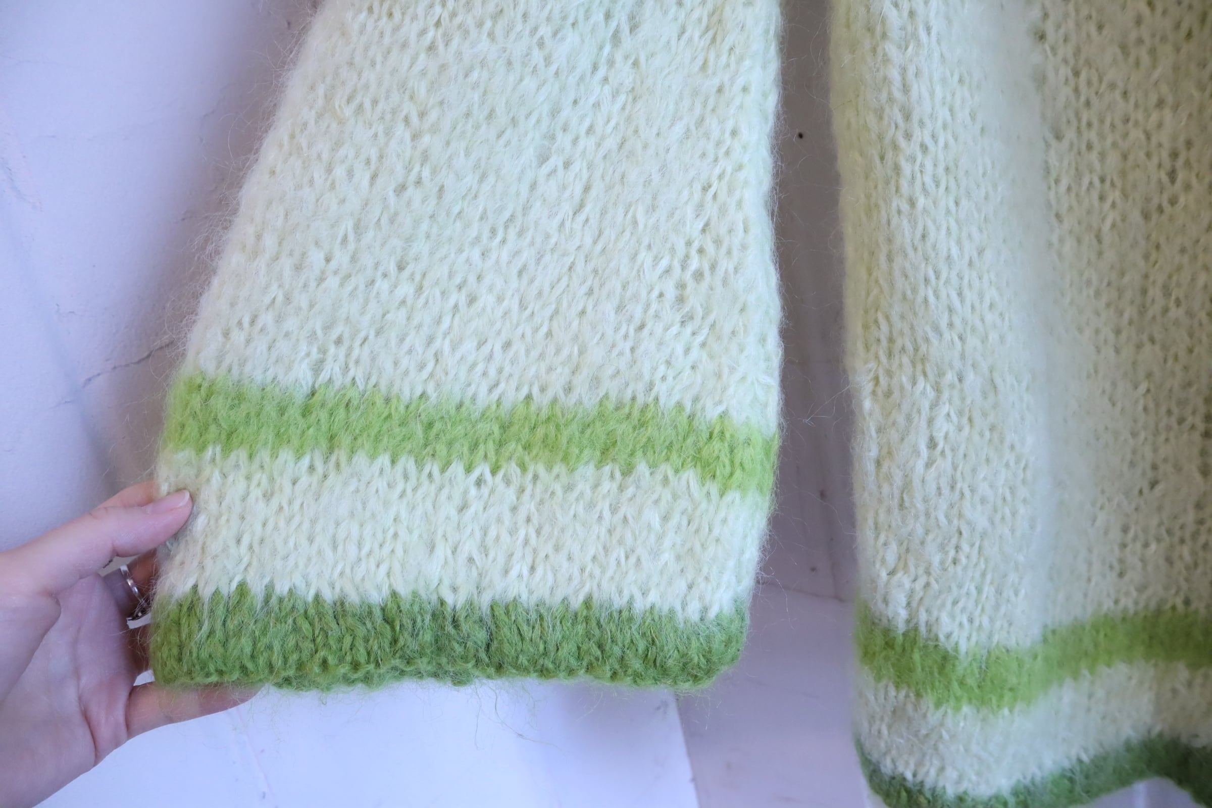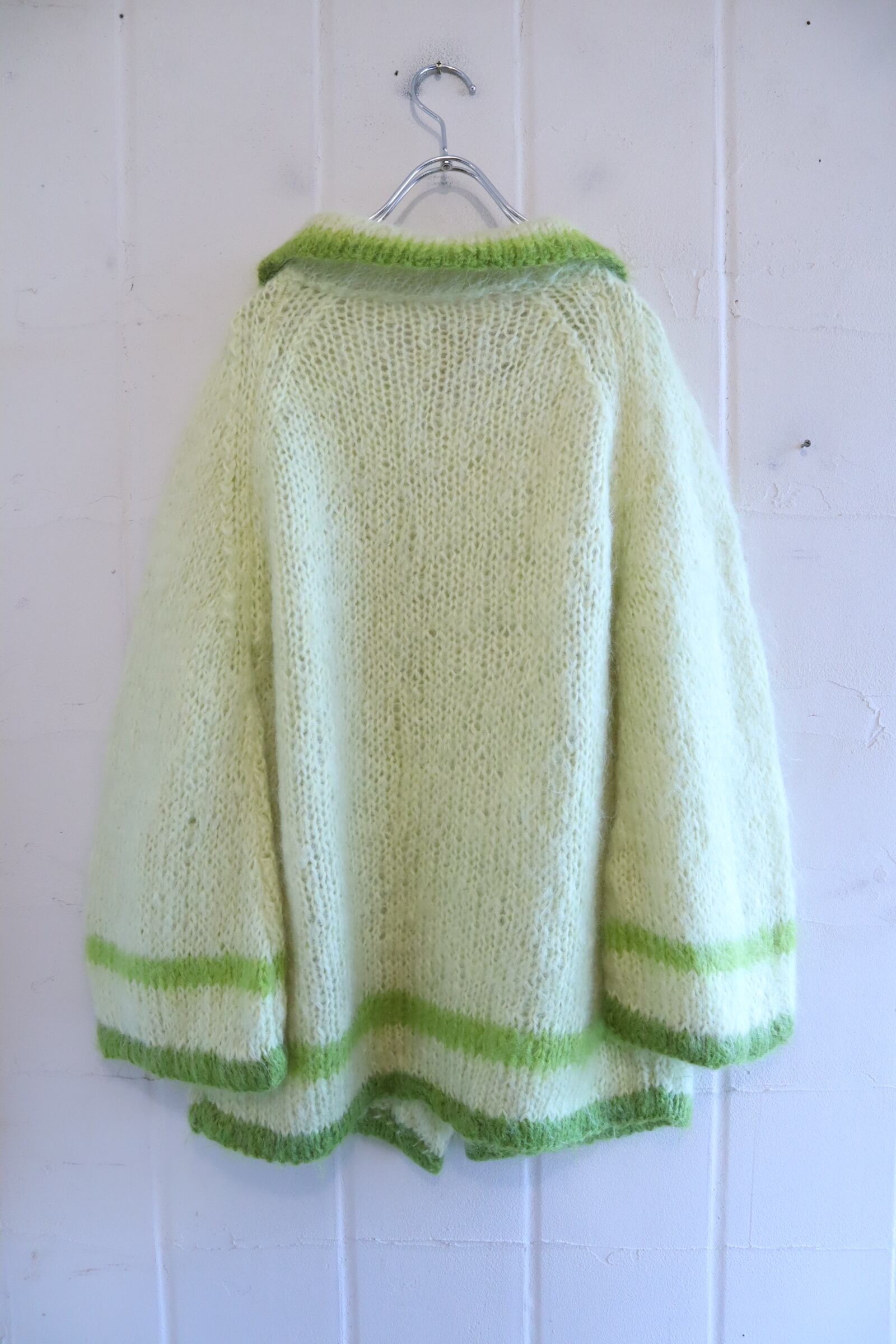 pastelgreen×yellowgreen line design collar knit cardigan [l-4967]