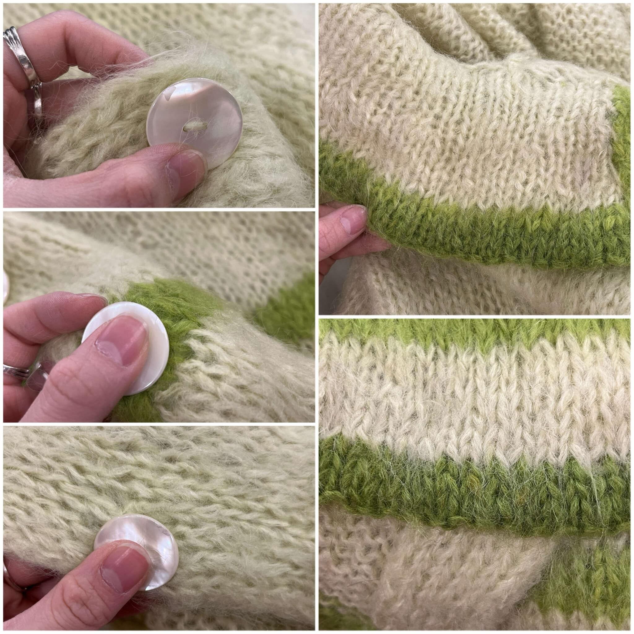 黄緑のラインや襟、袖口が広がったデザインがとても可愛いニットカーディガン♡