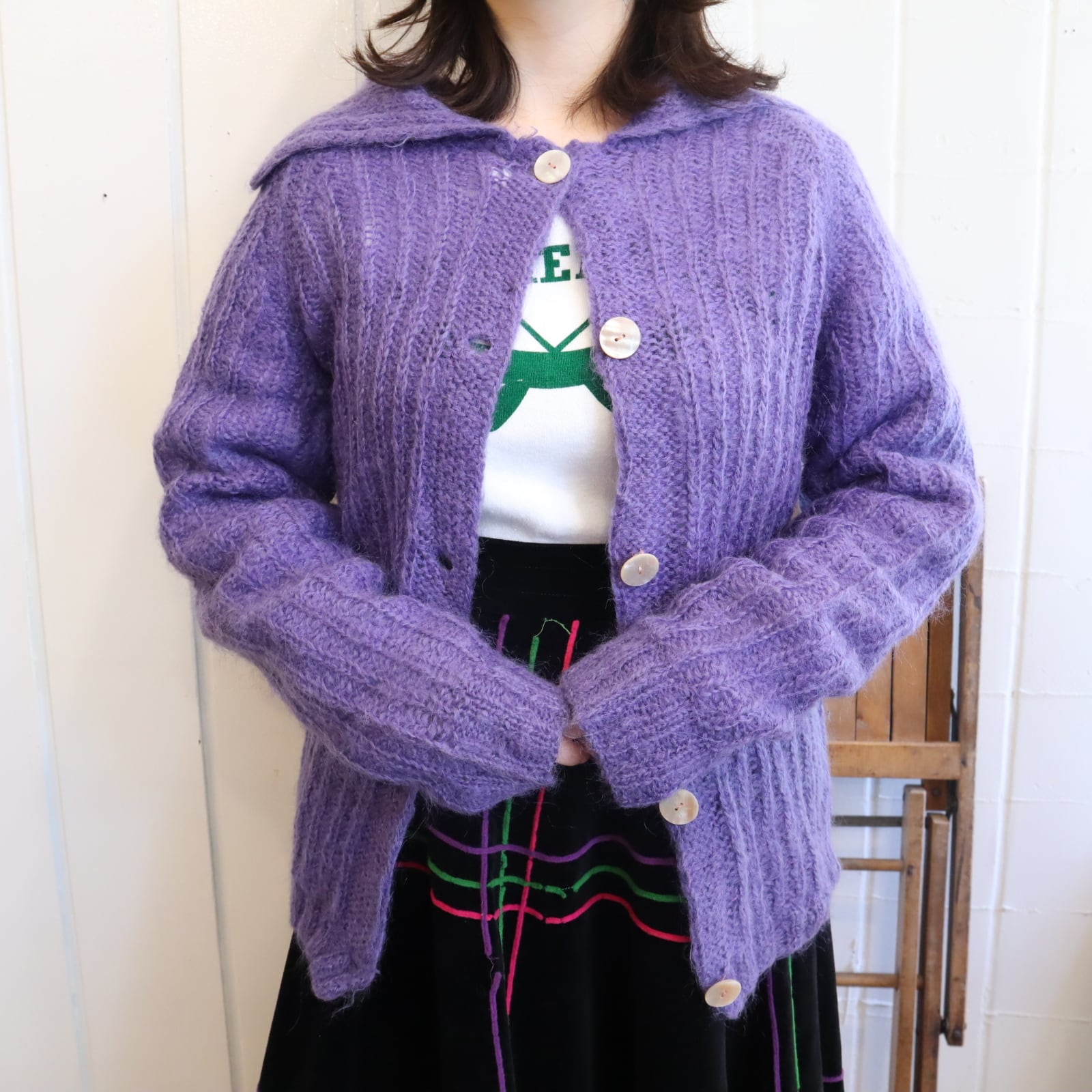 大きめの襟がとても可愛いモヘアニットカーディガン*