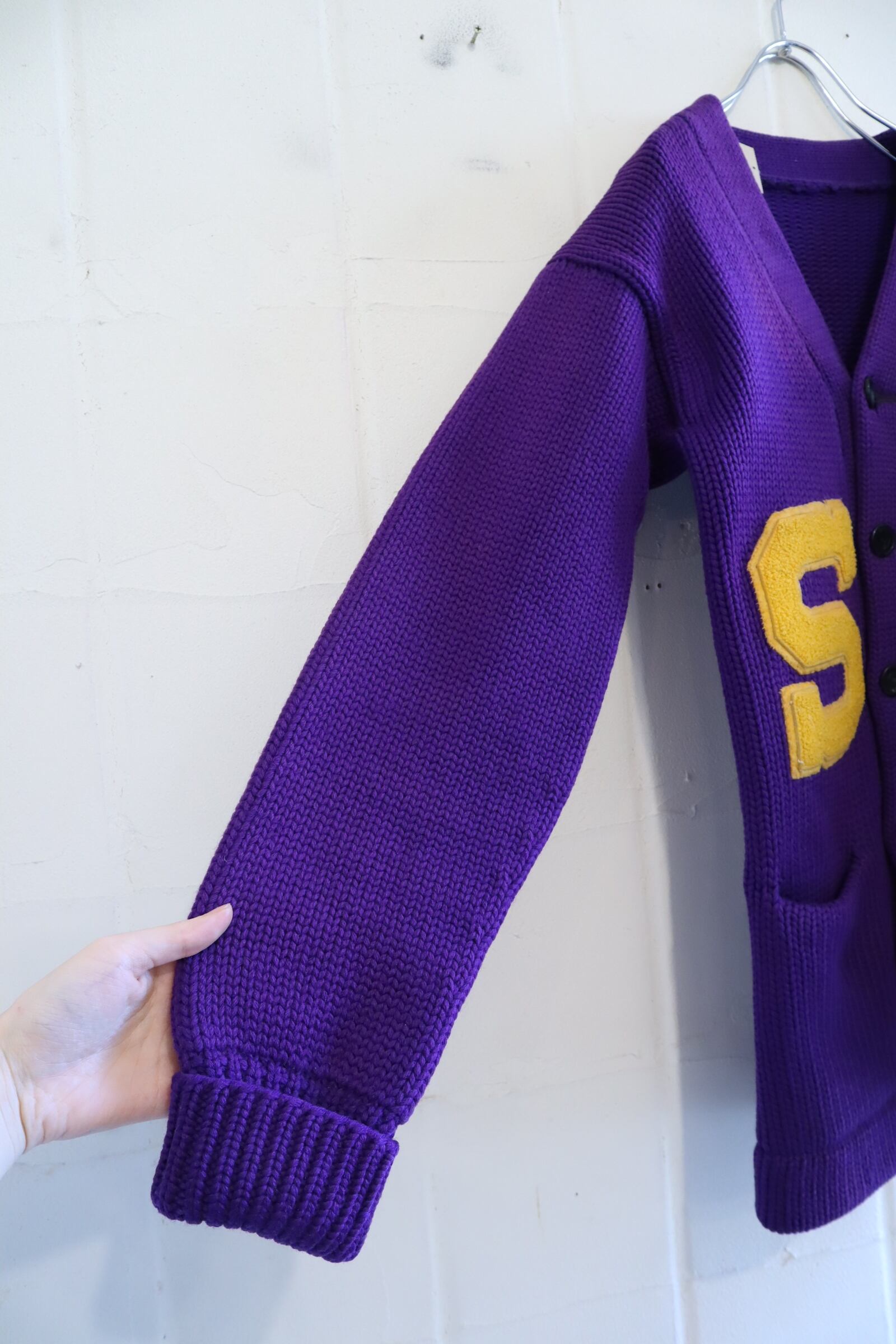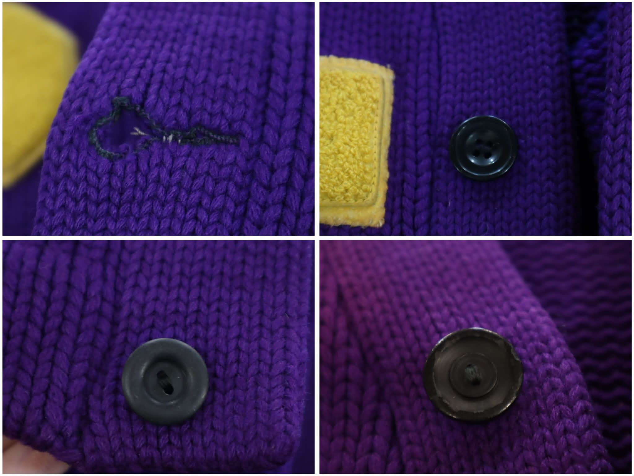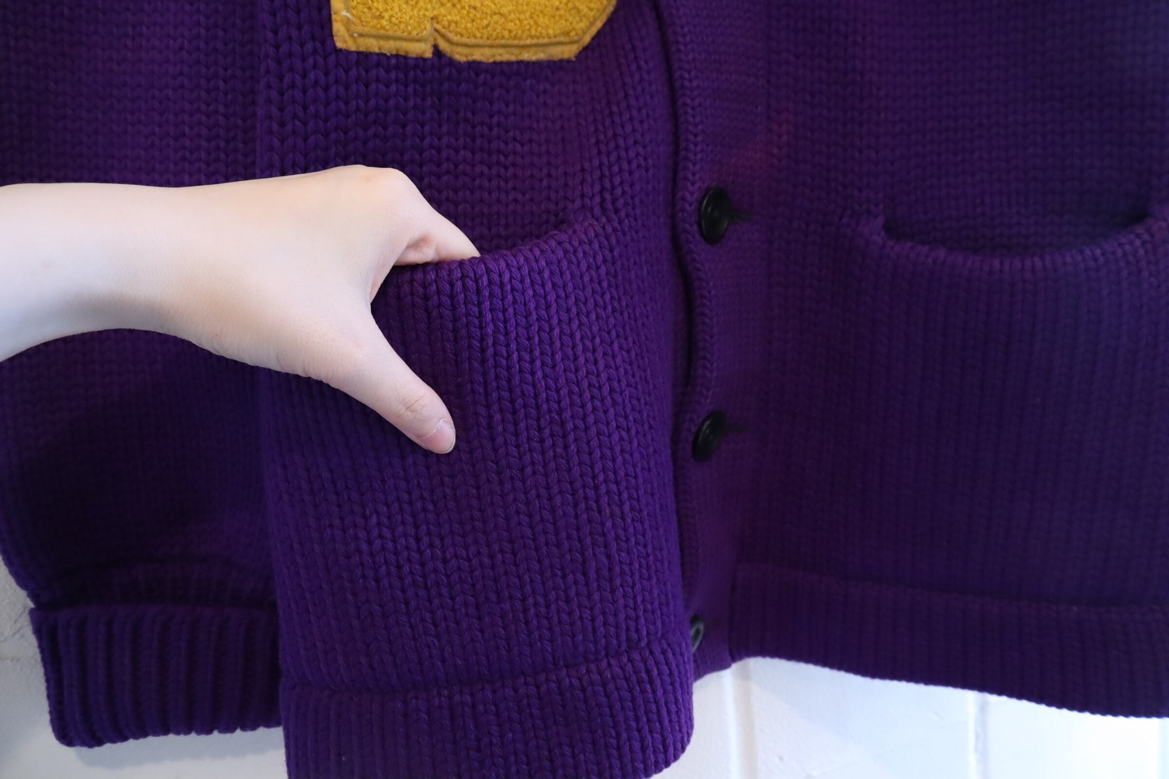 purple×yellow lettered wappen knit cardigan [l-4972]
