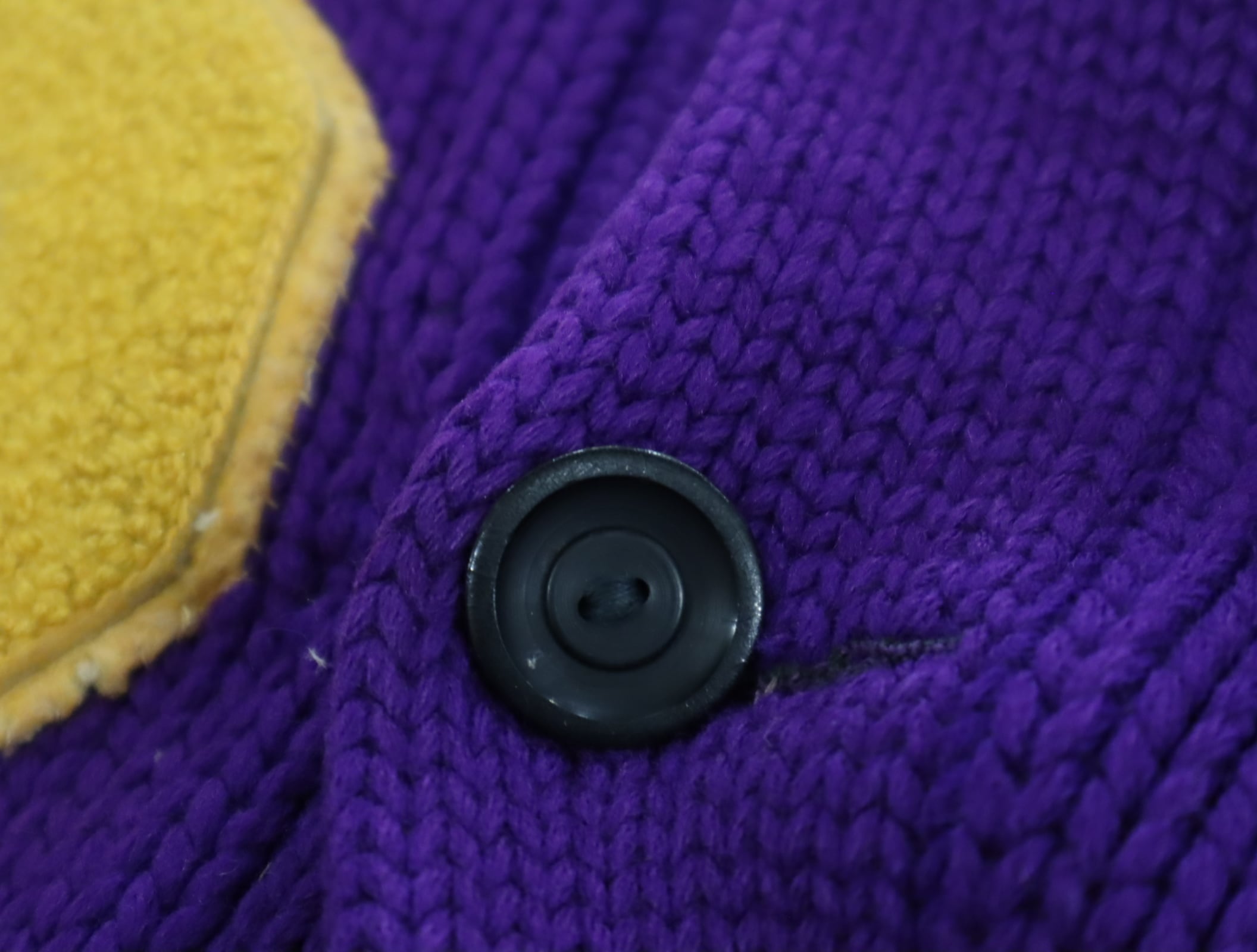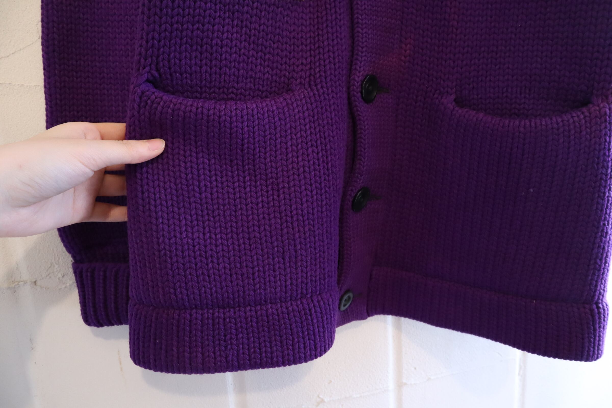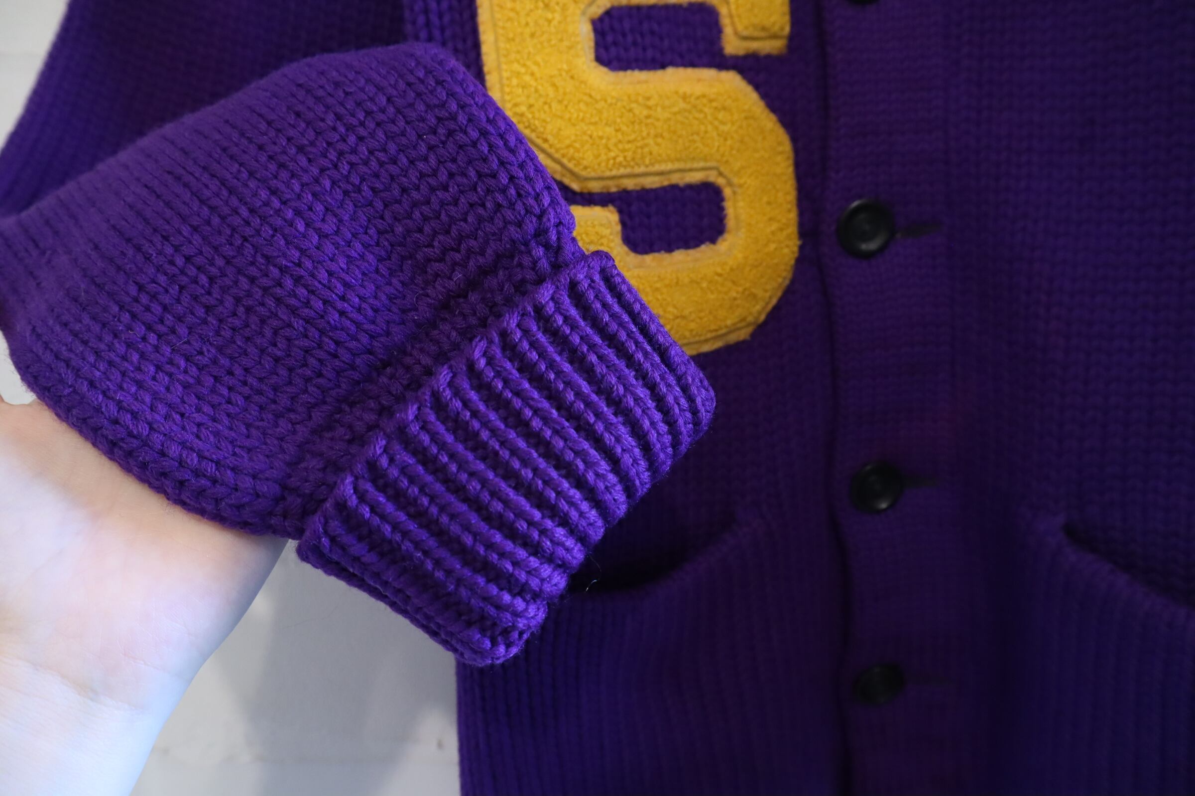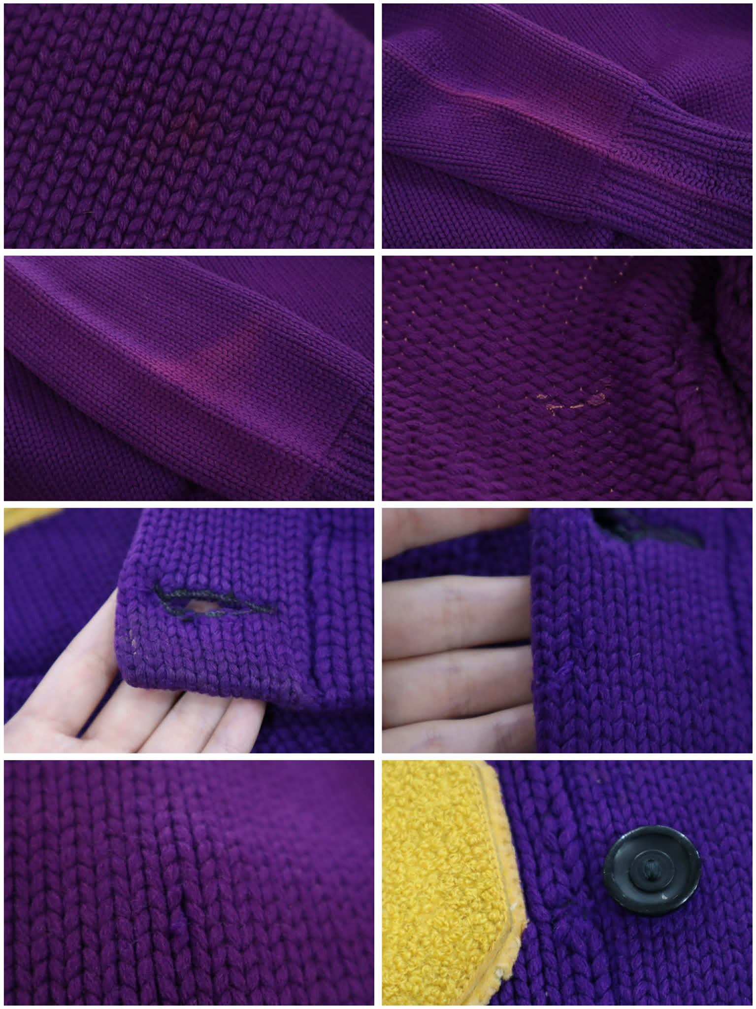purple×yellow lettered wappen knit cardigan [l-4972]