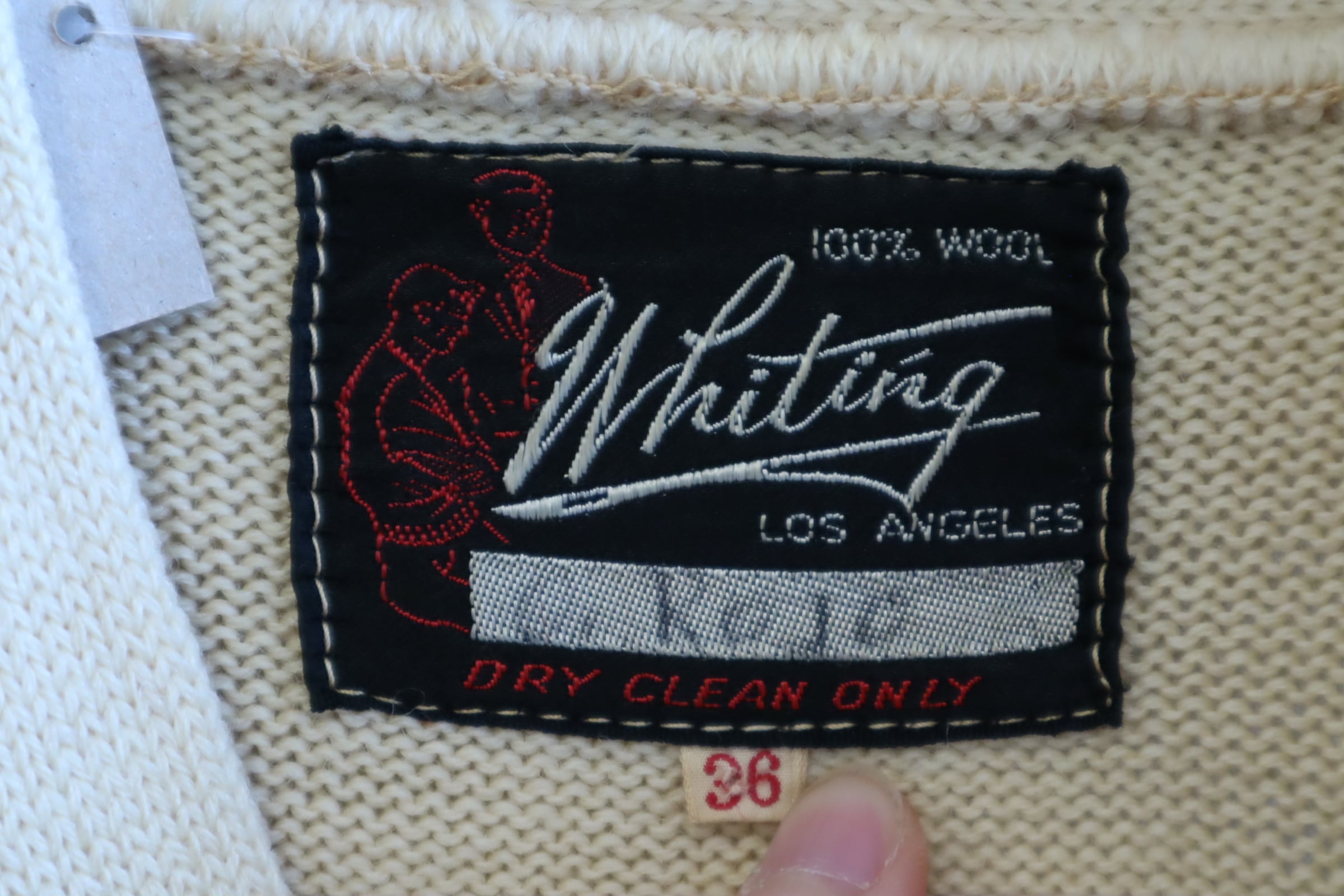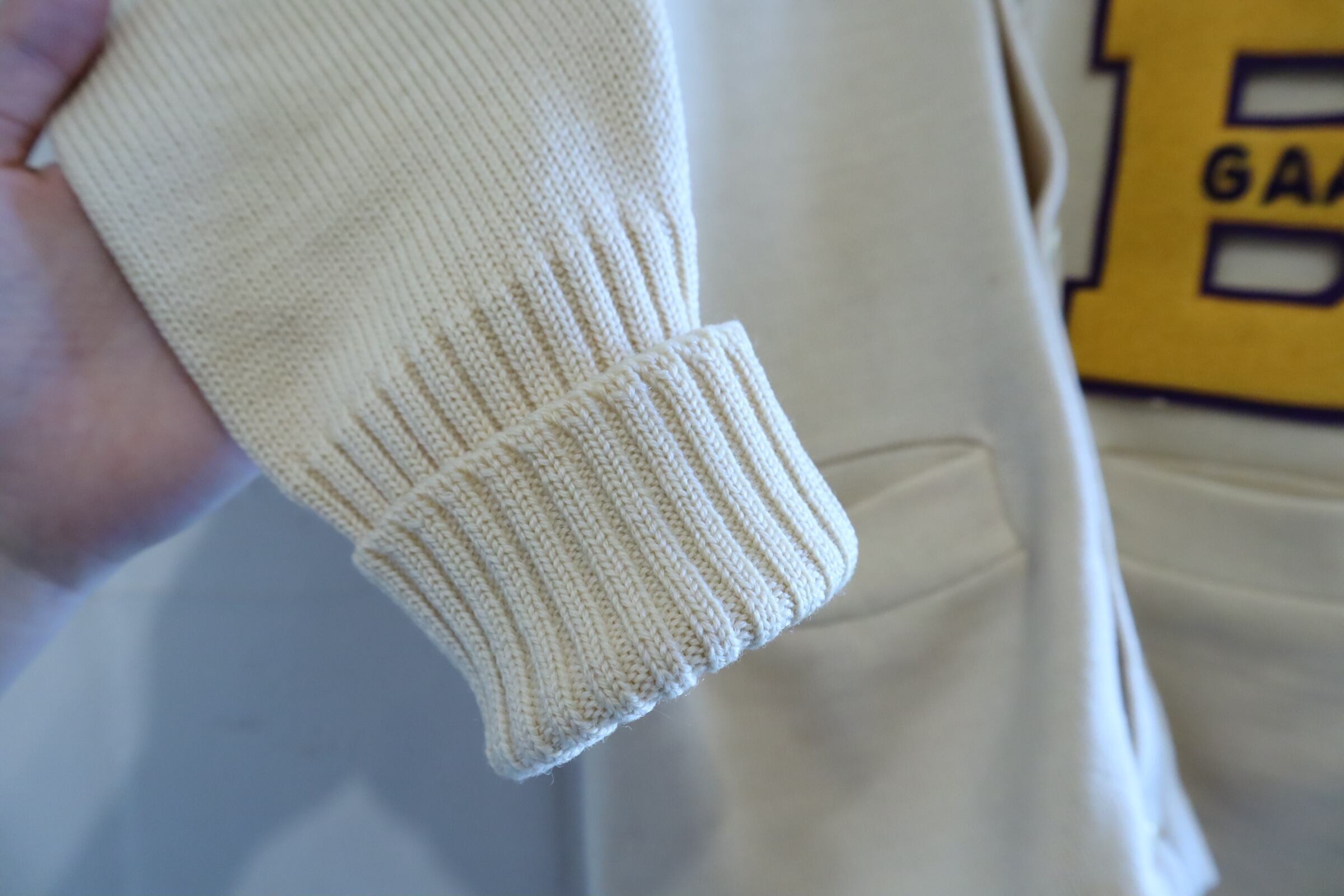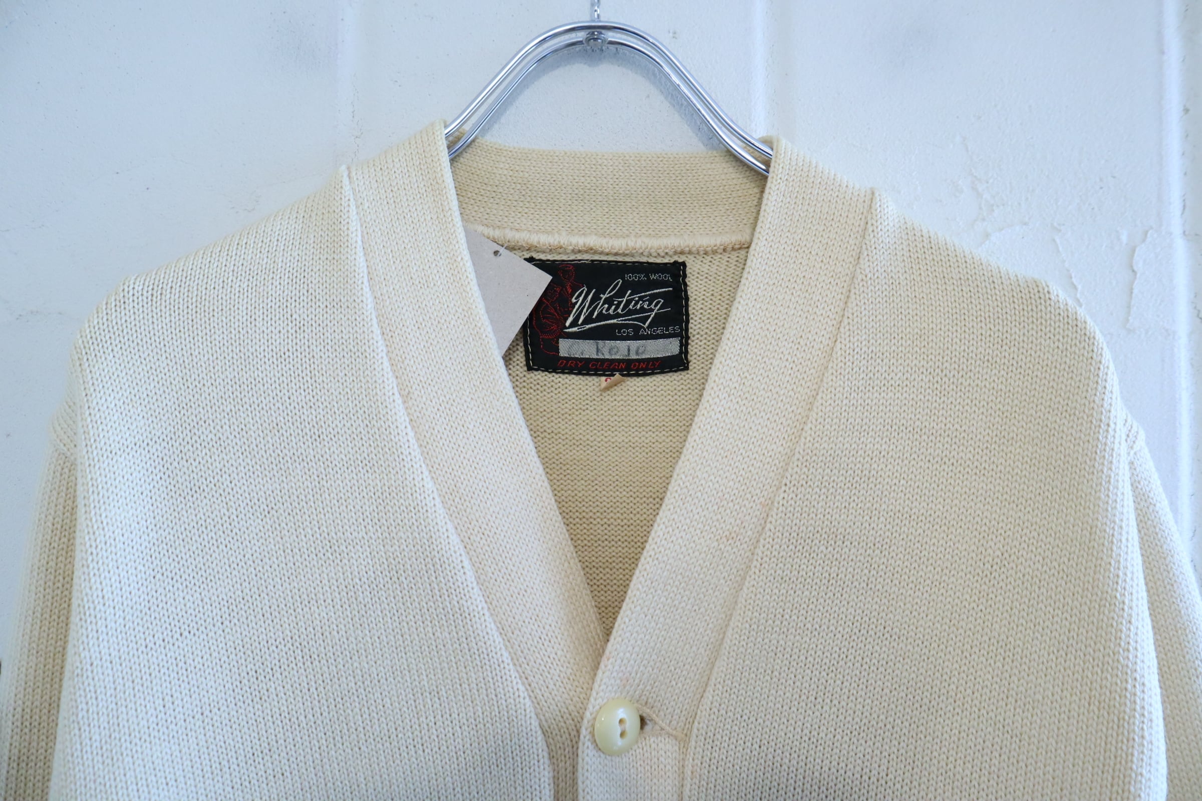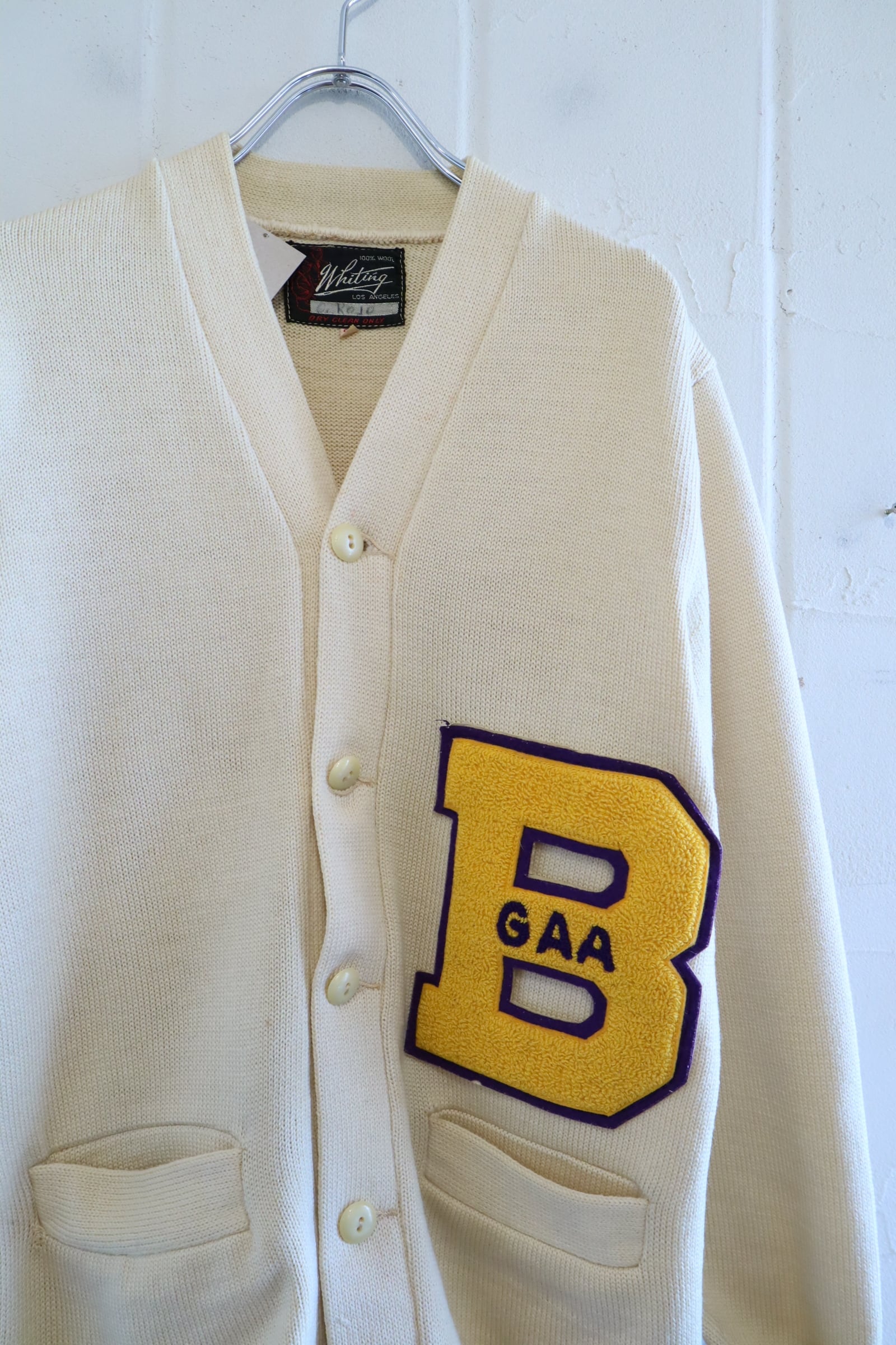 50s-60s offwhite×yellow lettered wappen knit cardigan [l-4975]