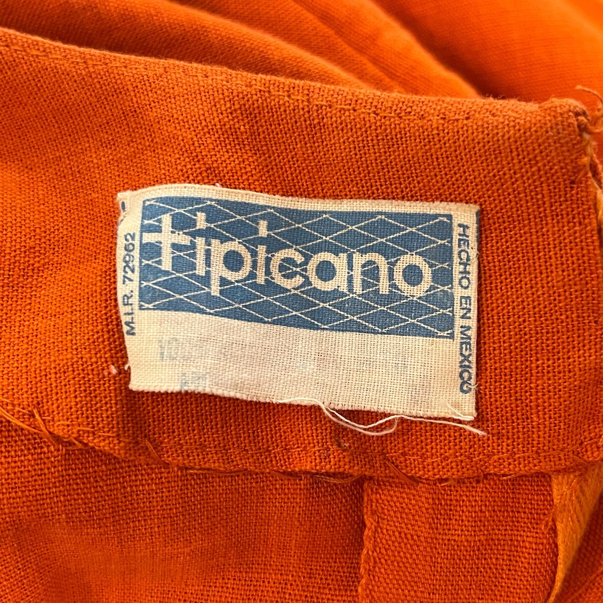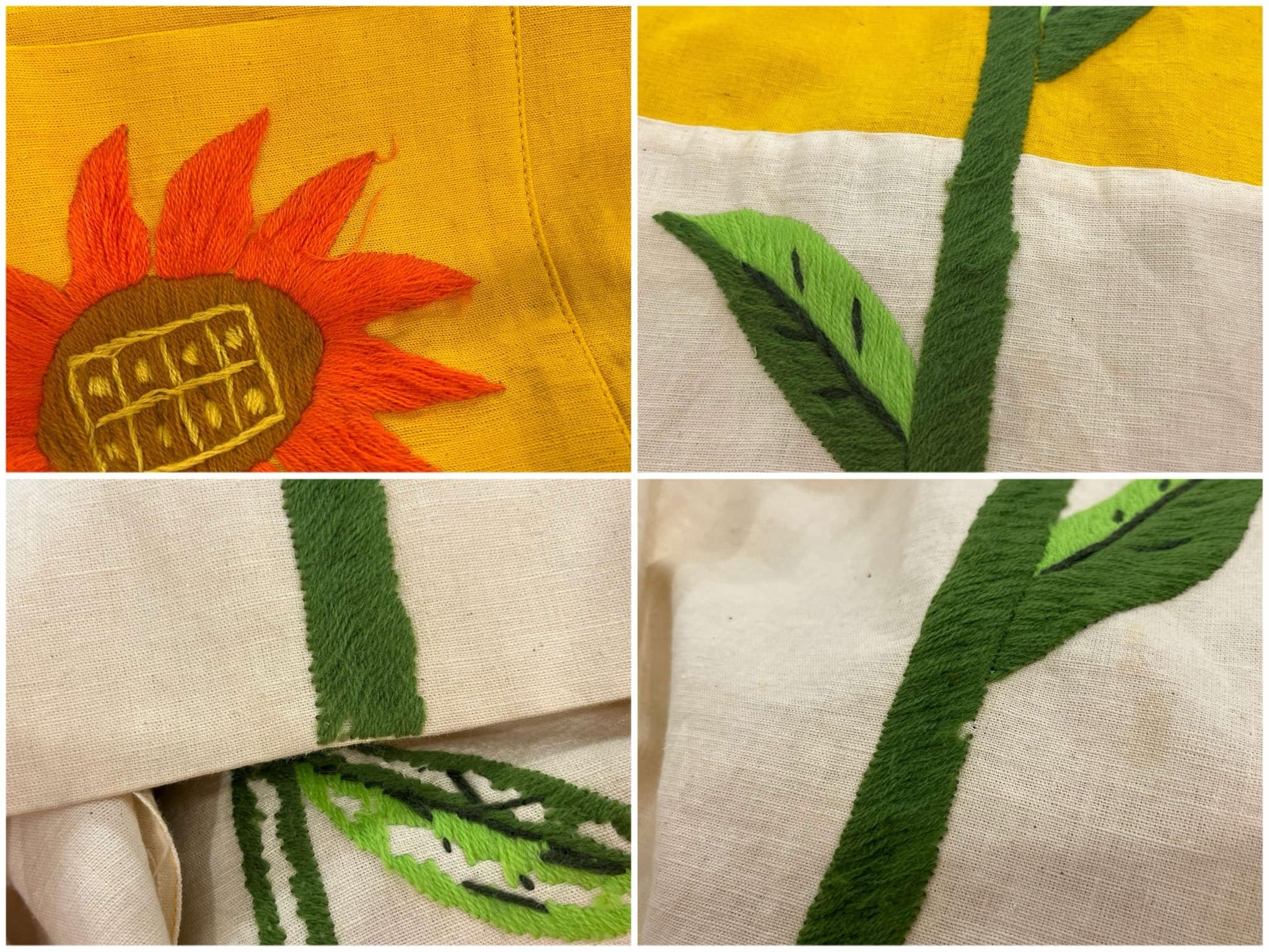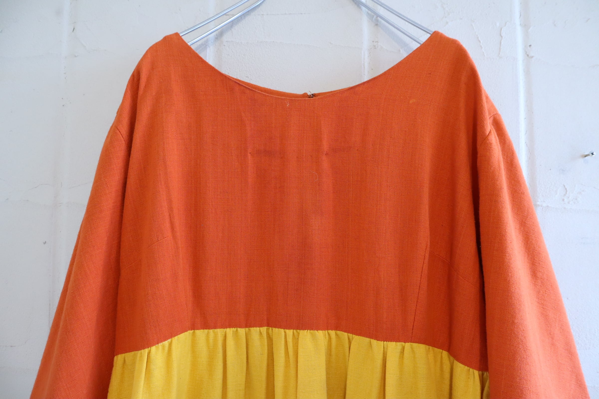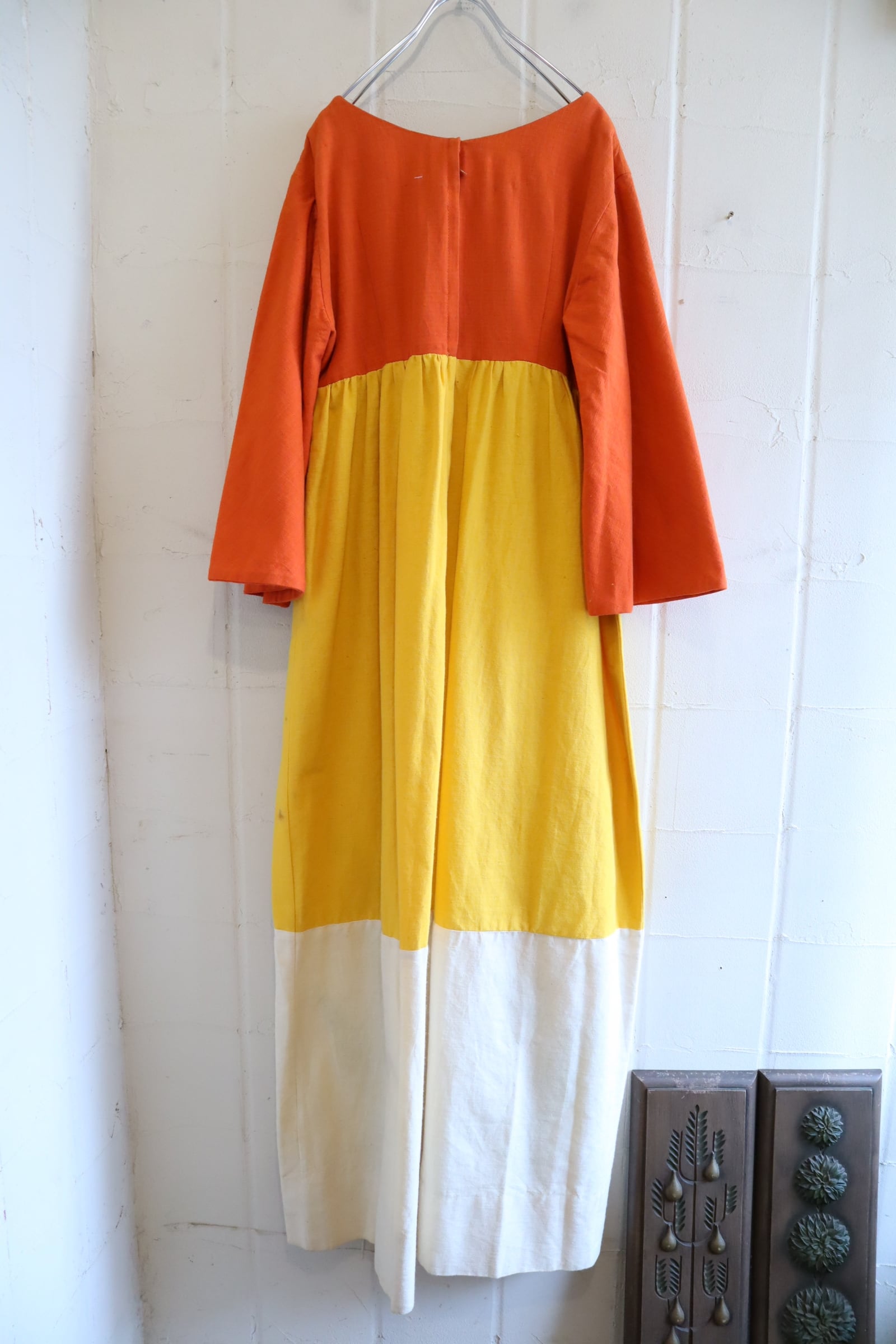 70s orange×yellow sunflower embroidery Mexican dress [l-4977]